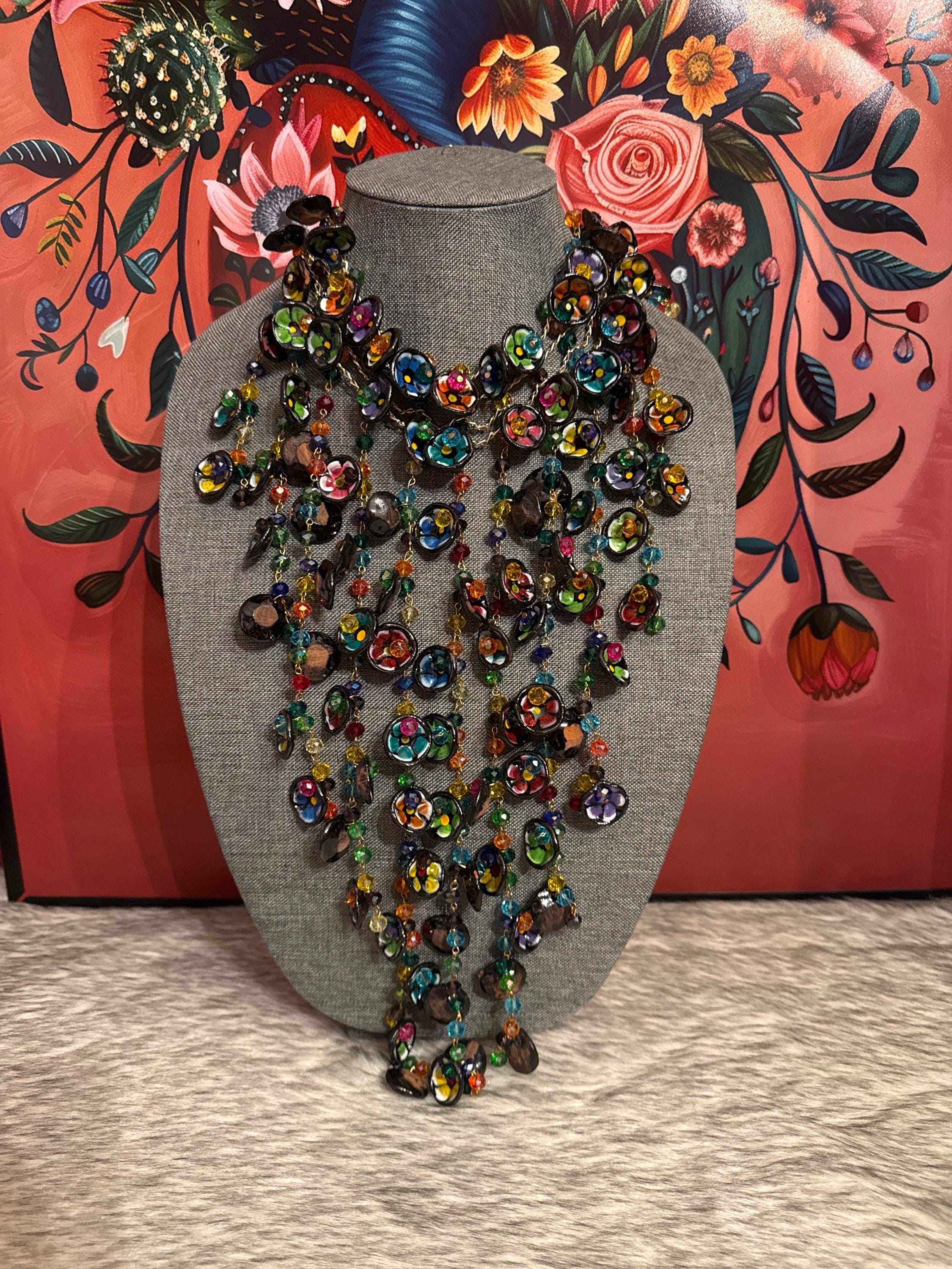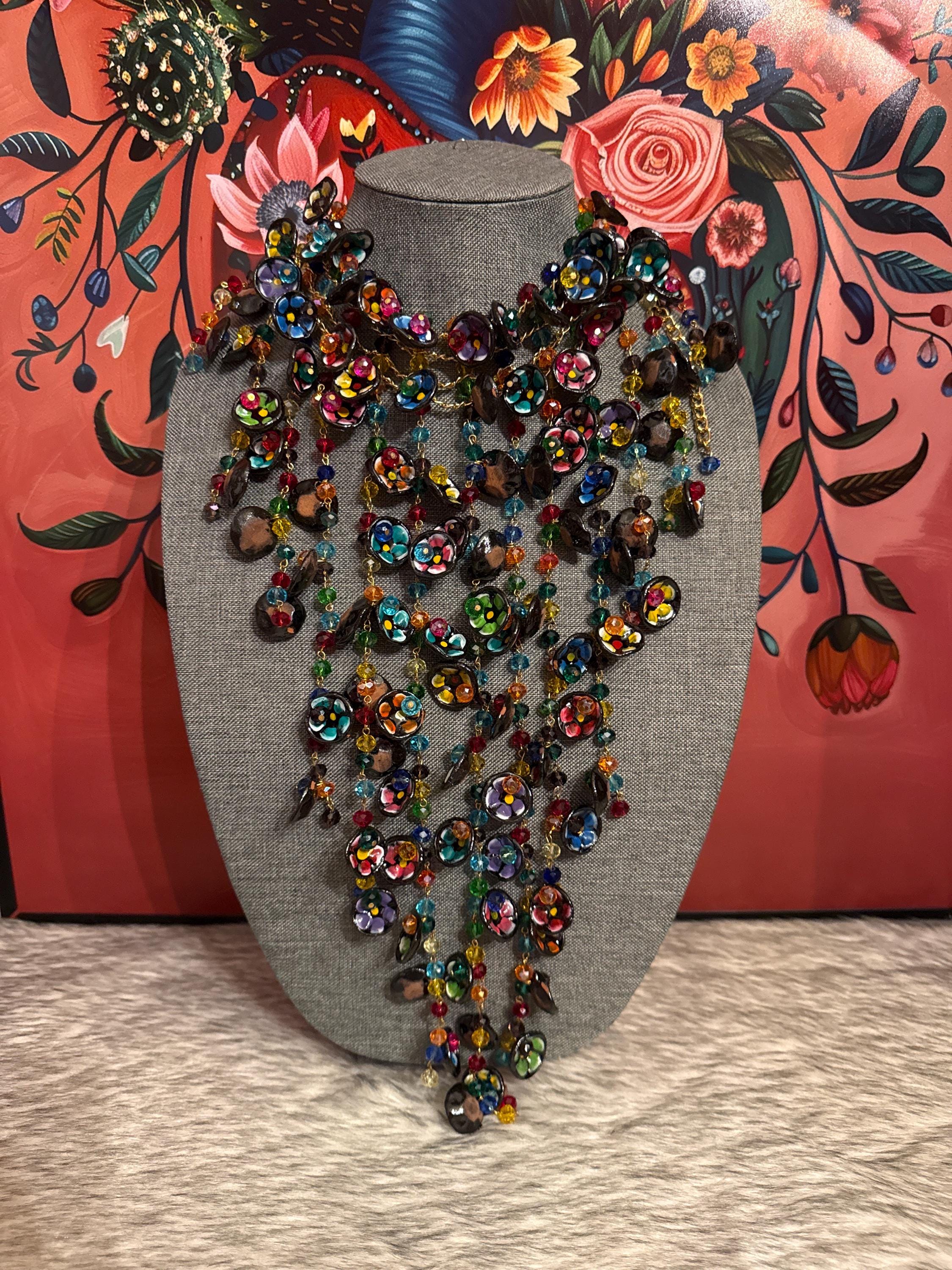 Beautiful necklace and earrings inspired by our grandmothers, by those little dishes our grandmothers made or that were made for us. It's a completely handmade and hand-painted piece that will enhance any look. Clay cups and plates.