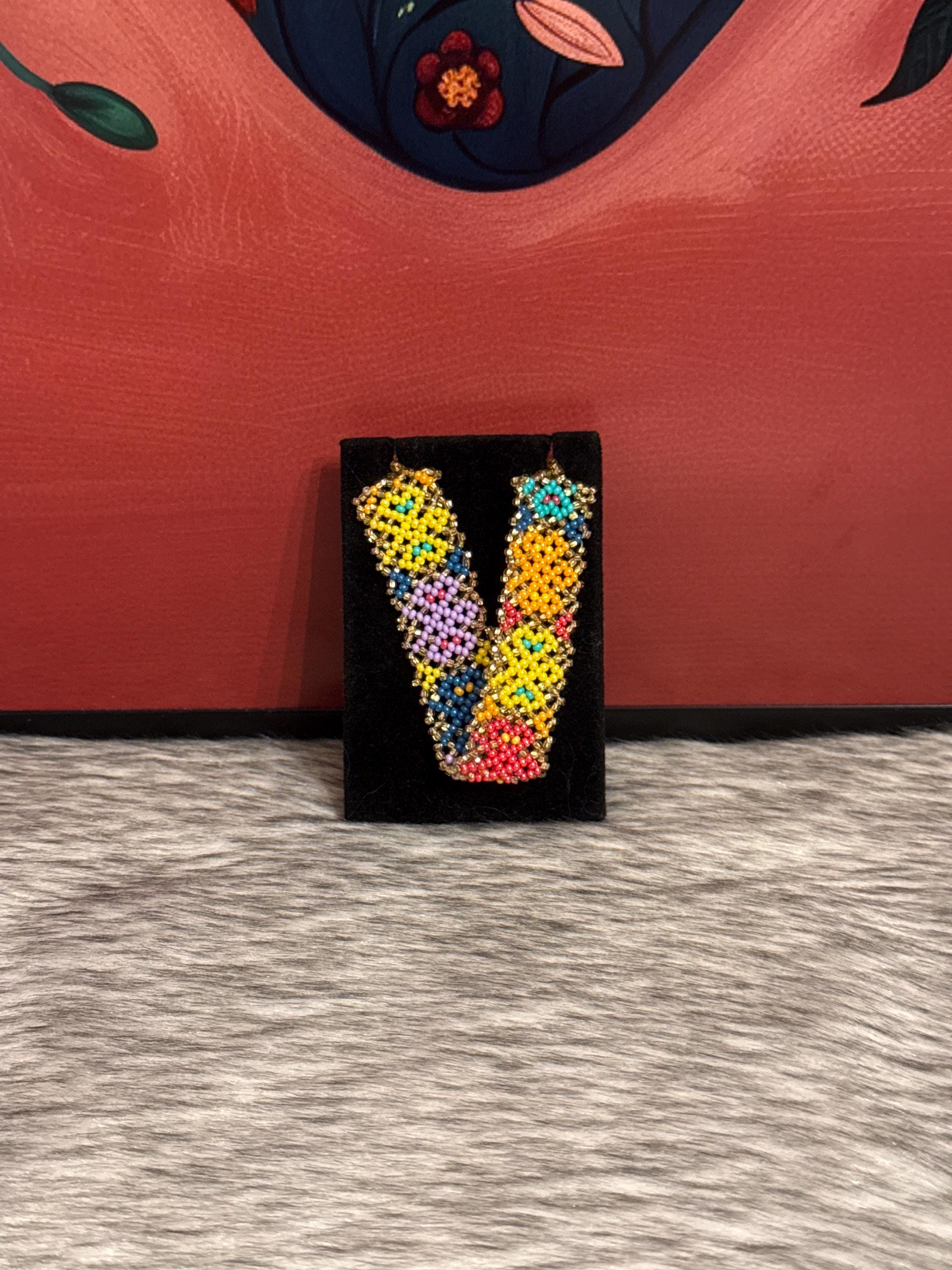 Handmade artisan bracelets made with glass beads called chaquiras, the bracelets measure approximately 7 inches long by 1 inch wide.