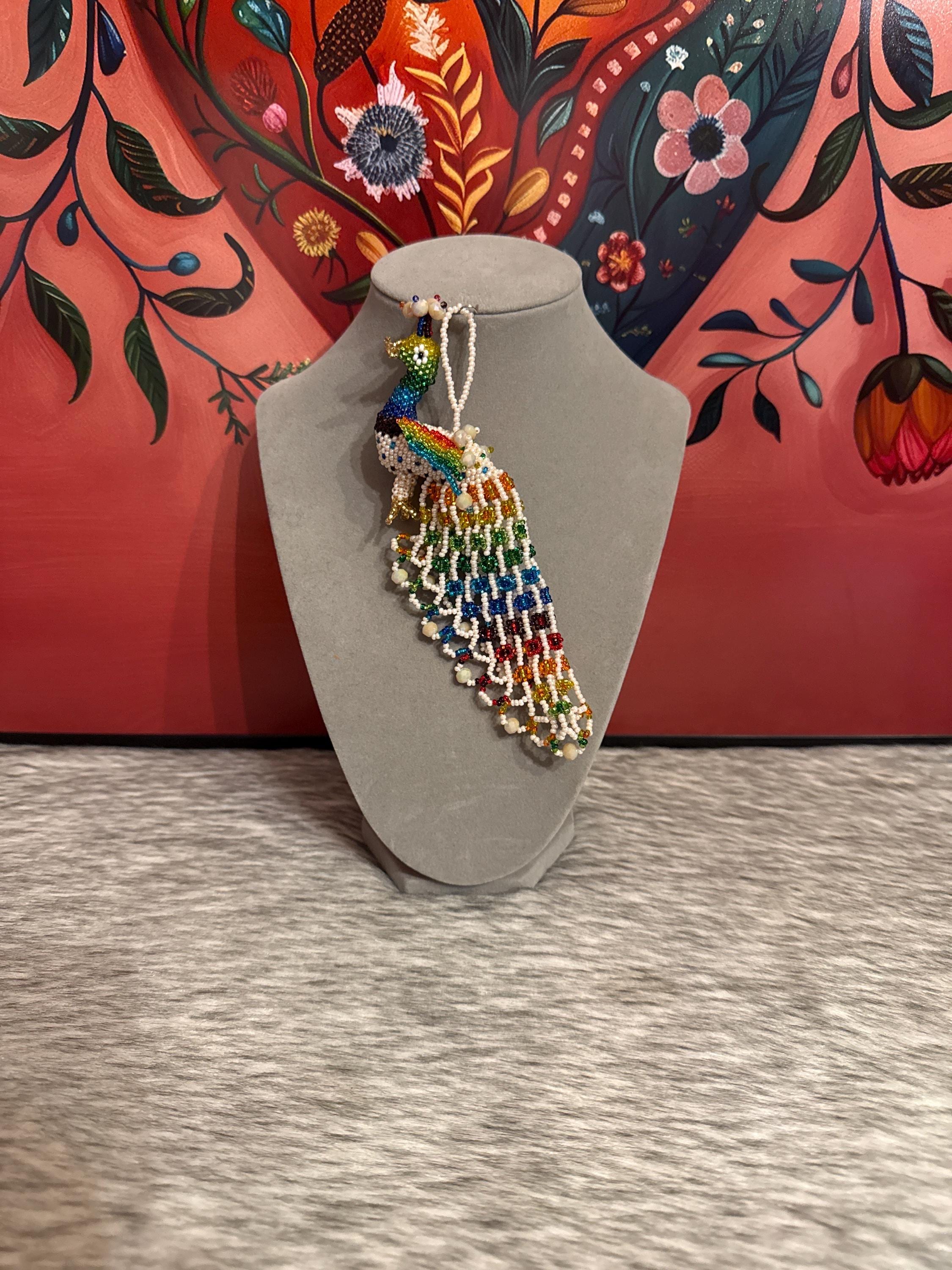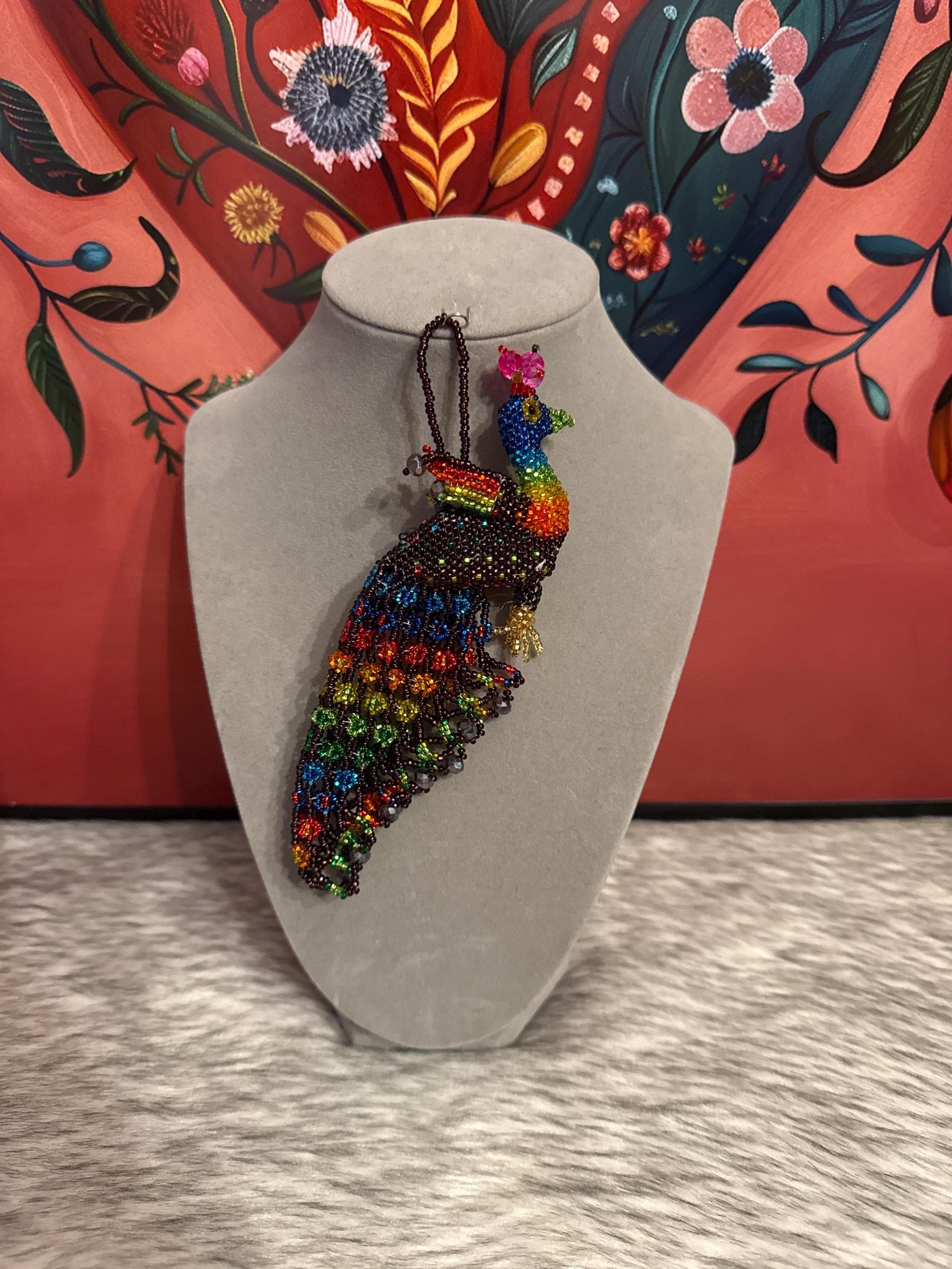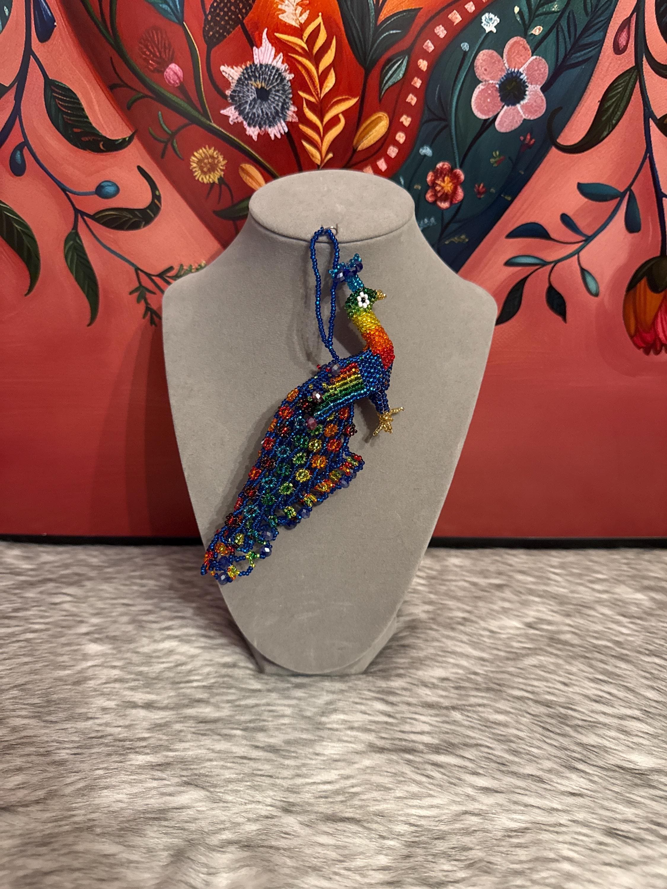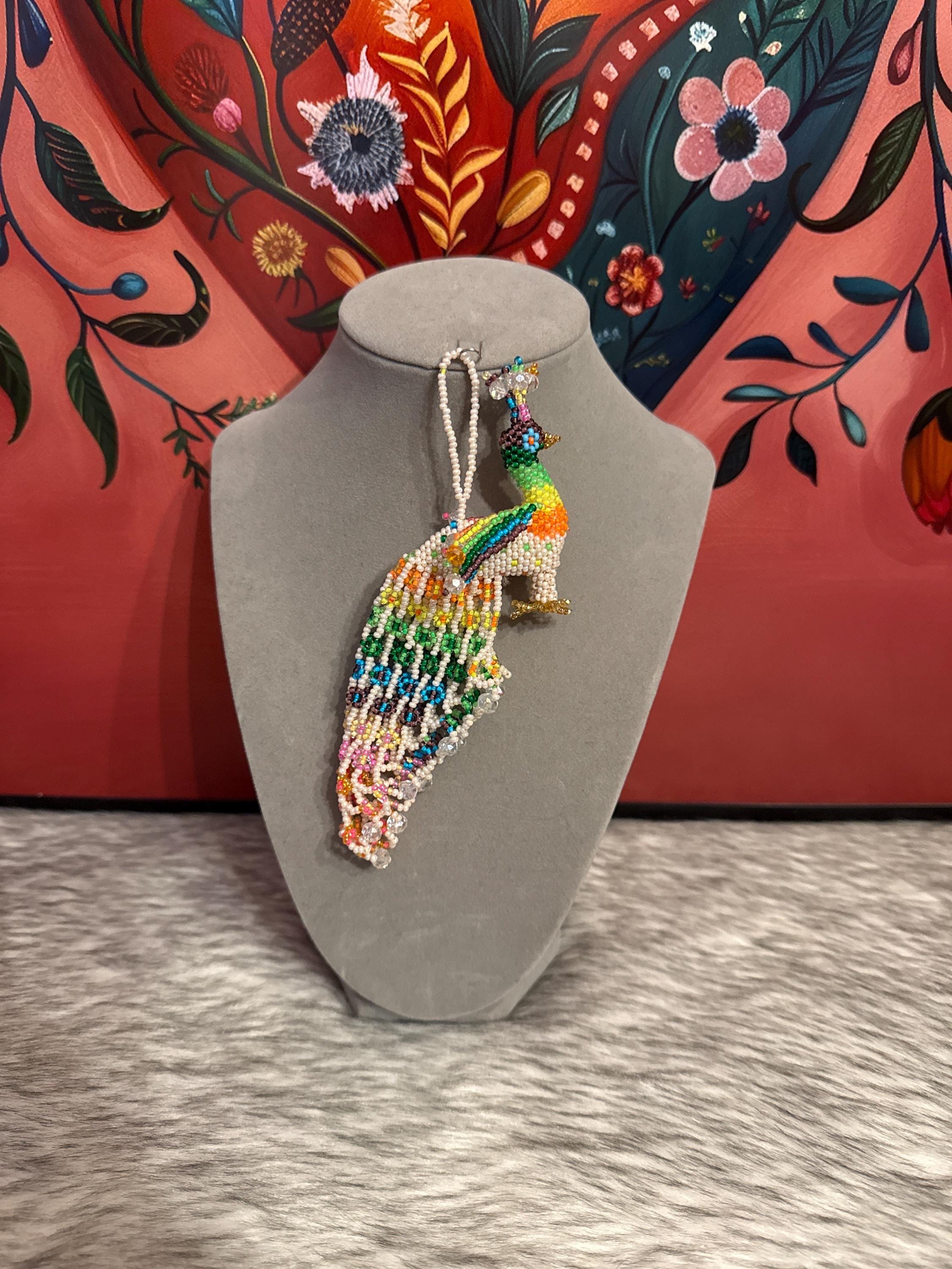 Beautiful peacock-shaped keychain made with glass beads and Czech crystals that together form a beautiful creation, you can use it as a keychain or hang it wherever you want, it measures approximately 7 inches long by 3 inches wide.