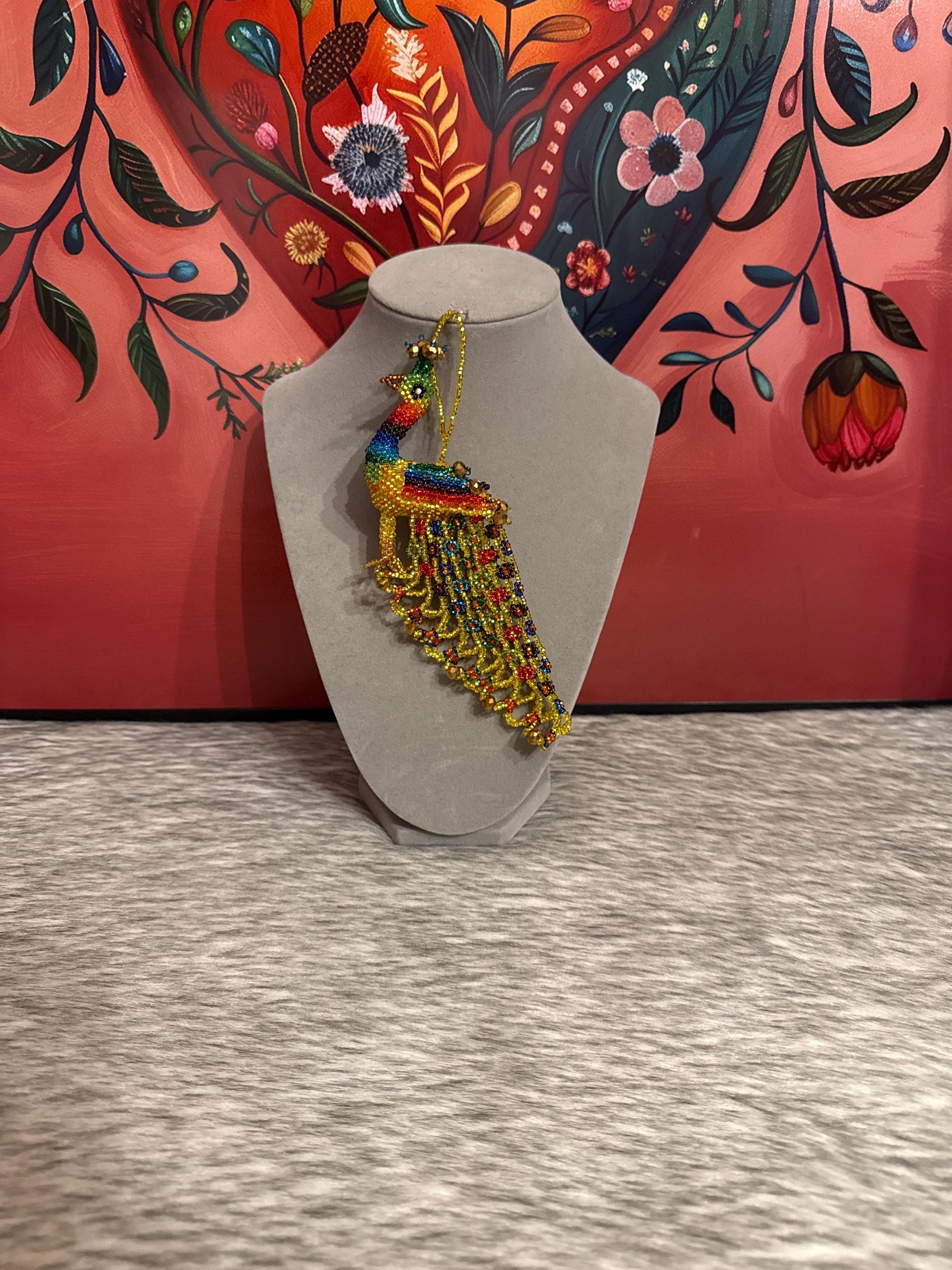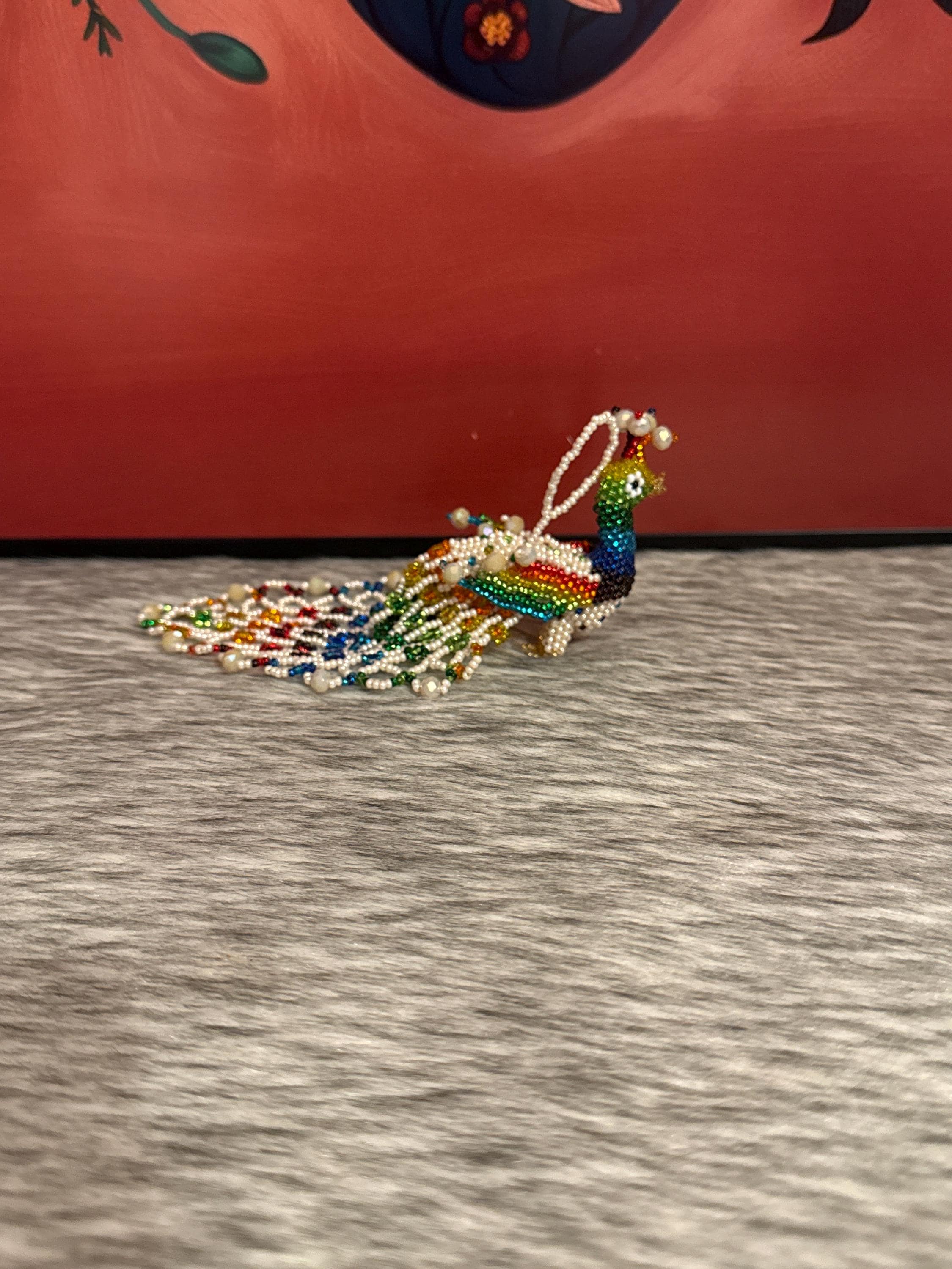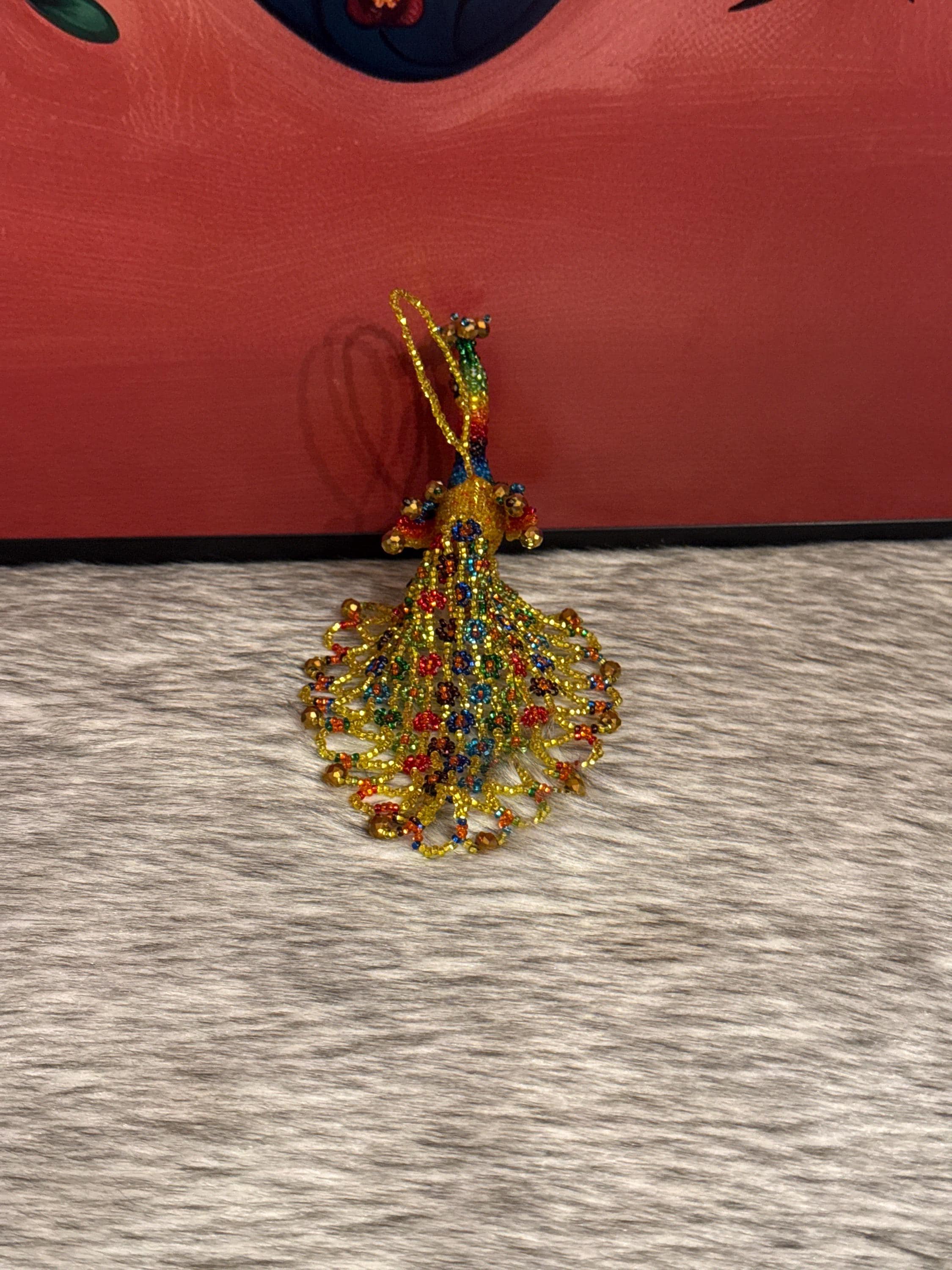 Beautiful peacock-shaped keychain made with glass beads and Czech crystals that together form a beautiful creation, you can use it as a keychain or hang it wherever you want, it measures approximately 7 inches long by 3 inches wide.
