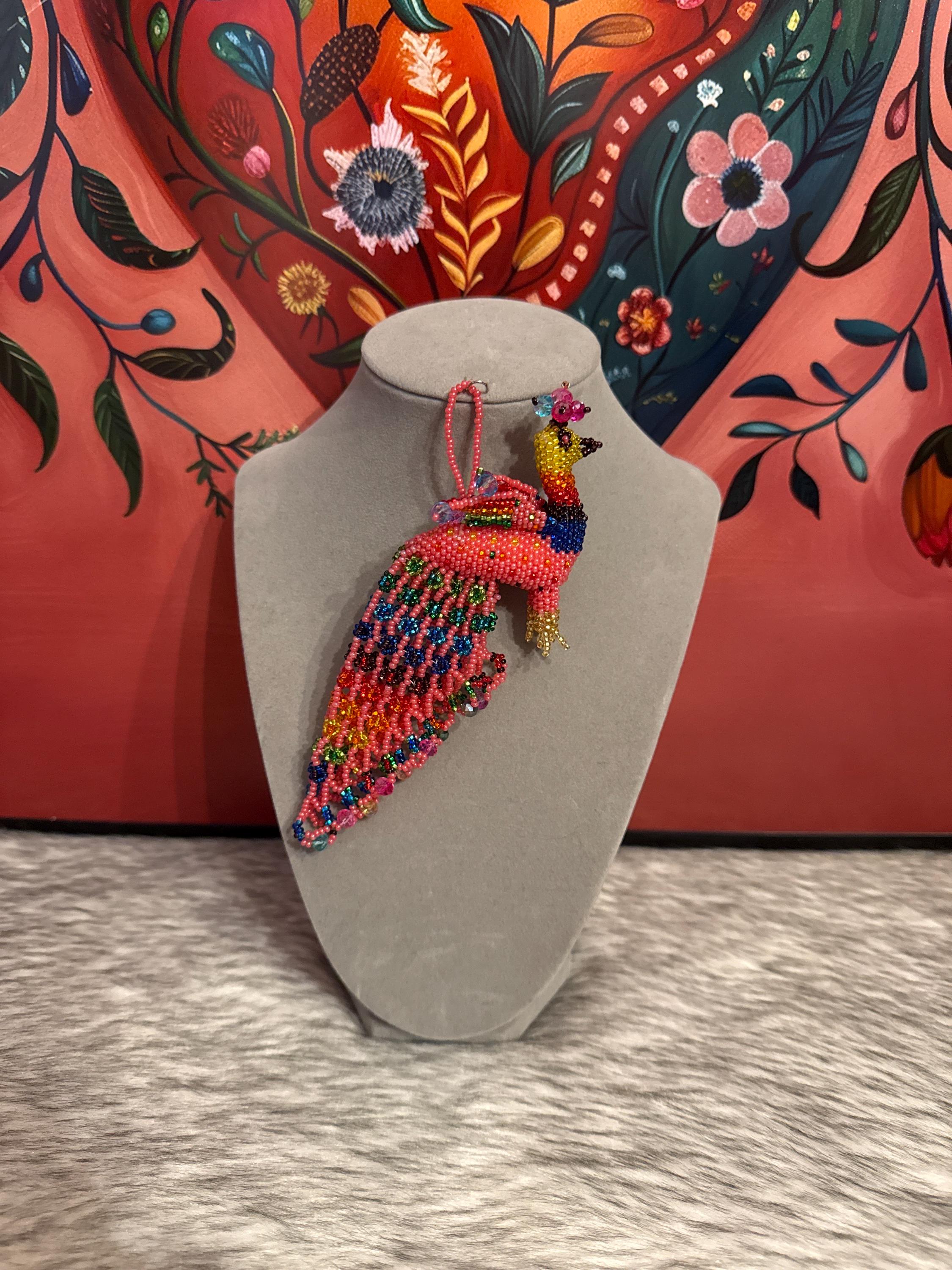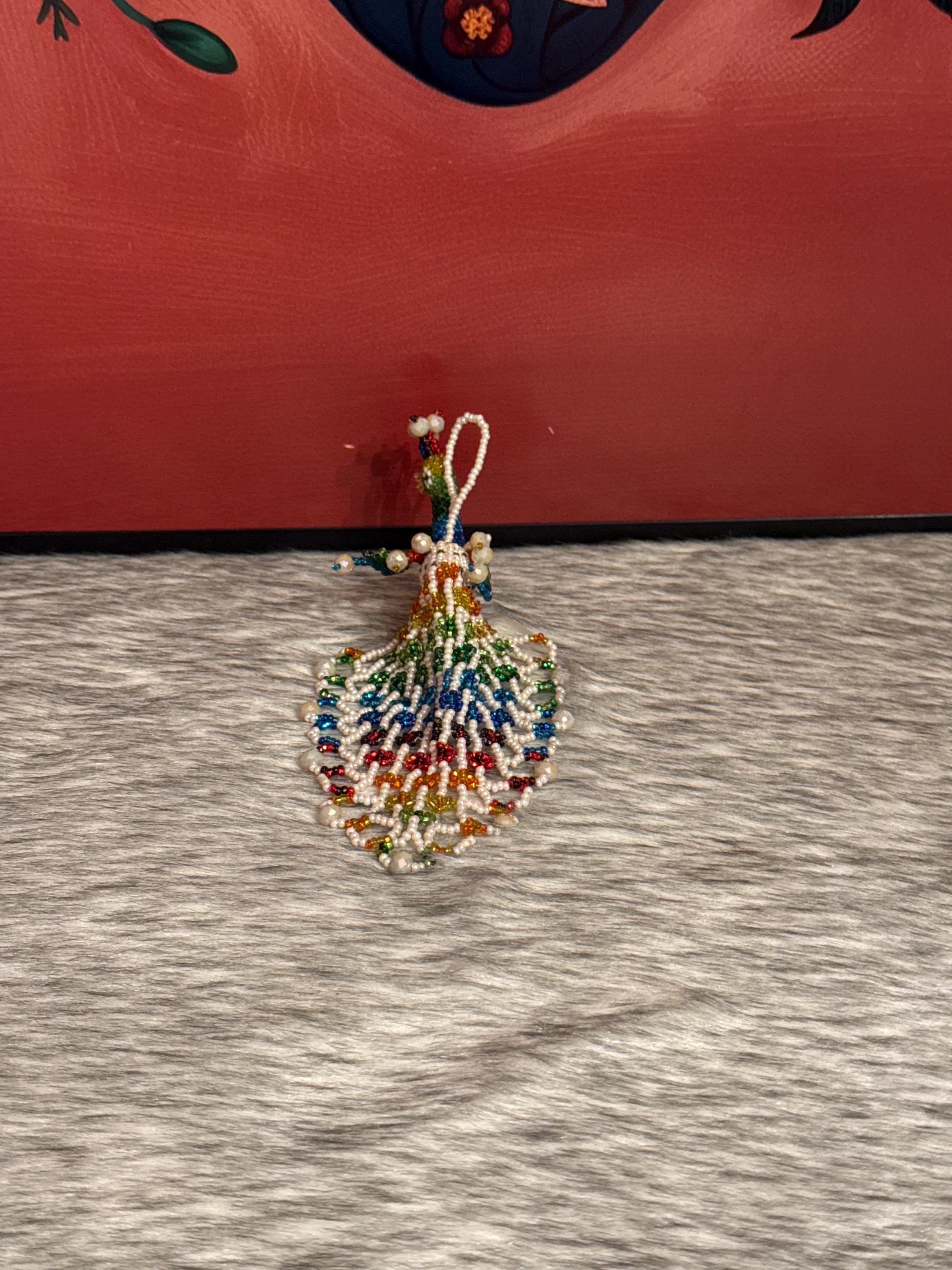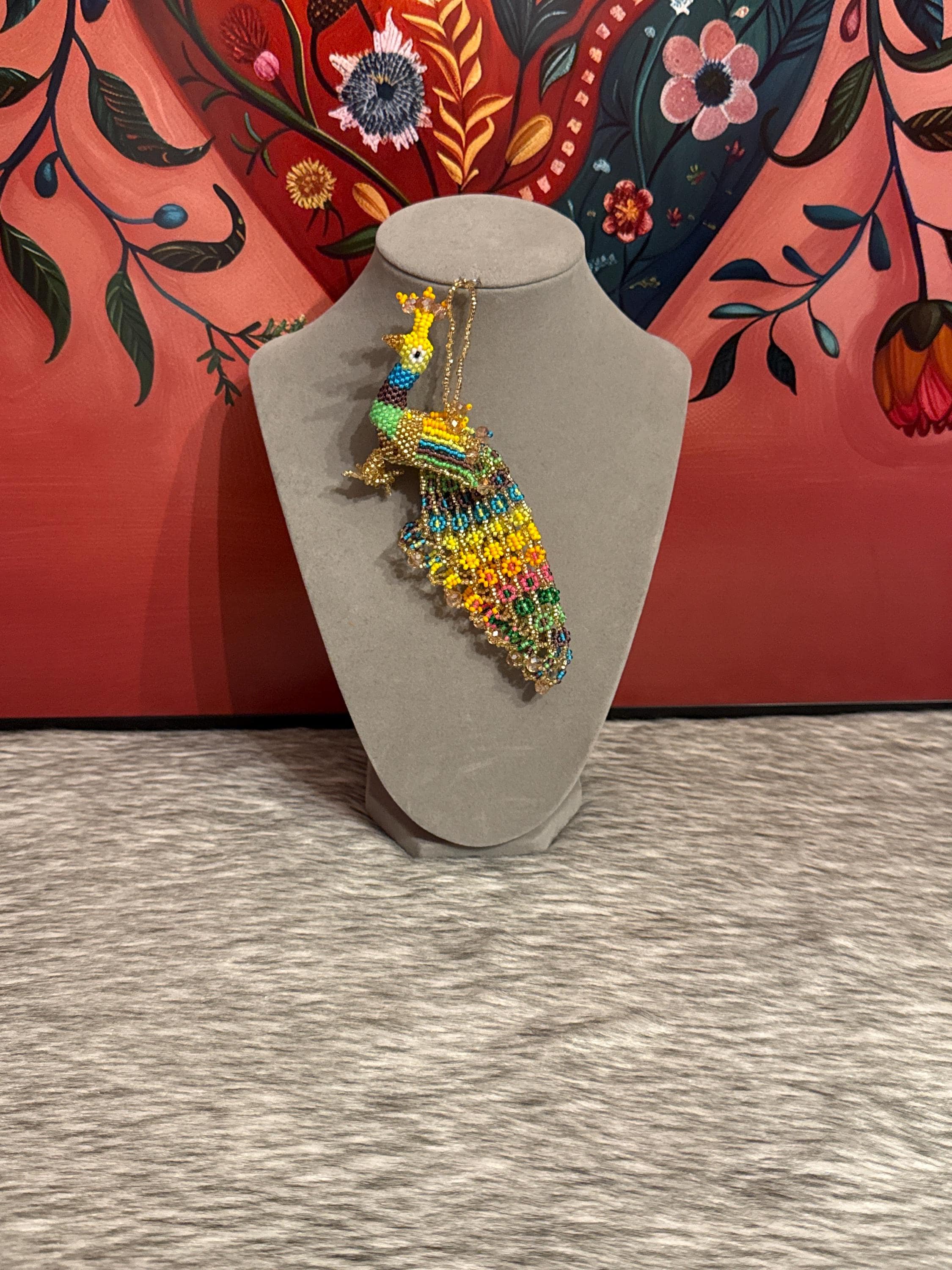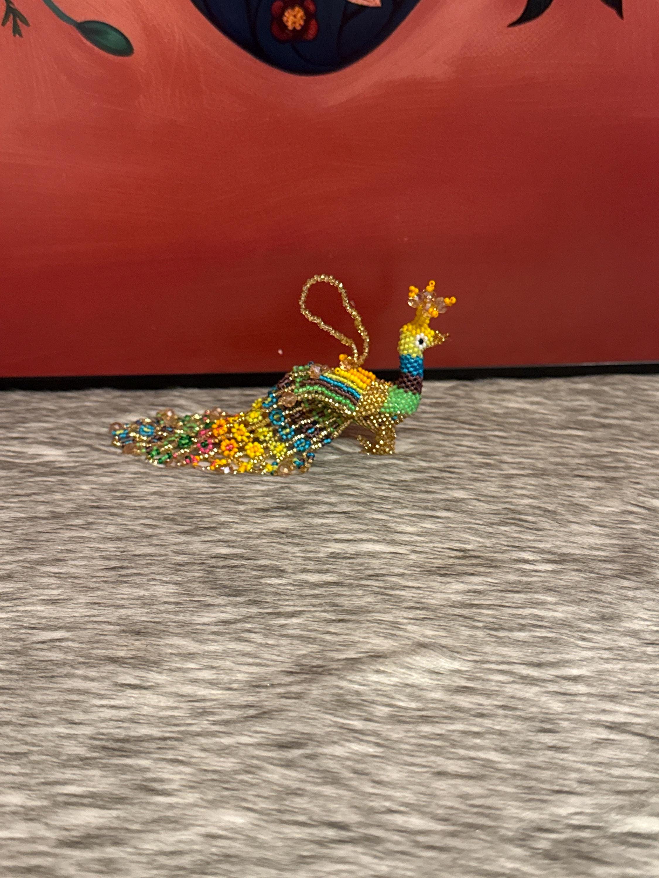 Beautiful peacock-shaped keychain made with glass beads and Czech crystals that together form a beautiful creation, you can use it as a keychain or hang it wherever you want, it measures approximately 7 inches long by 3 inches wide.
