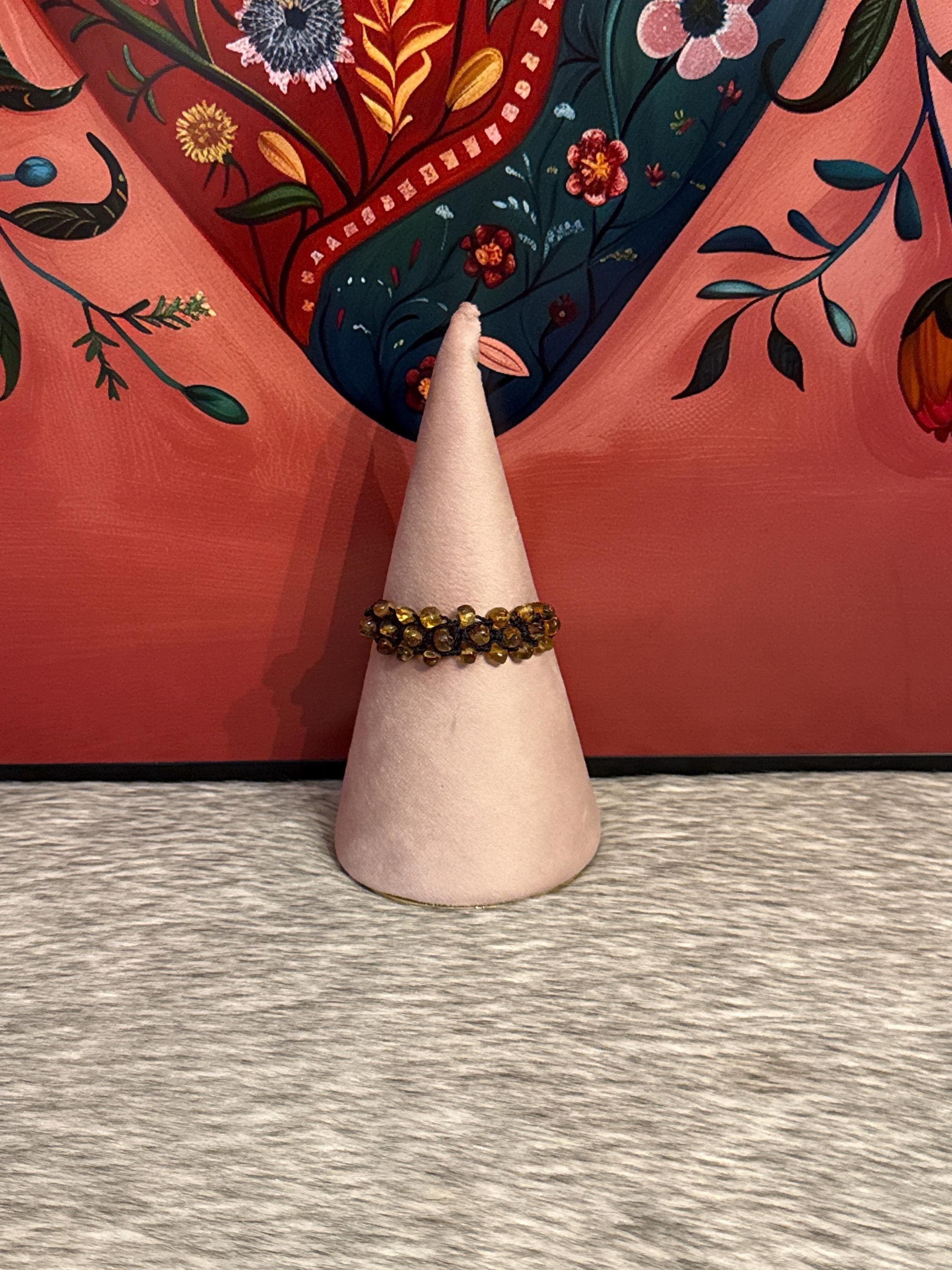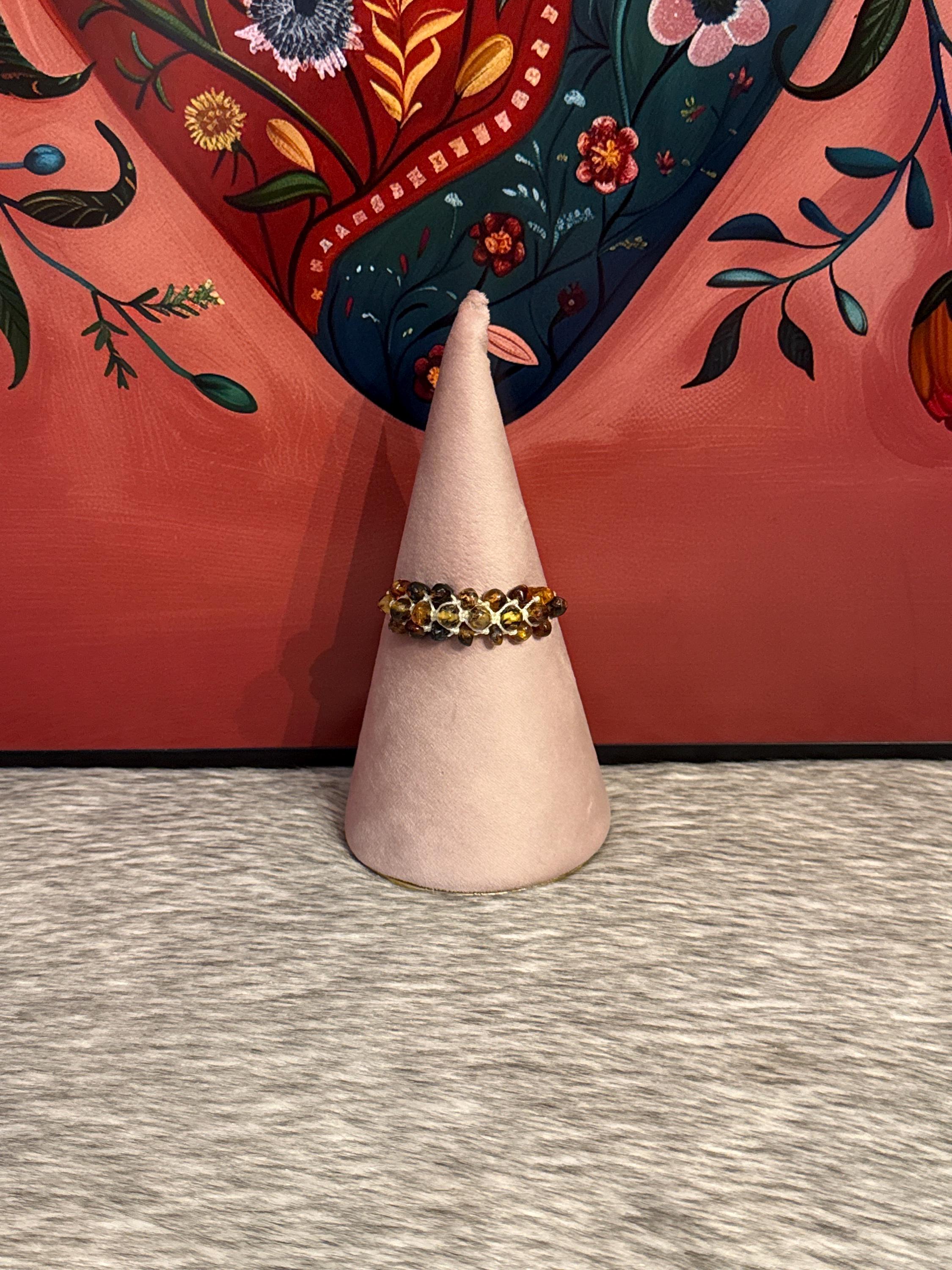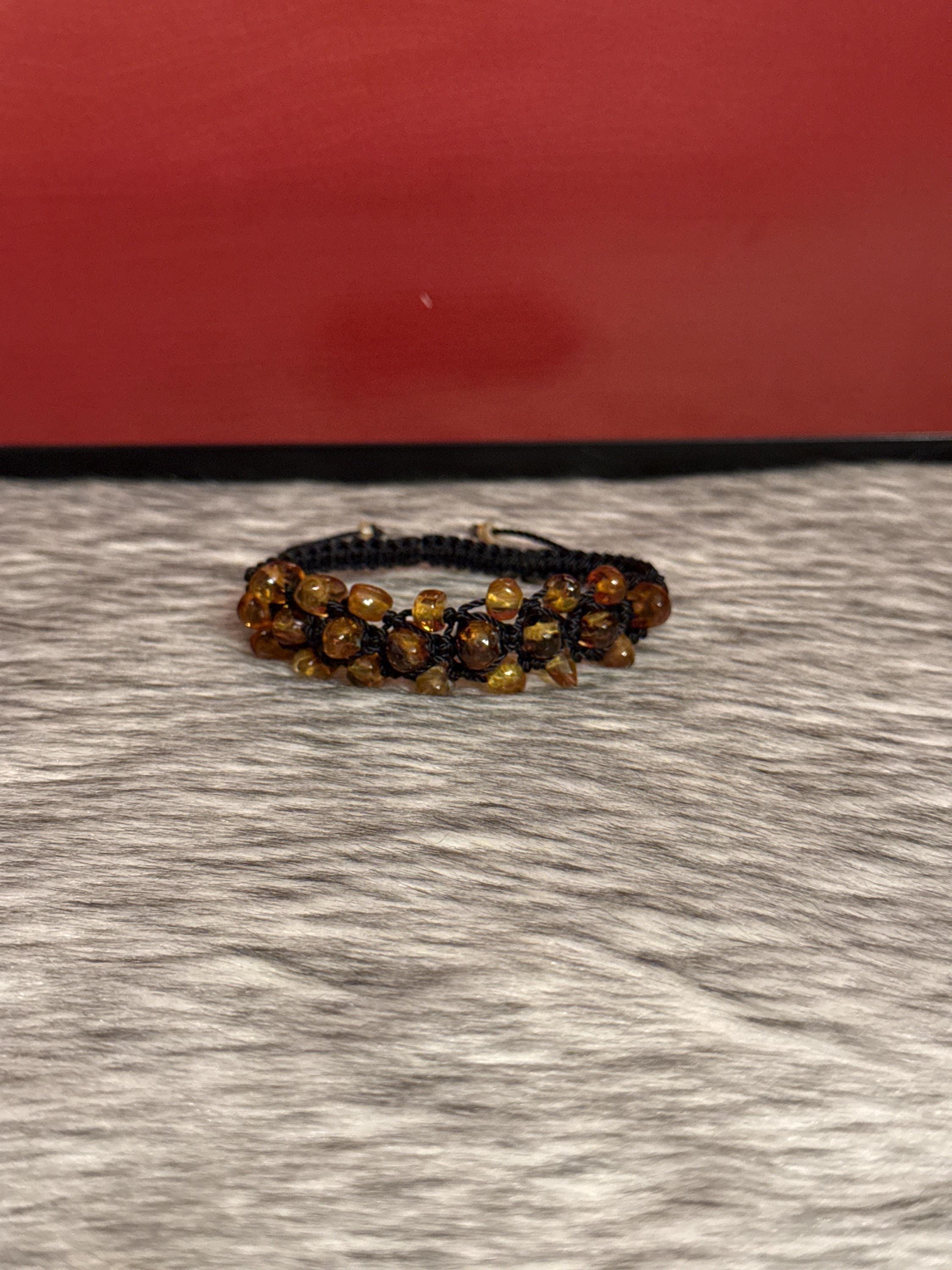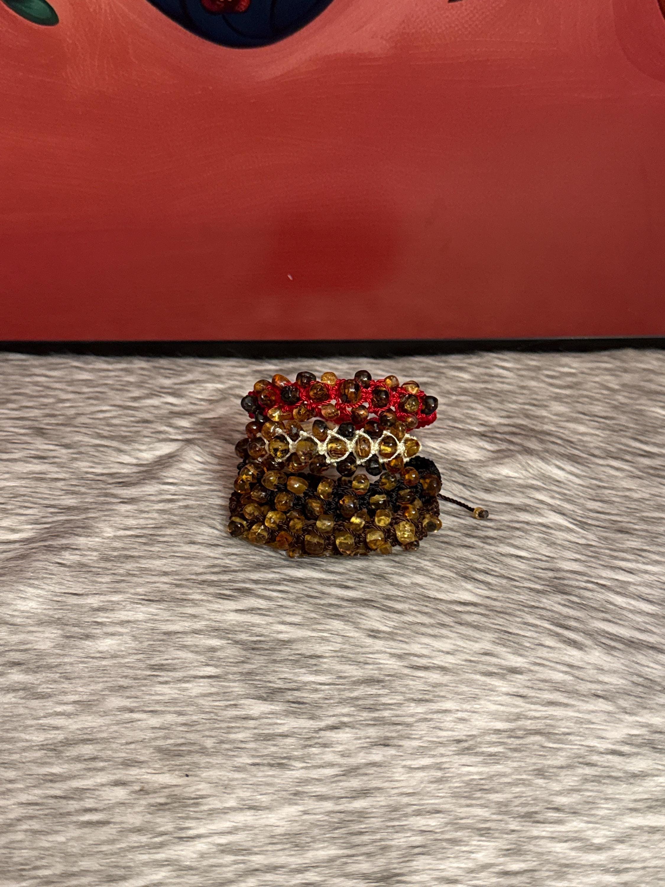 Beautiful macrame-style woven bracelets made with silk thread and Mexican amber stones. Amber colors may vary.