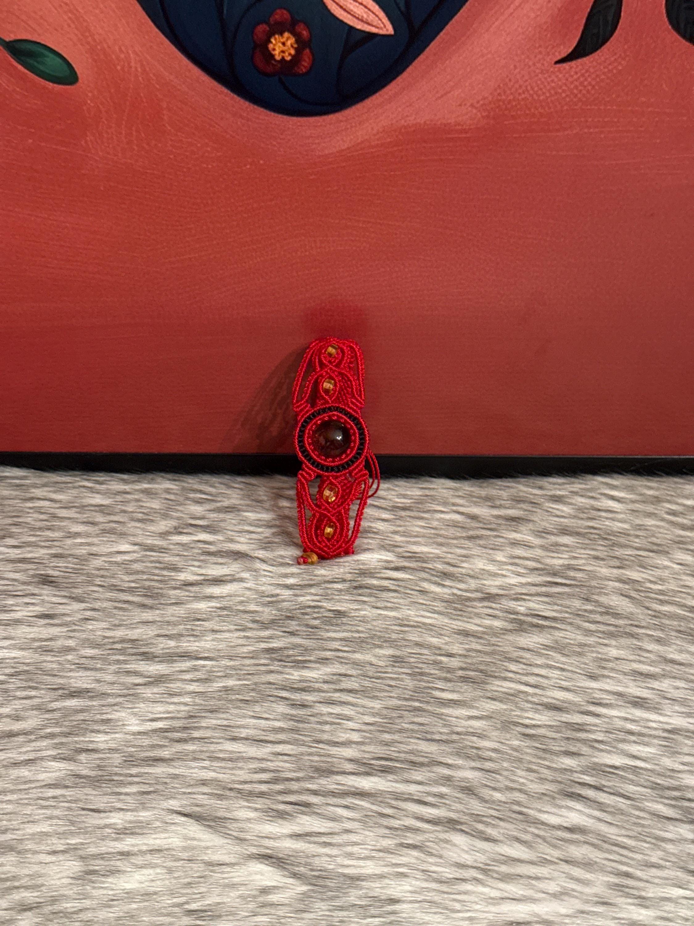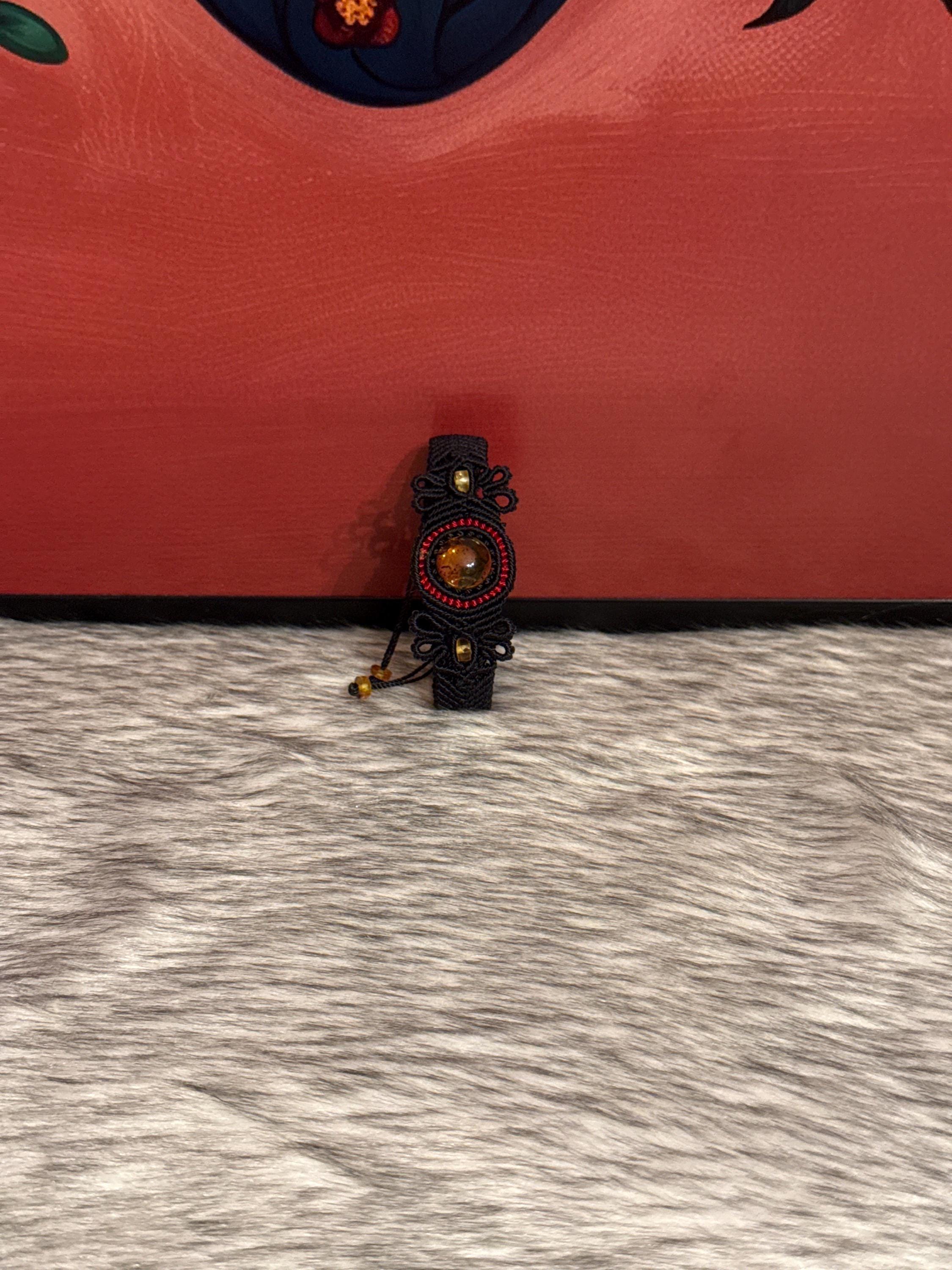 Beautiful macrame-style woven bracelets with silk thread and Mexican amber. The color and size of the amber may vary.