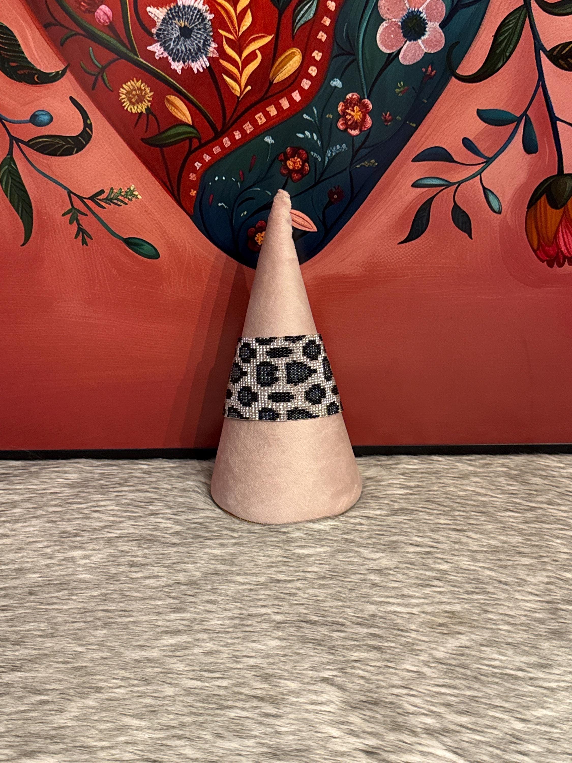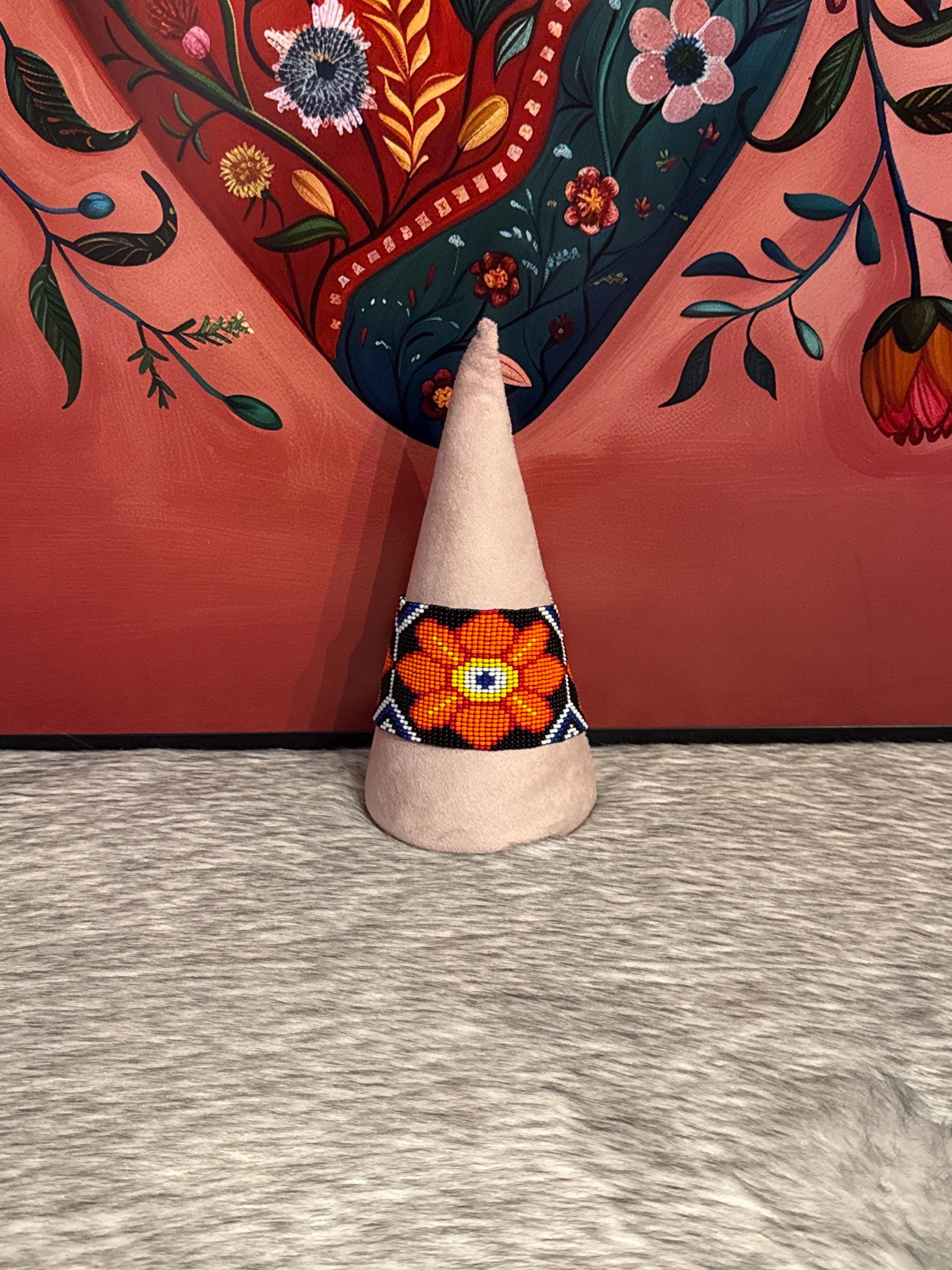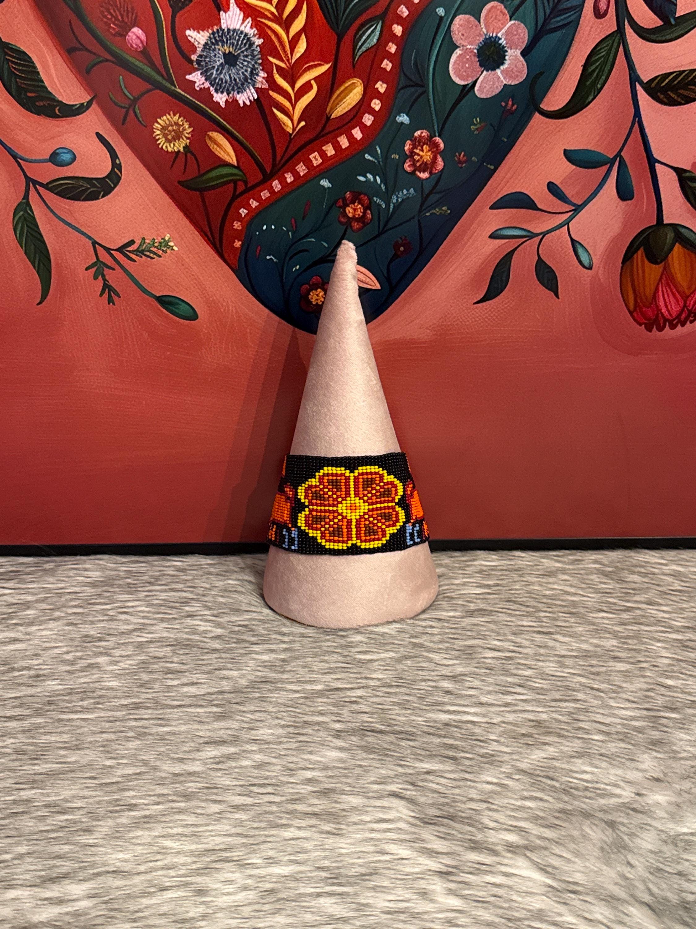 Beautiful handmade bracelets with glass beads. The bracelets measure approximately 6 inches long by 2 inches wide at the design point and have an additional 3 inches of thread on each side for fastening.