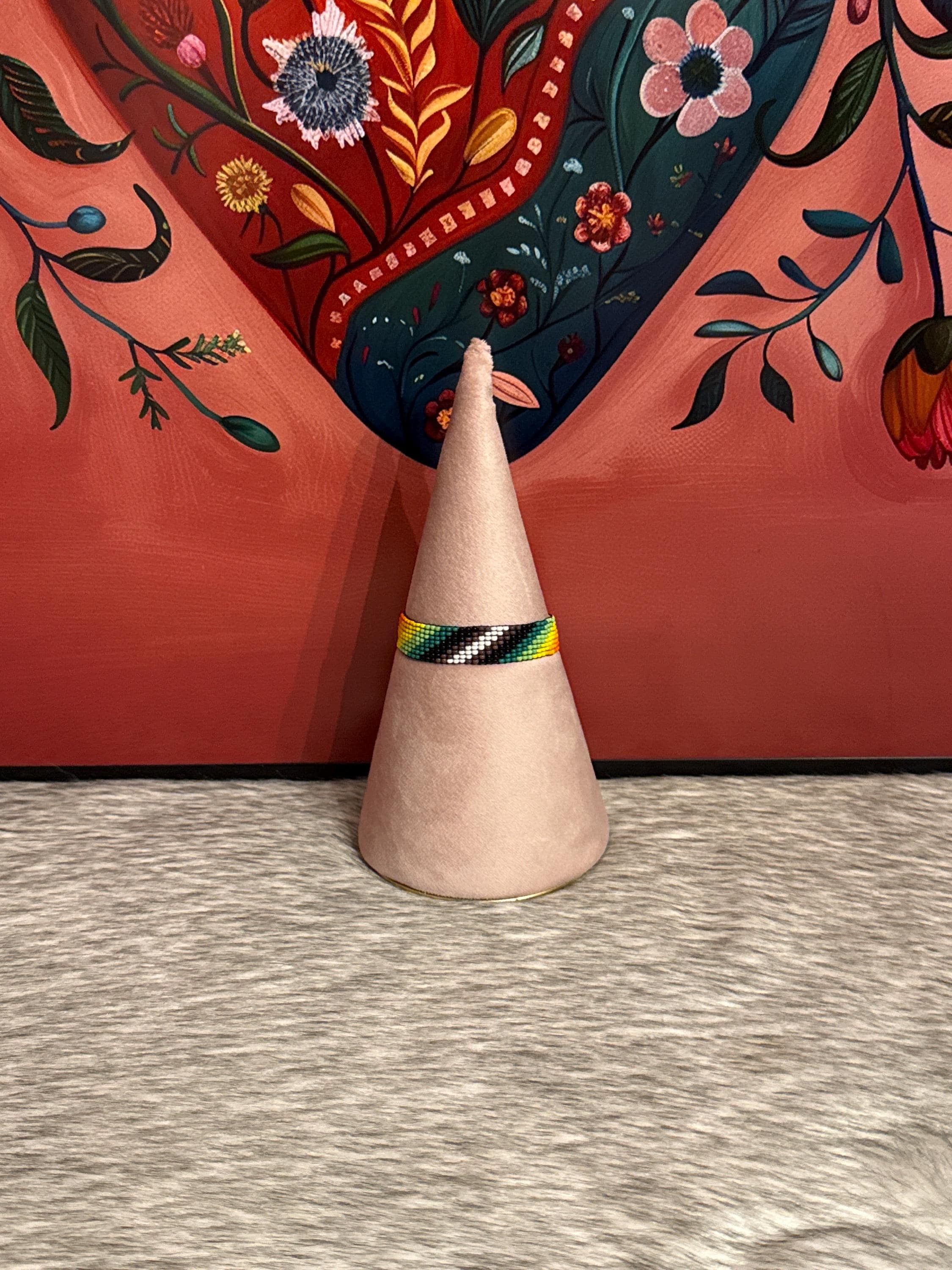 Handmade artisan bracelets made with glass beads, the bracelets measure approximately 7 inches long by 1/2 inch wide.