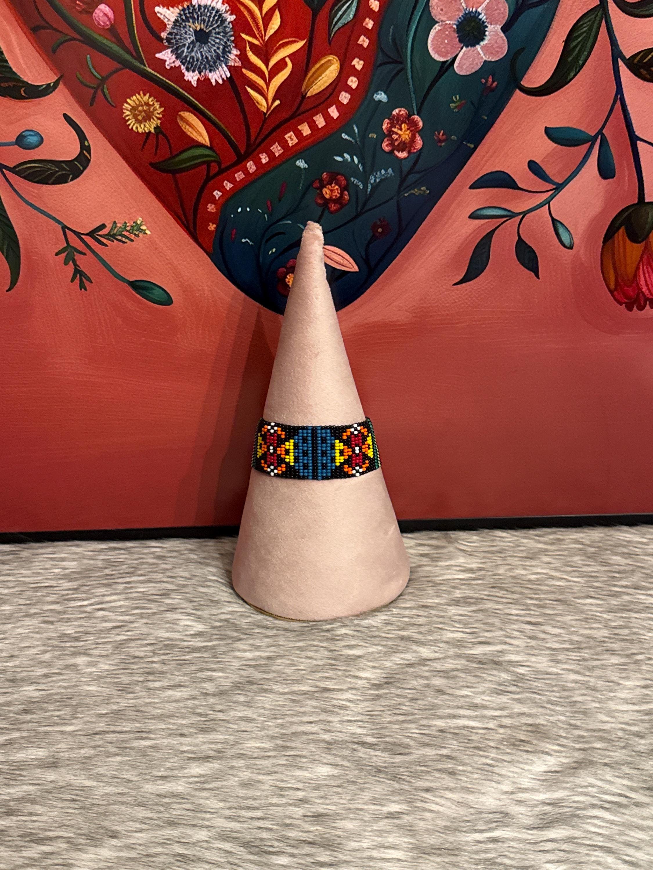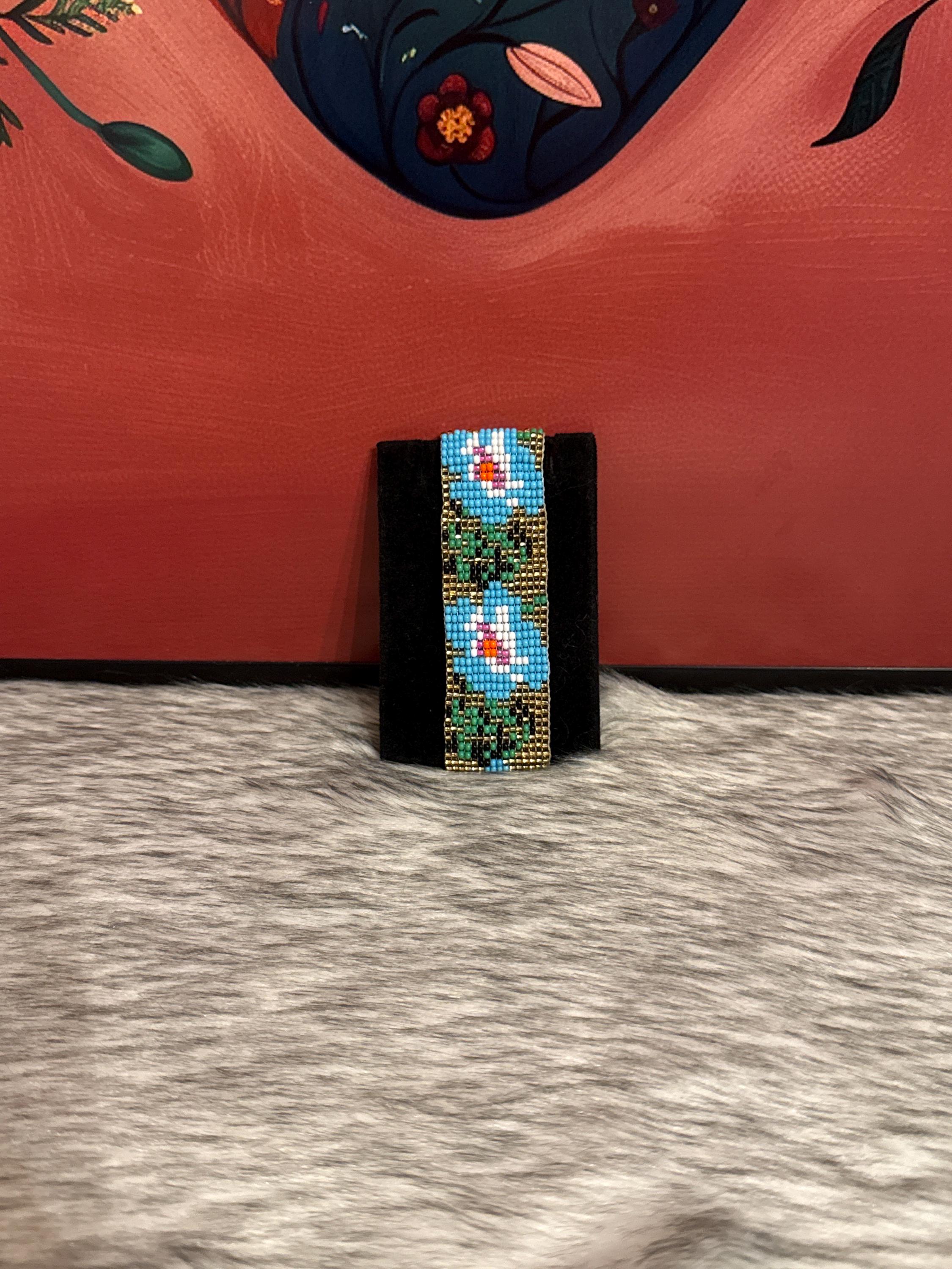 Beautiful handmade bracelets with glass beads, the bracelets measure approximately 7 inches long by 1 inch wide.