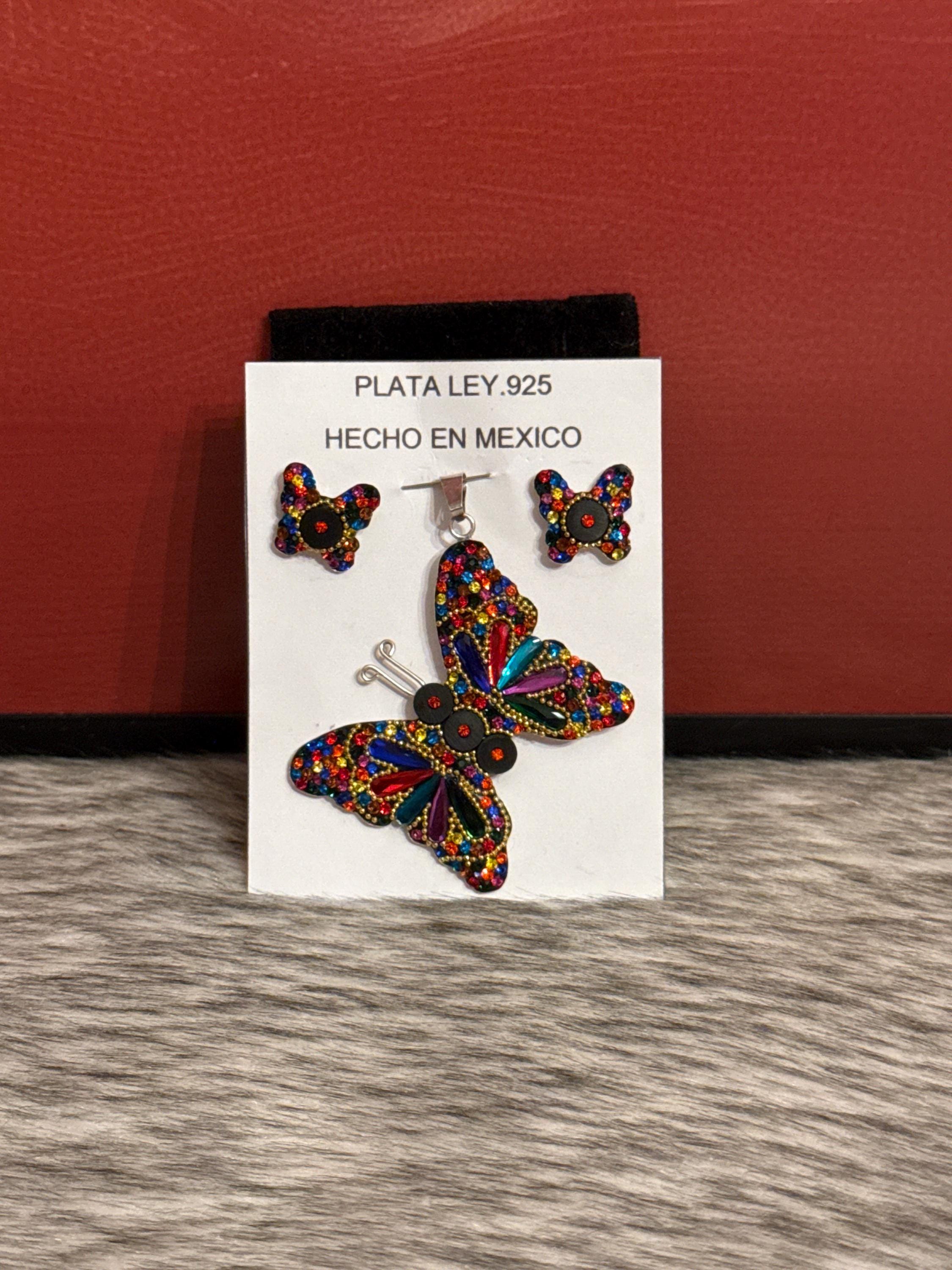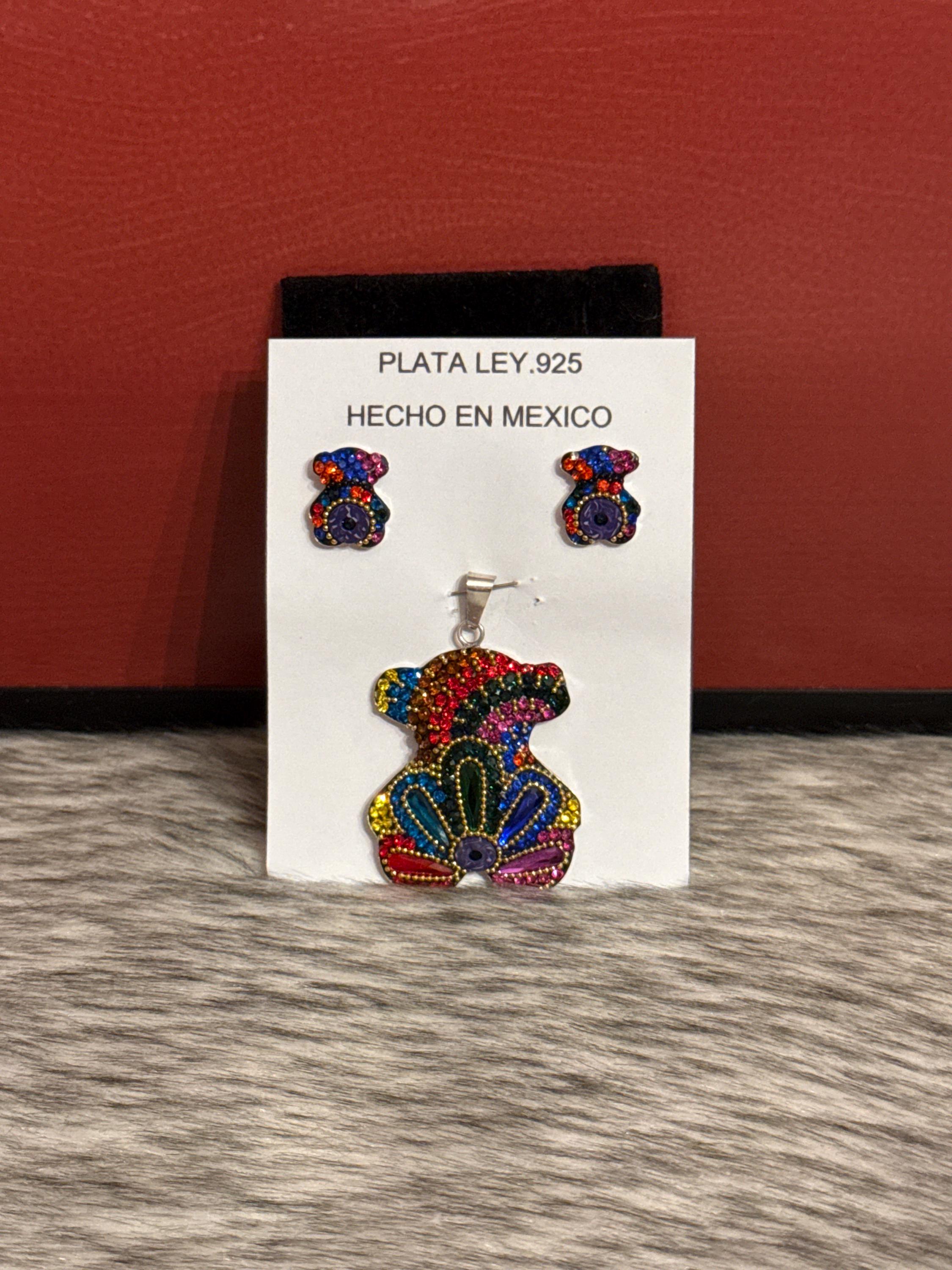 Beautiful set of handcrafted 925 sterling silver jewelry, made and decorated by Mexican artisans. The size and color of the stones may vary as it is a handmade piece, not machine-made. Chain not included.