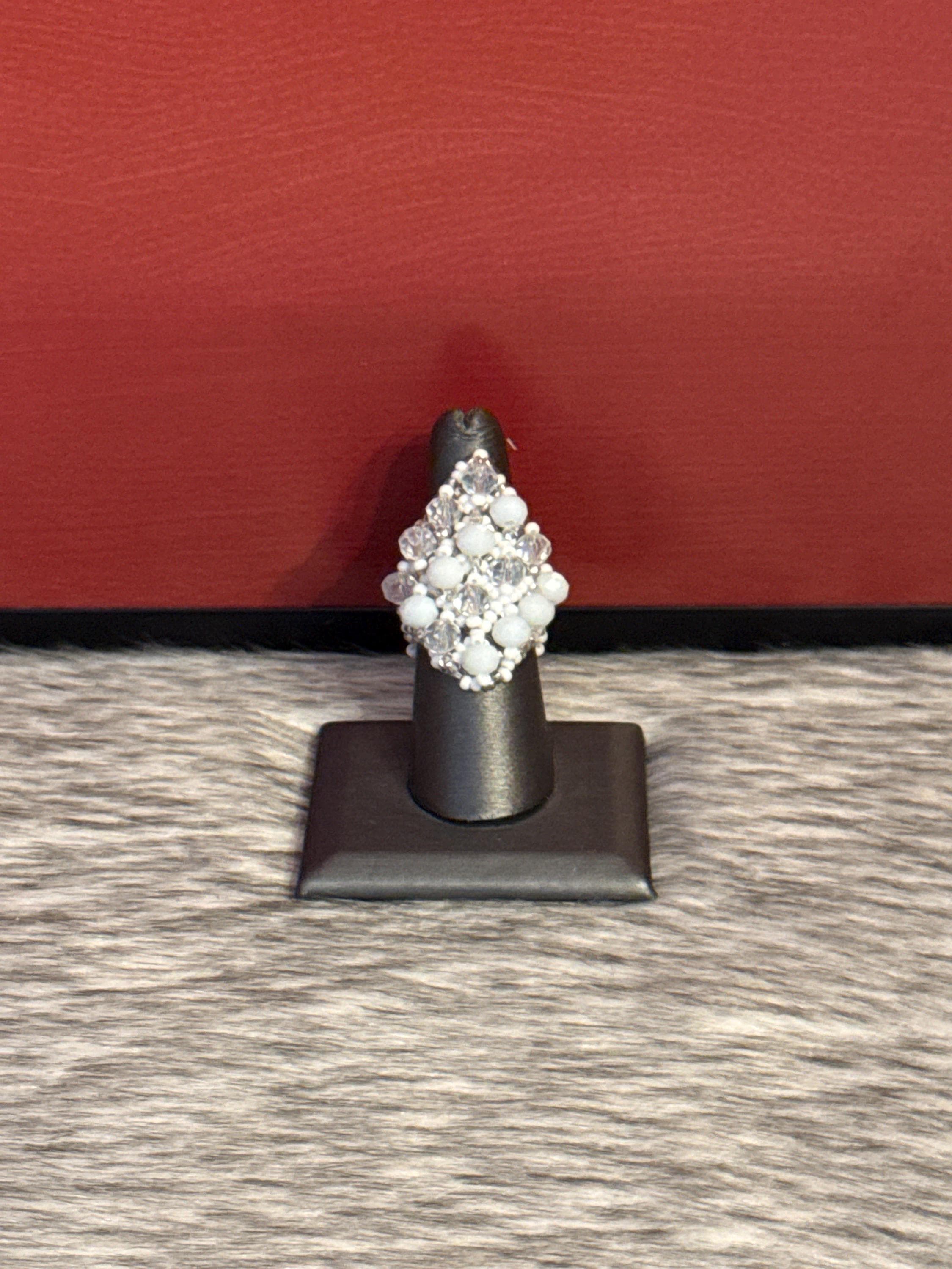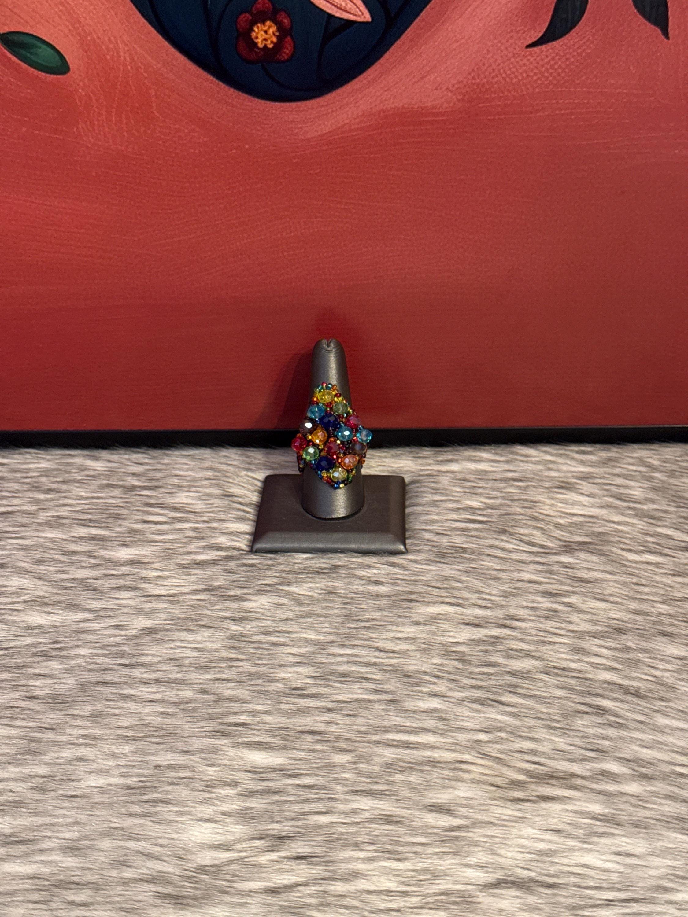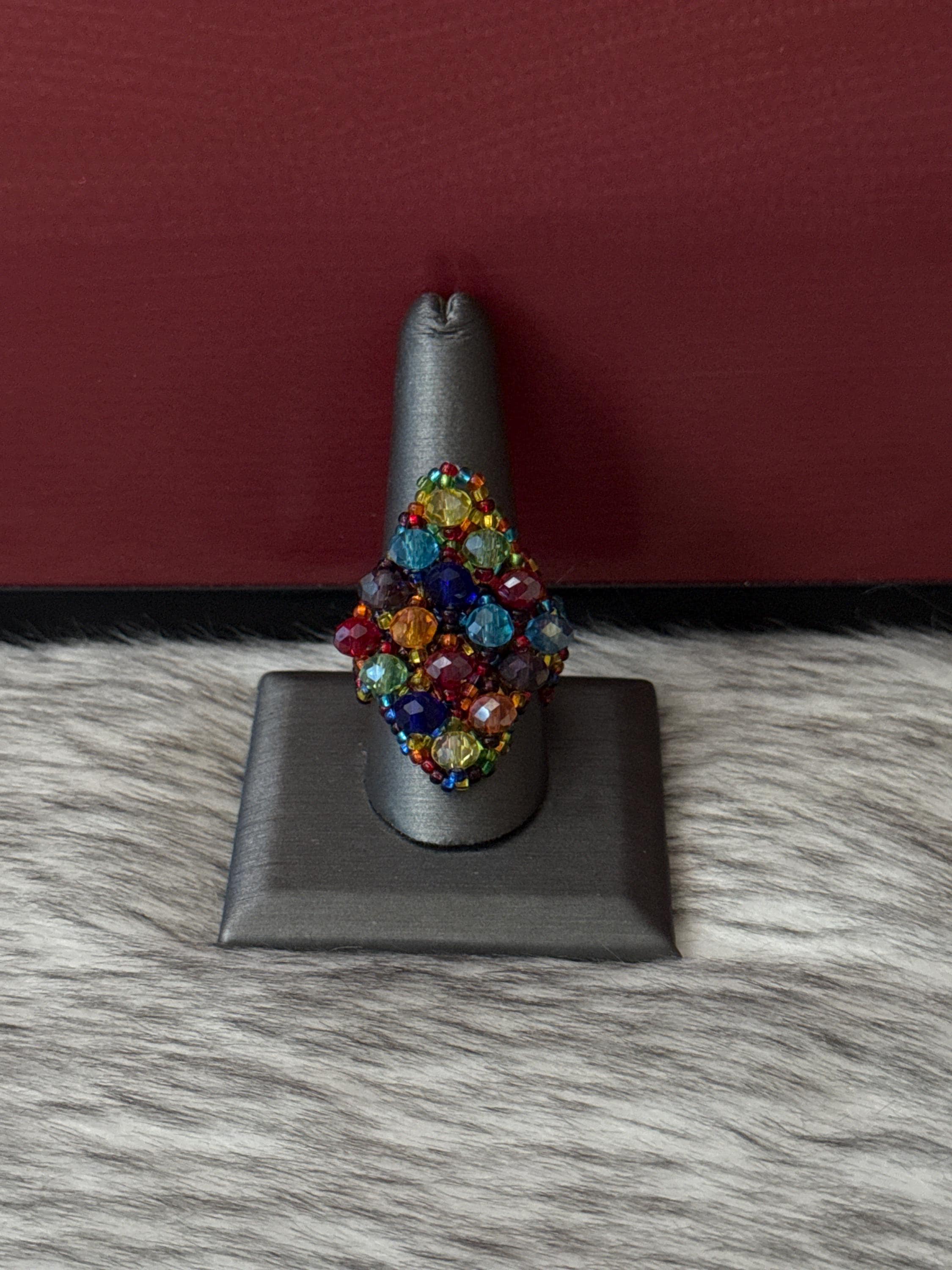 Beautiful handmade rings made with glass beads and Czech crystals.