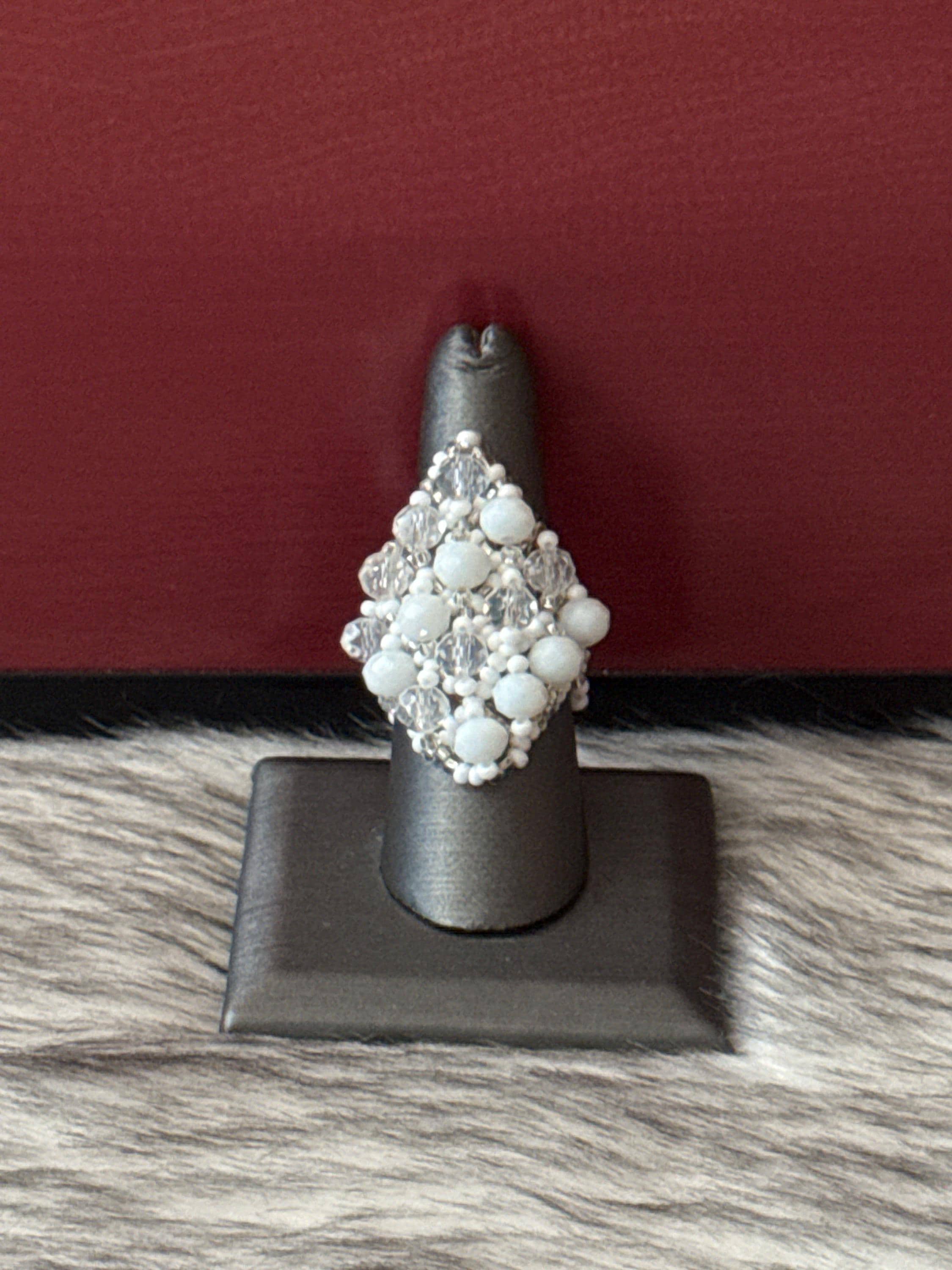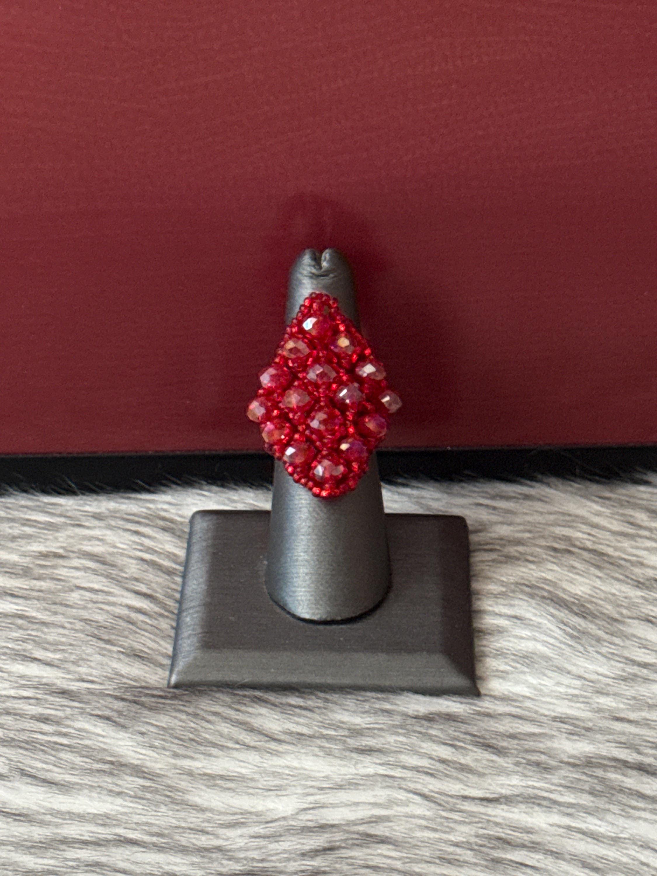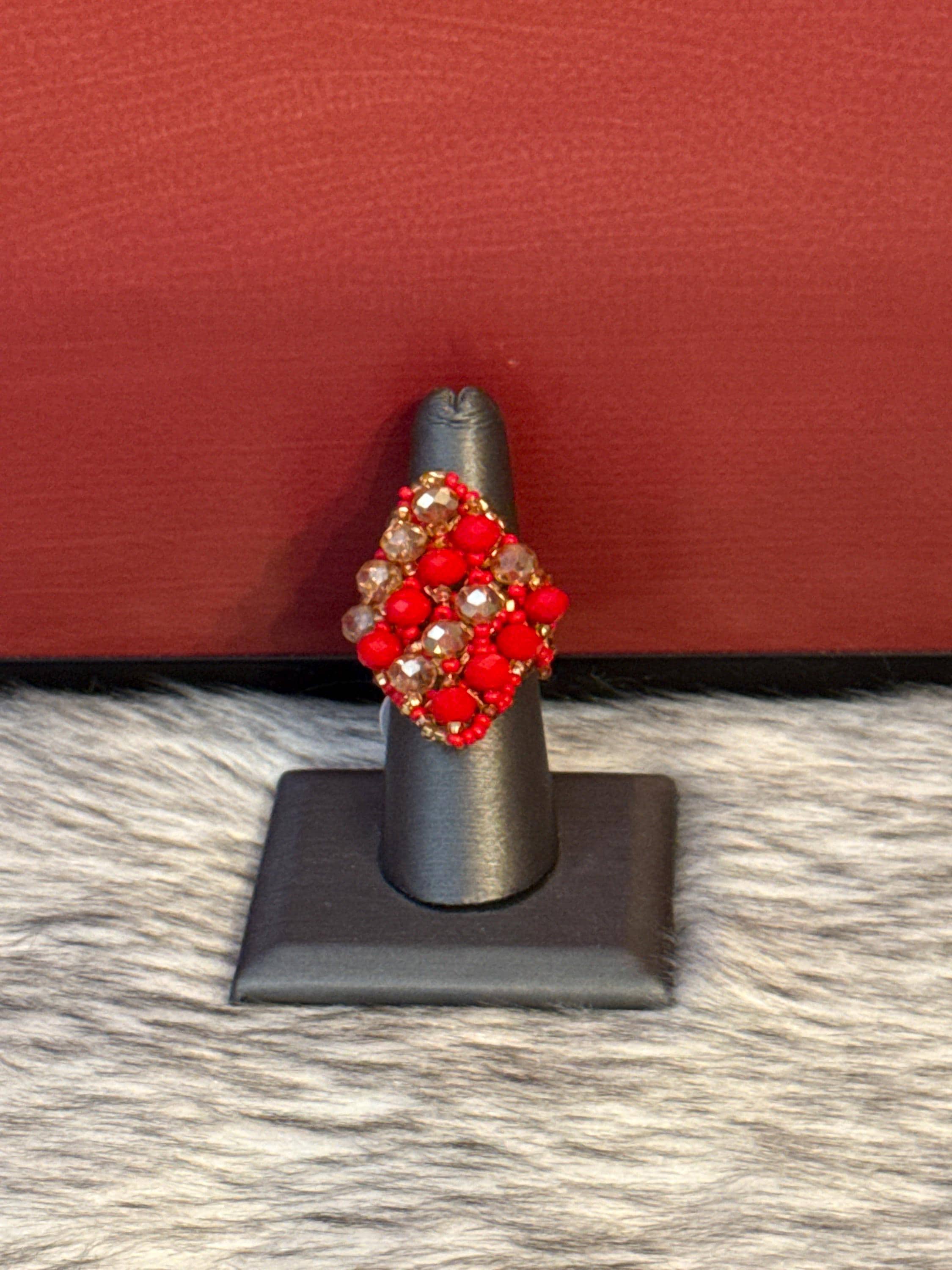 Beautiful handmade rings made with glass beads and Czech crystals.