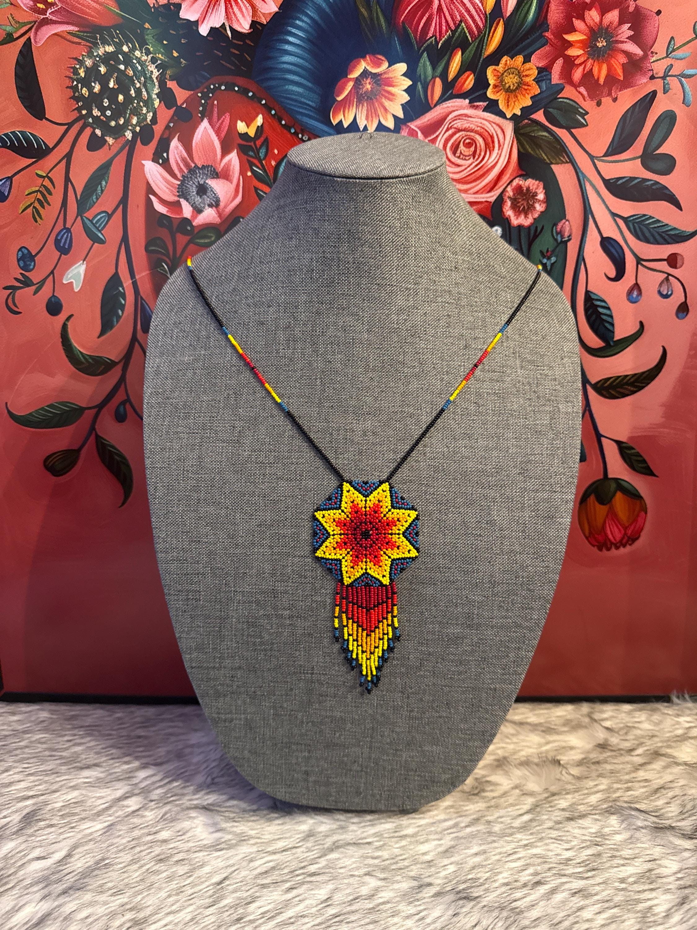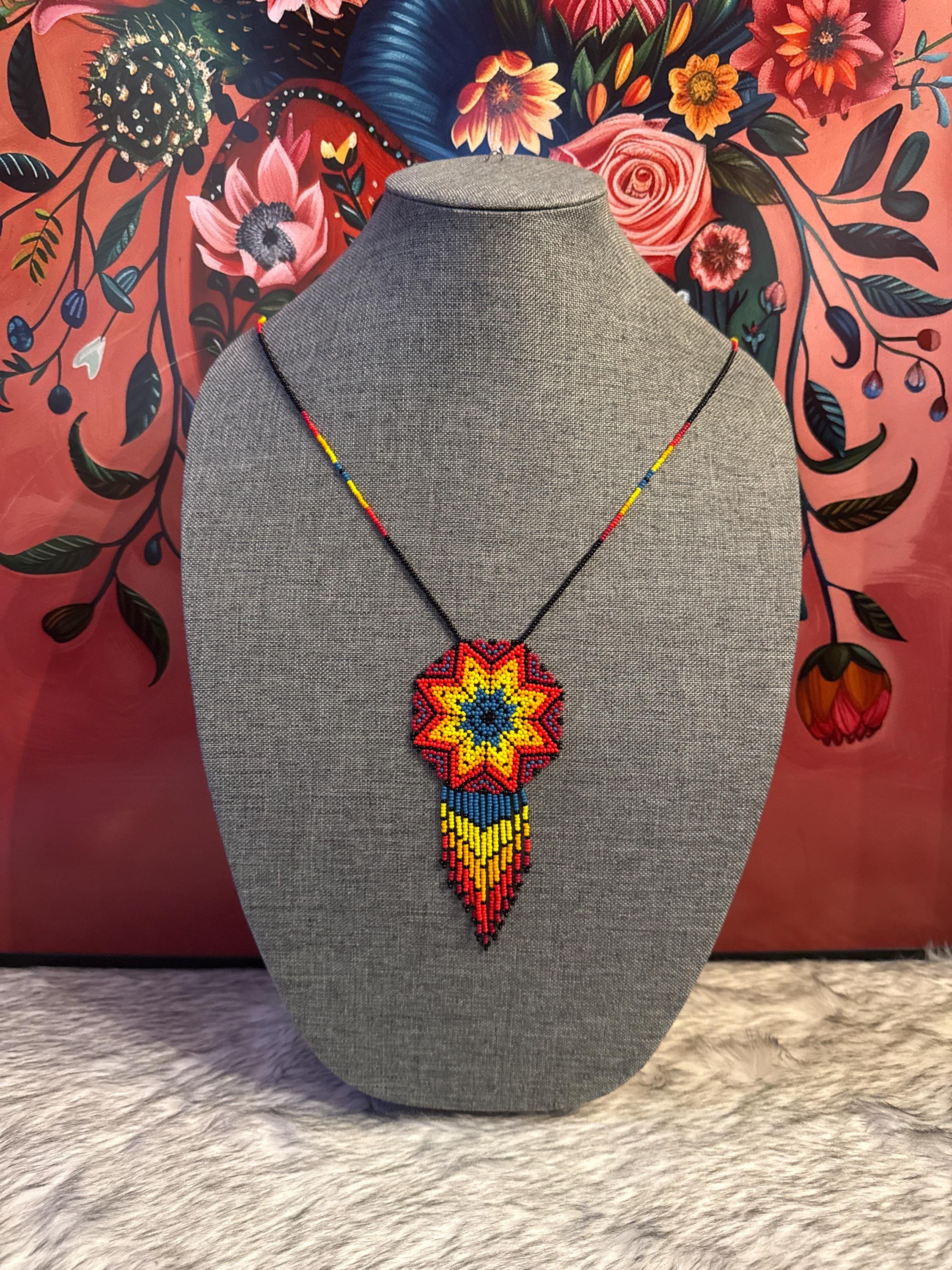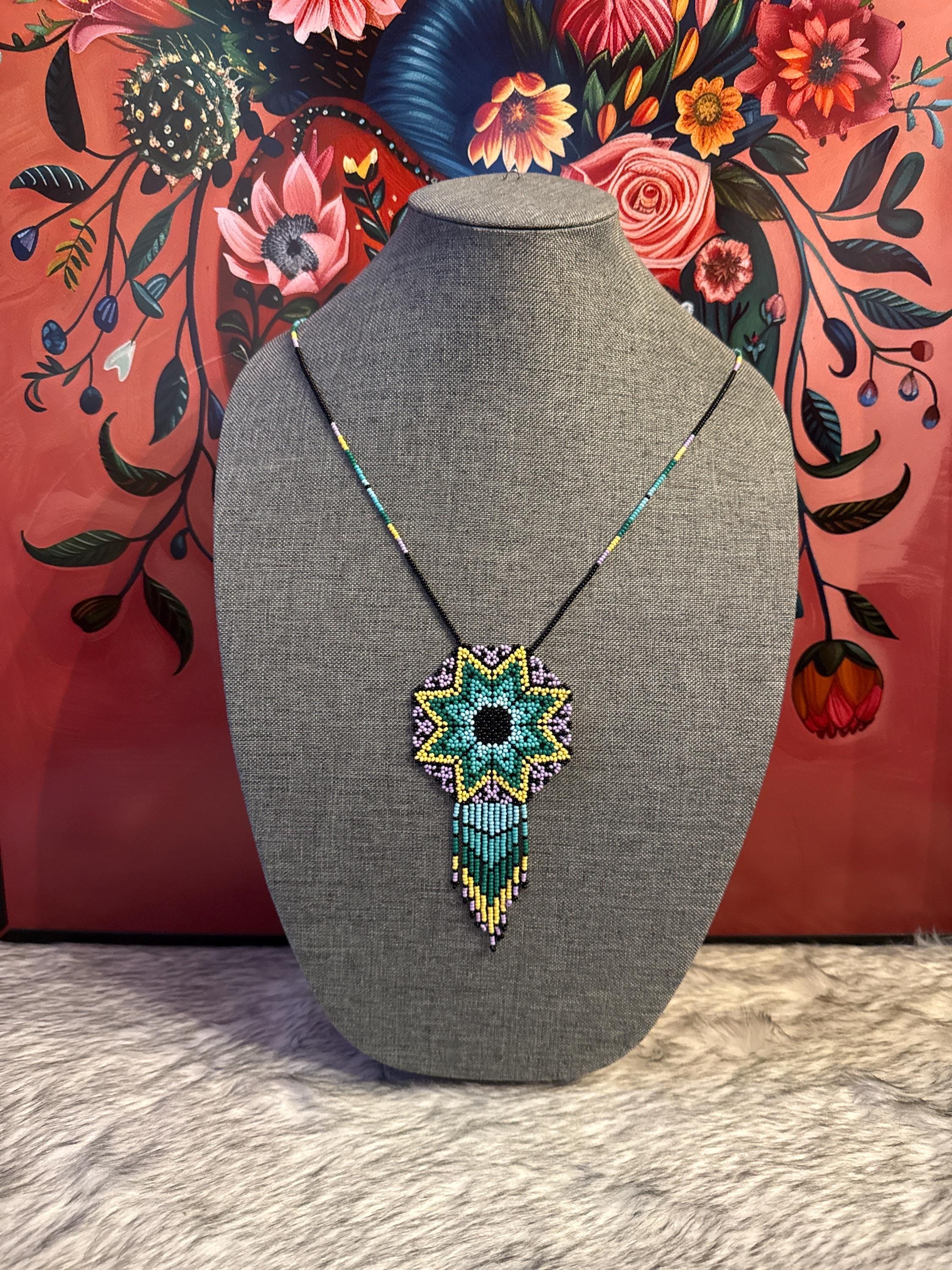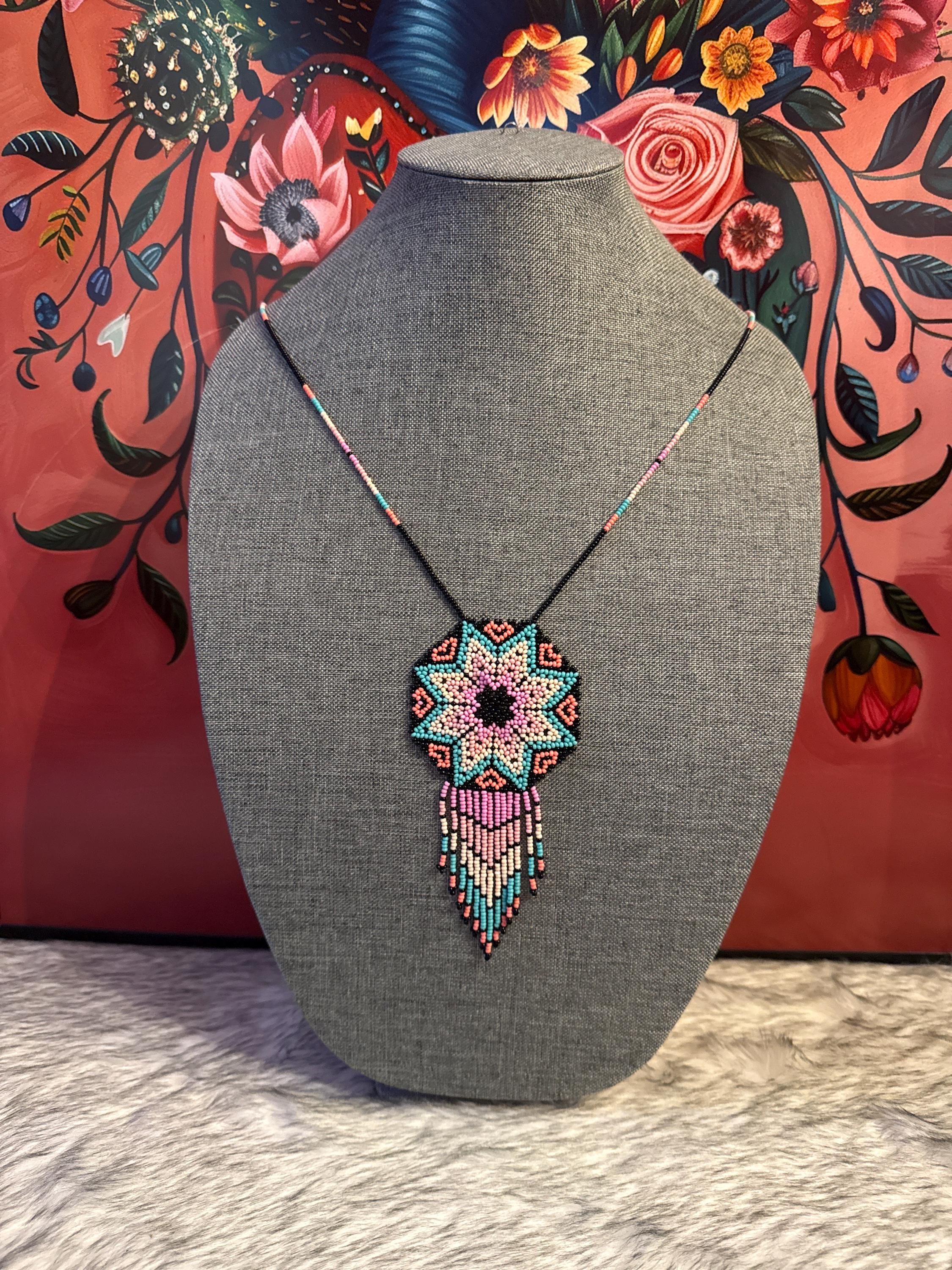 Beautiful handmade necklace and earring set with bugle beads. Handcrafted dreamcatcher.