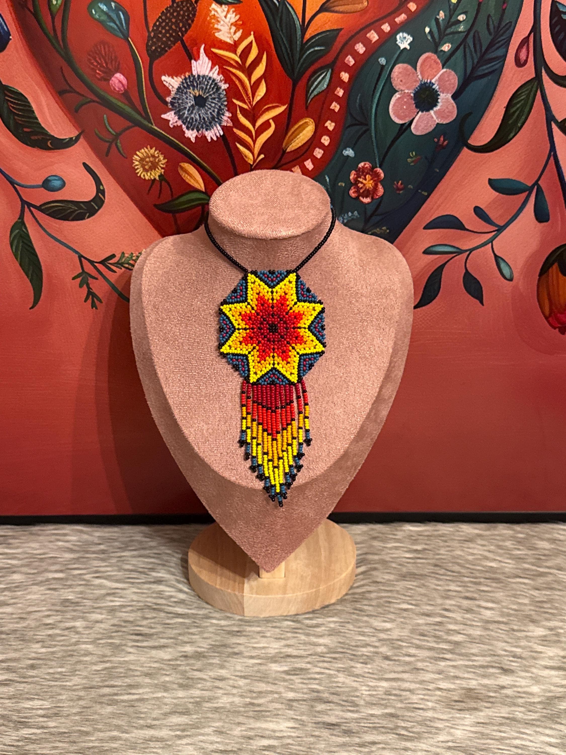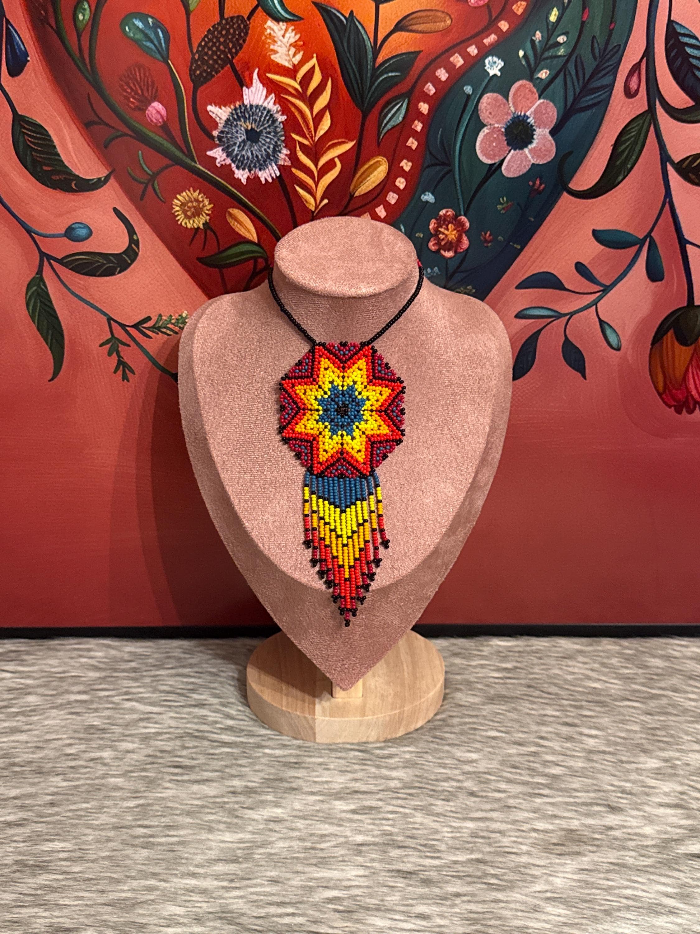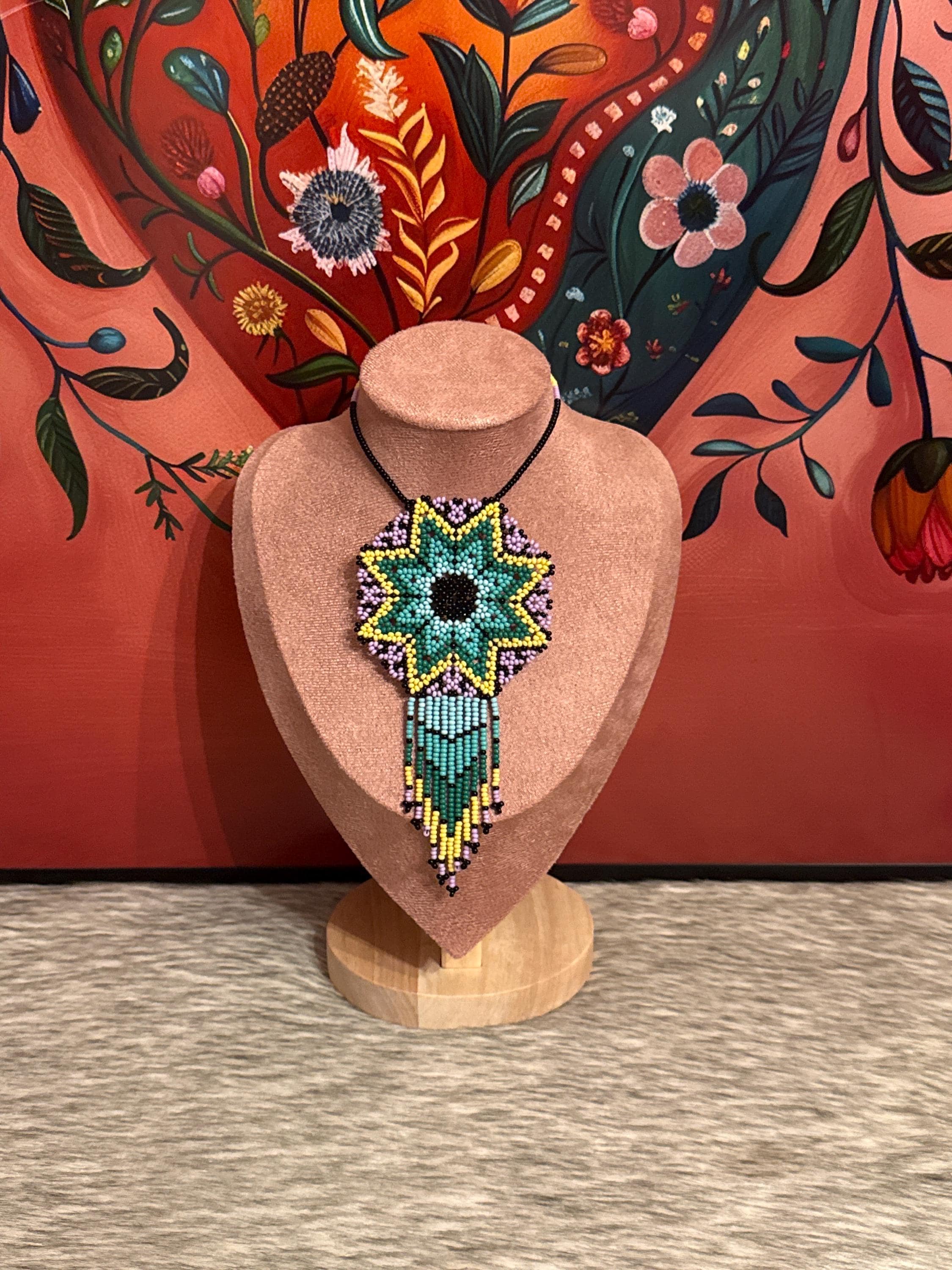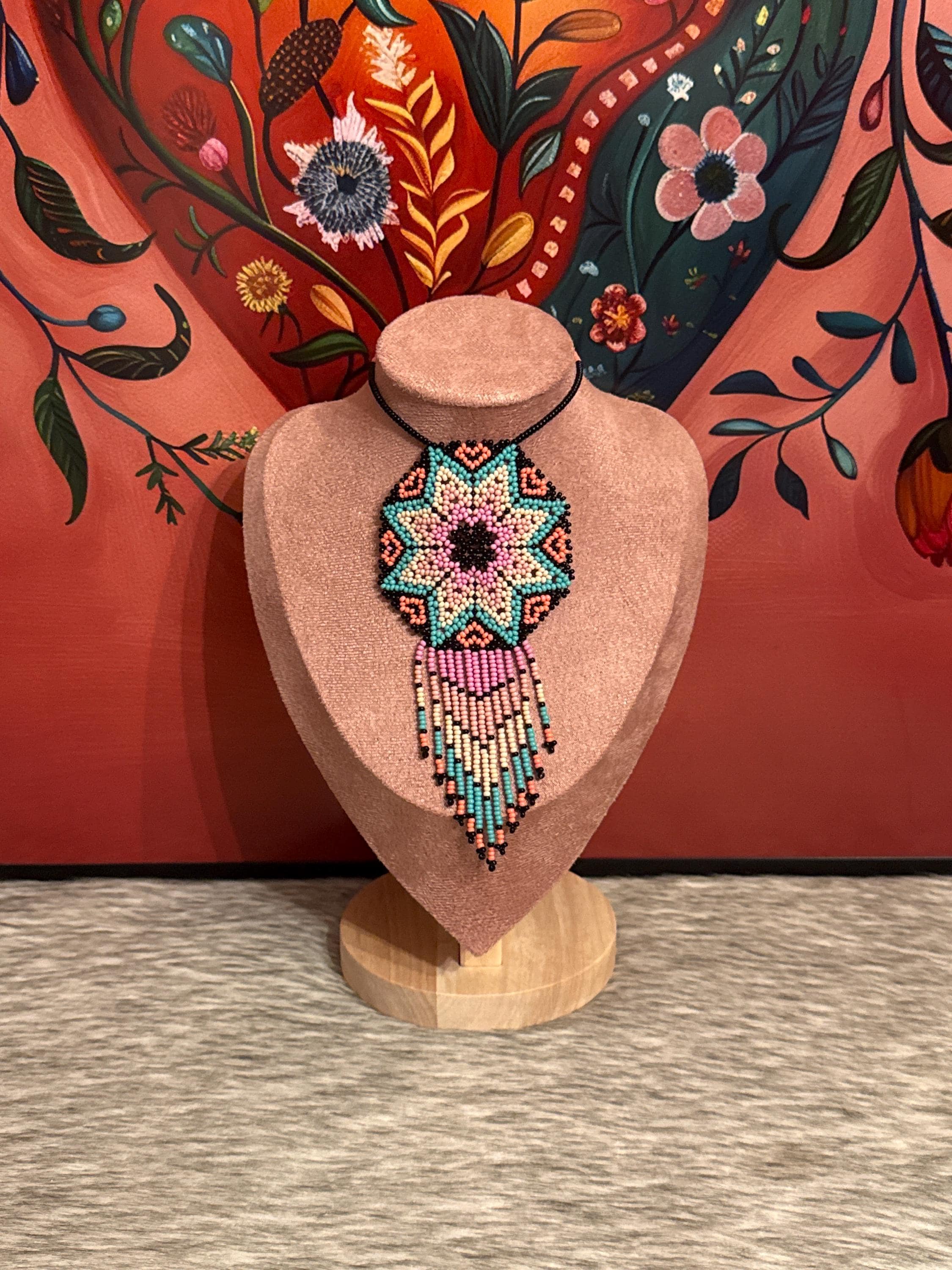 Beautiful handmade necklace and earring set with bugle beads. Handcrafted dreamcatcher.