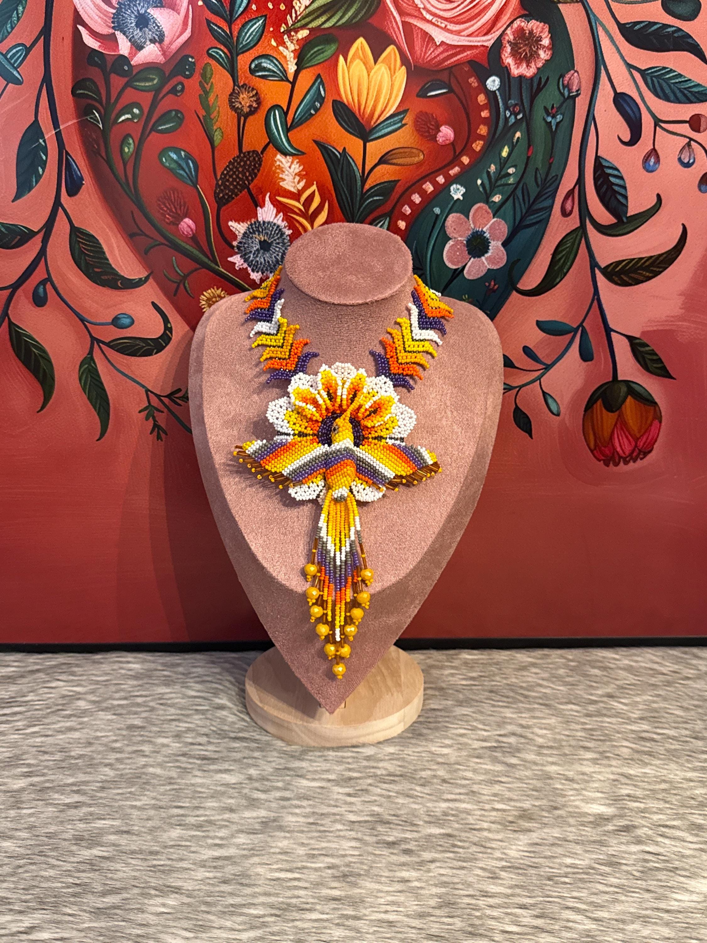 Beautiful handmade hummingbird necklace set, includes earrings and bracelet, handmade with bugle beads.