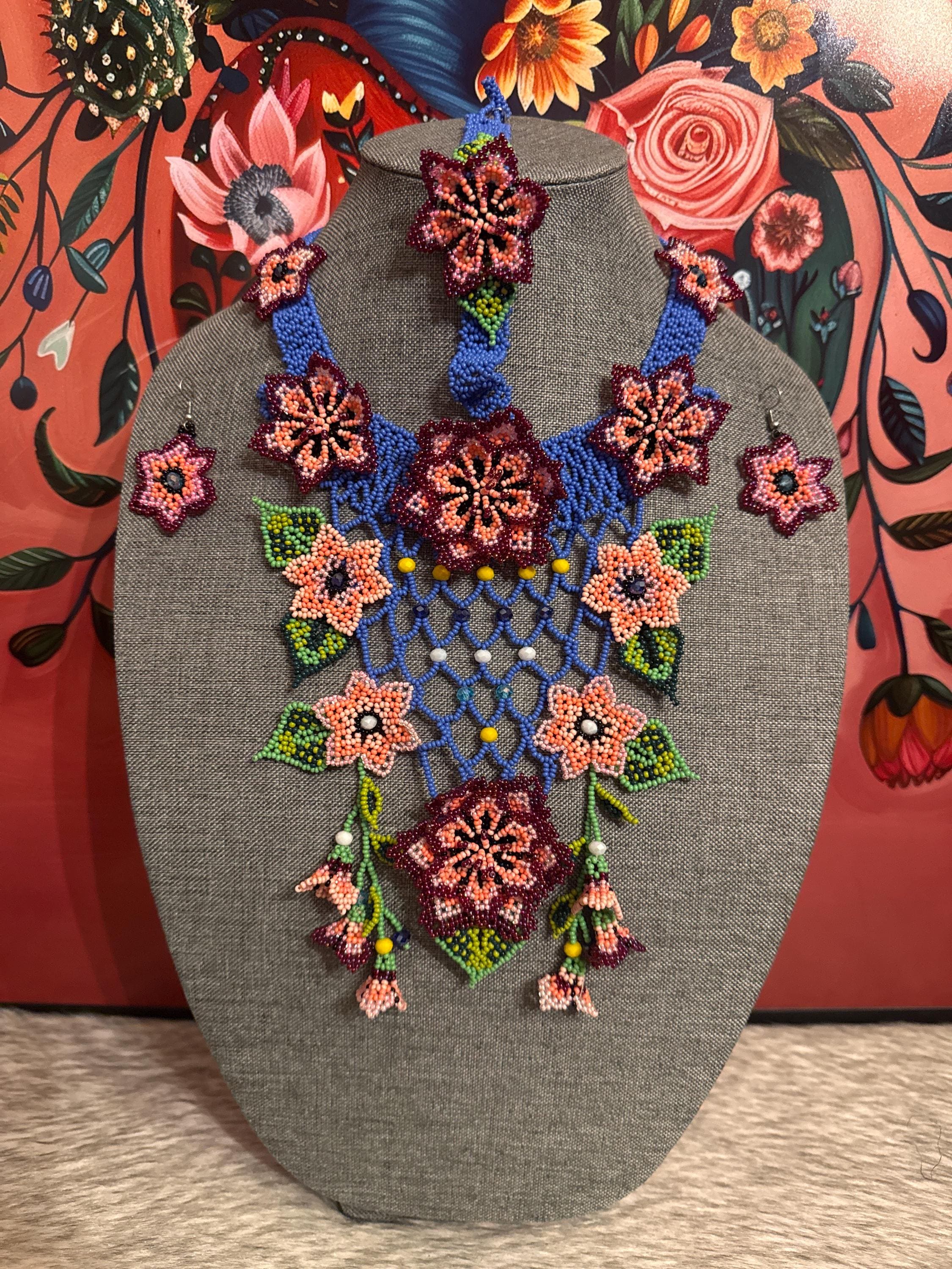 Hermoso set de collar estilo maya,incluye aretes y pulsera,hechos a mano con cuentas de vidrio y canutillos.