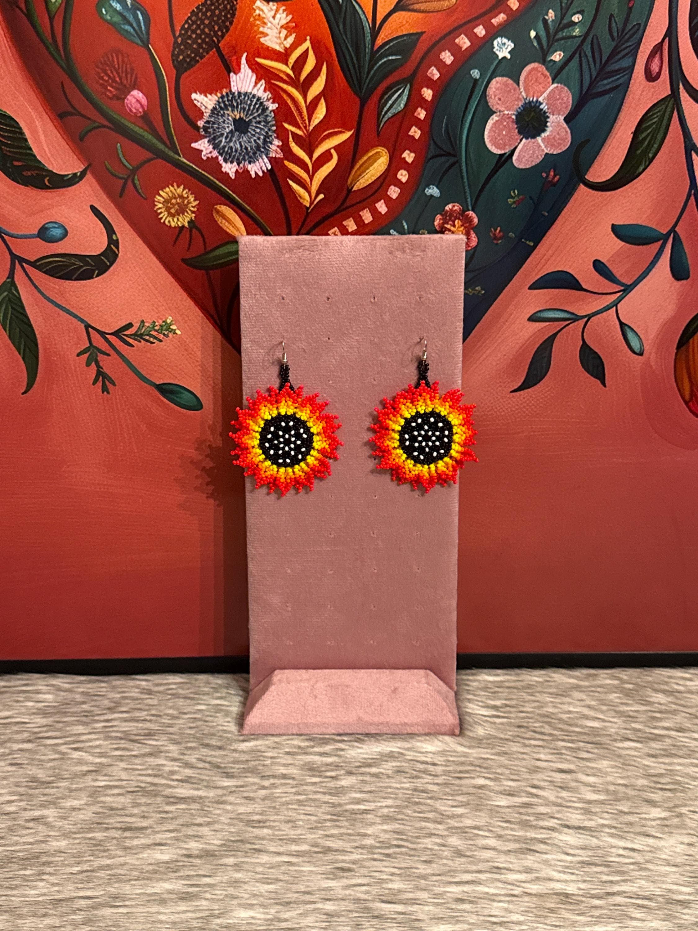 Beautiful handmade sunflower earrings crafted with glass beads.