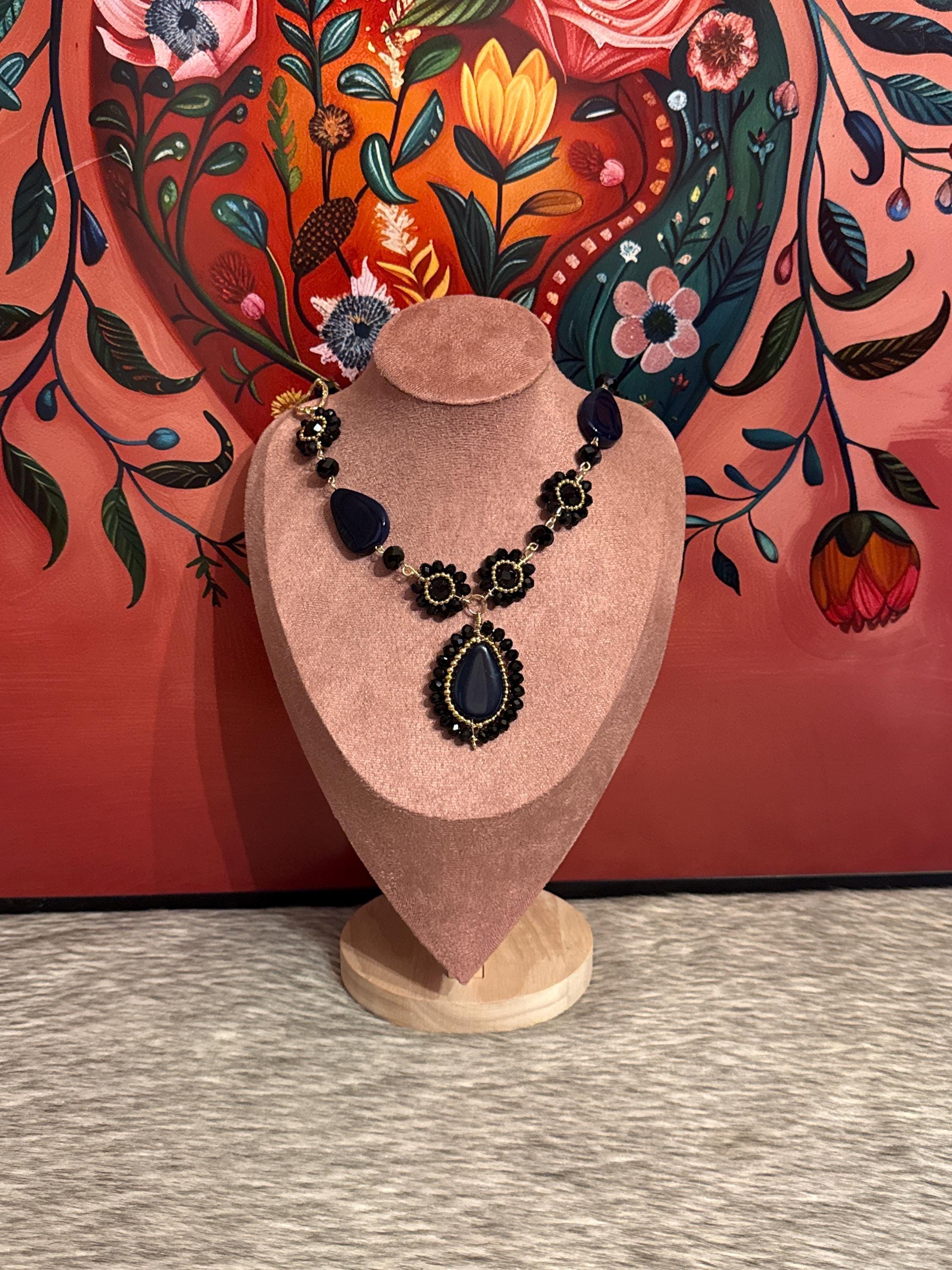 Beautiful necklace set, made using wire wrap technique with Czech crystals and natural agates.