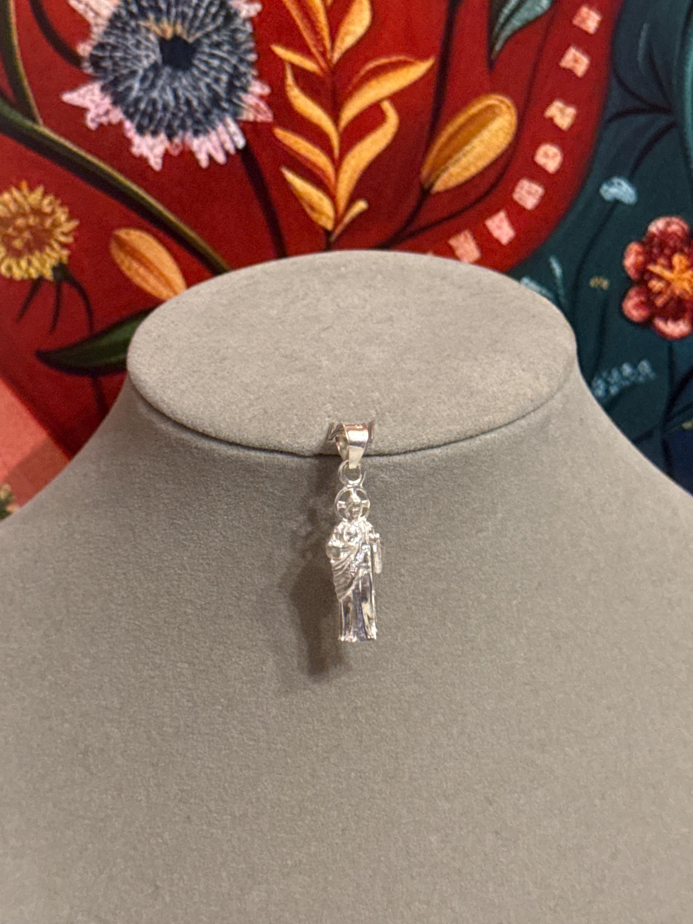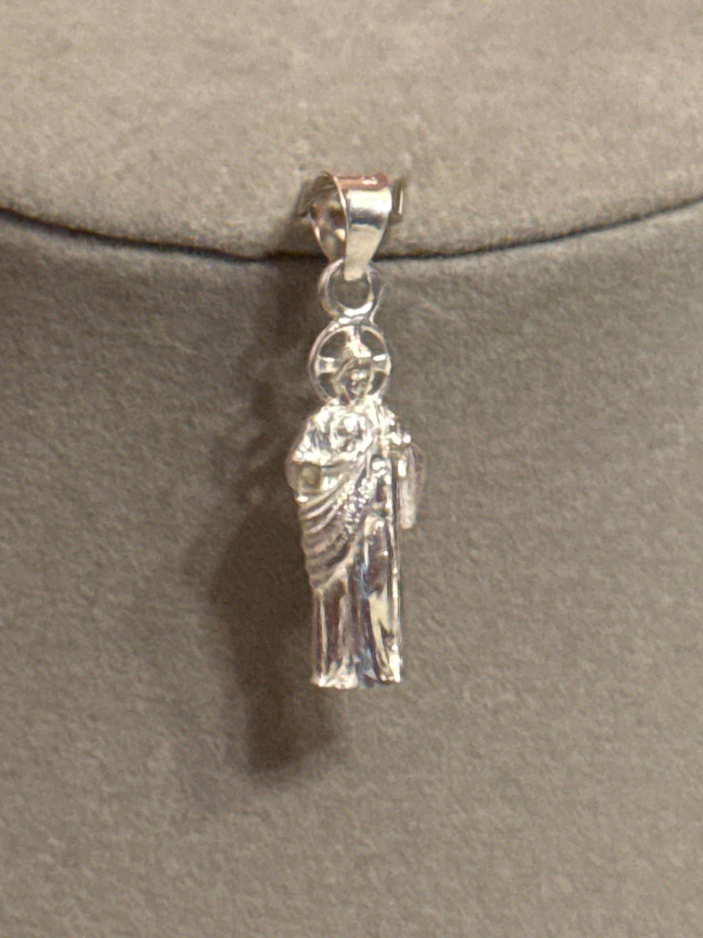 Beautiful Saint Jude Thaddeus pendant, made of 925 sterling silver, measures approximately 1.25 inches long.