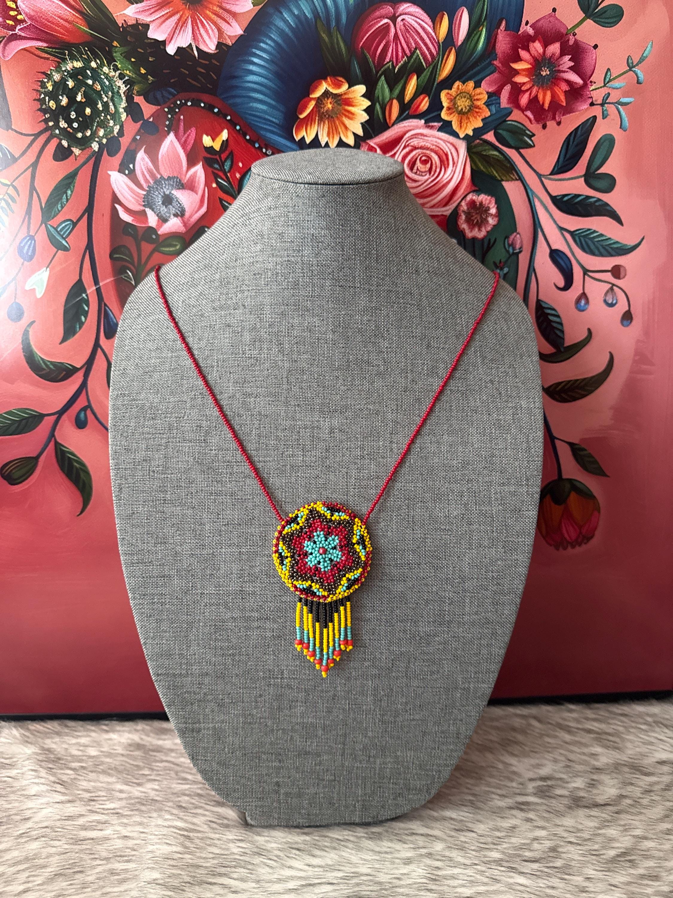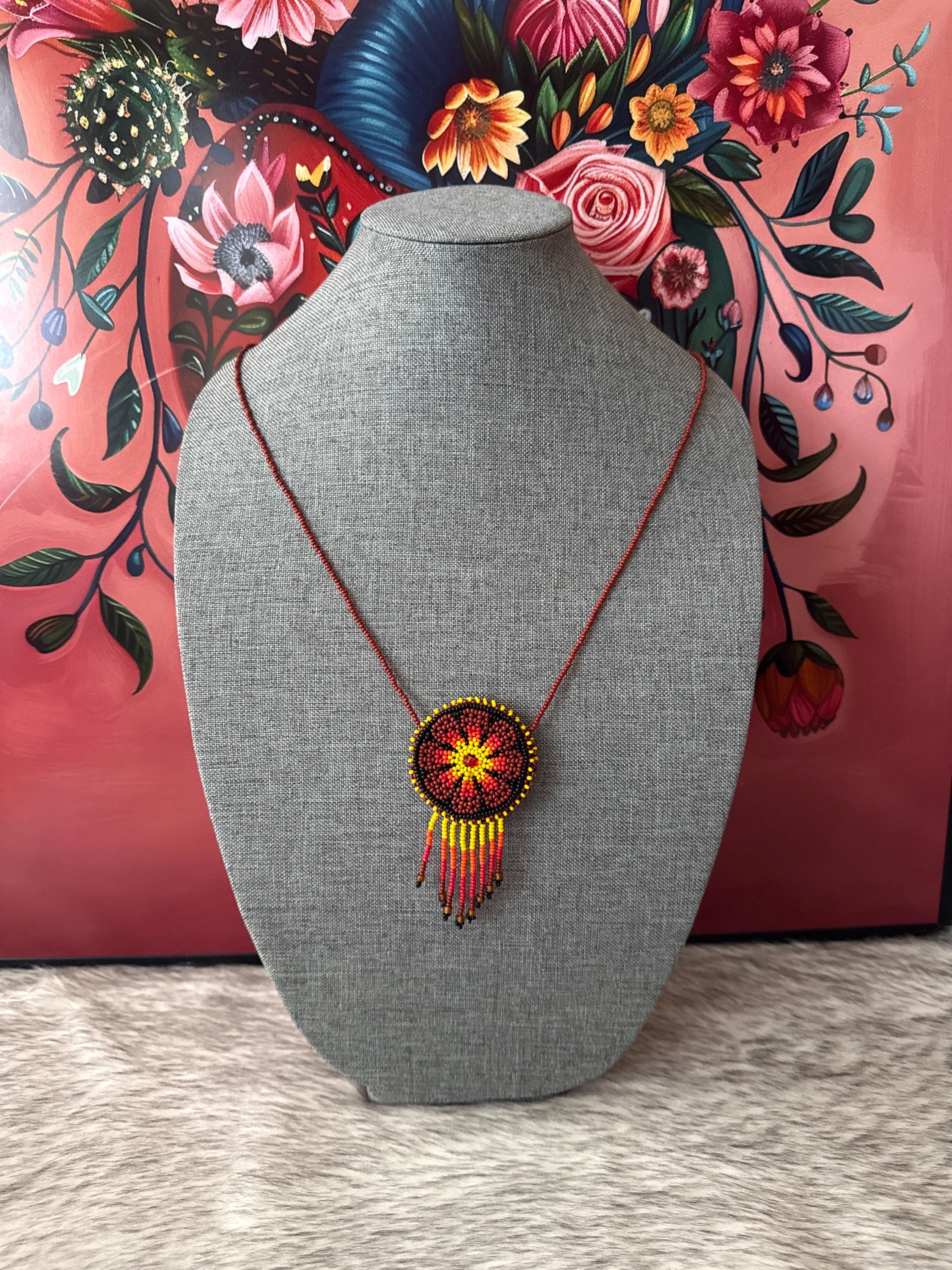 Beautiful dreamcatcher necklace with a pouch included, handmade by Mexican artisans.