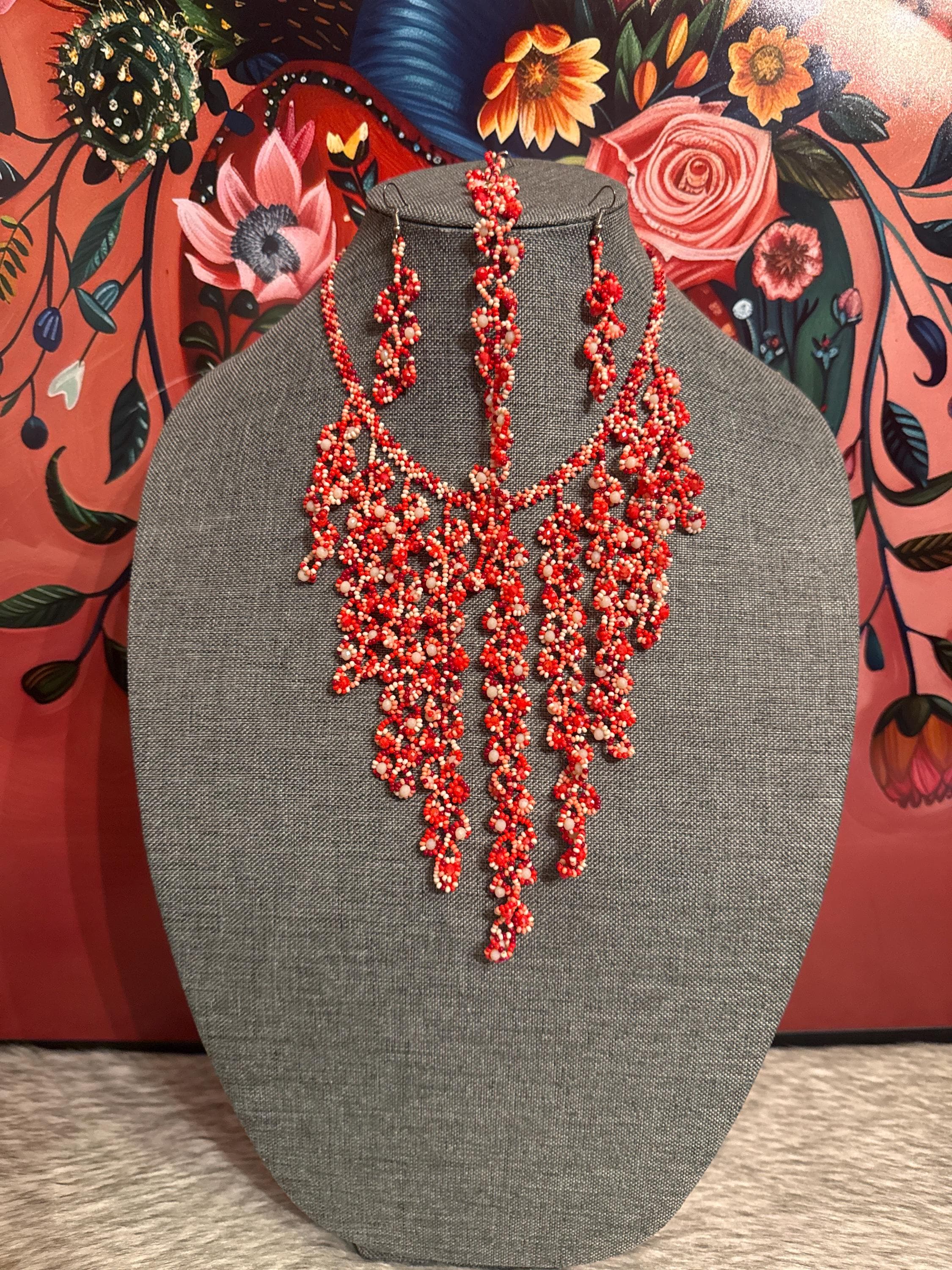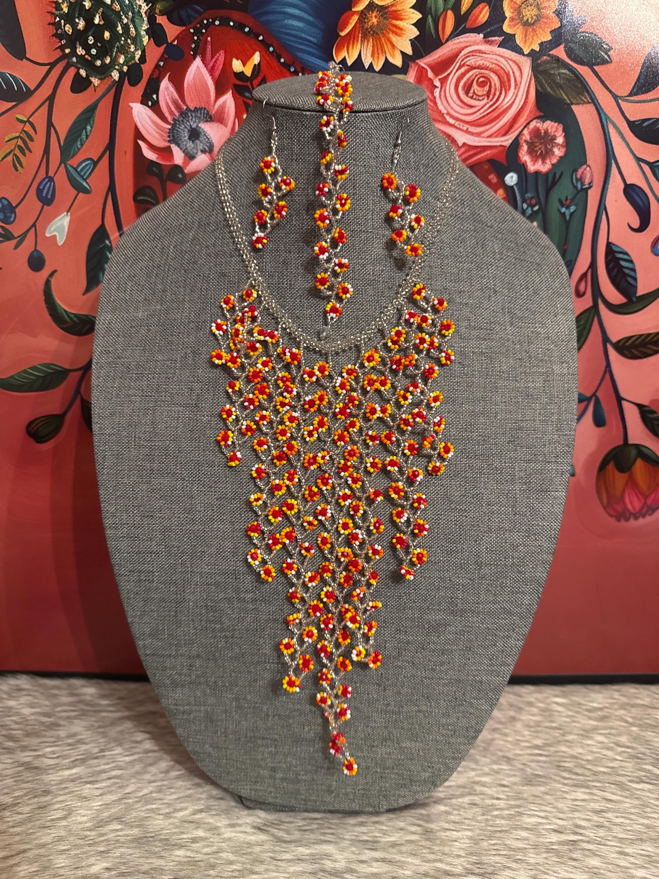 Beautiful necklace set with bracelet and earrings handmade by Mexican artisans.