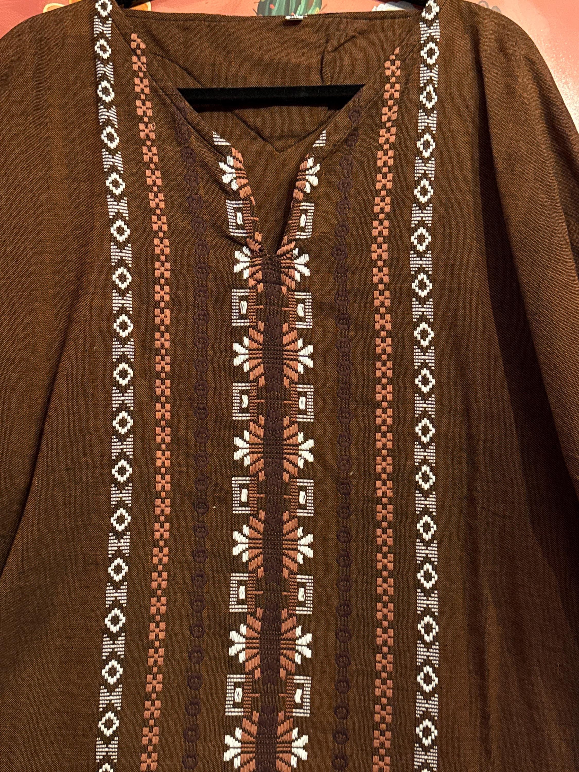 Mexican artisan shirt, made with manta fabric and embroidered patterns, extra extra large size, size 2XL, perfect for an afternoon at the beach or to simply look cool and comfortable.