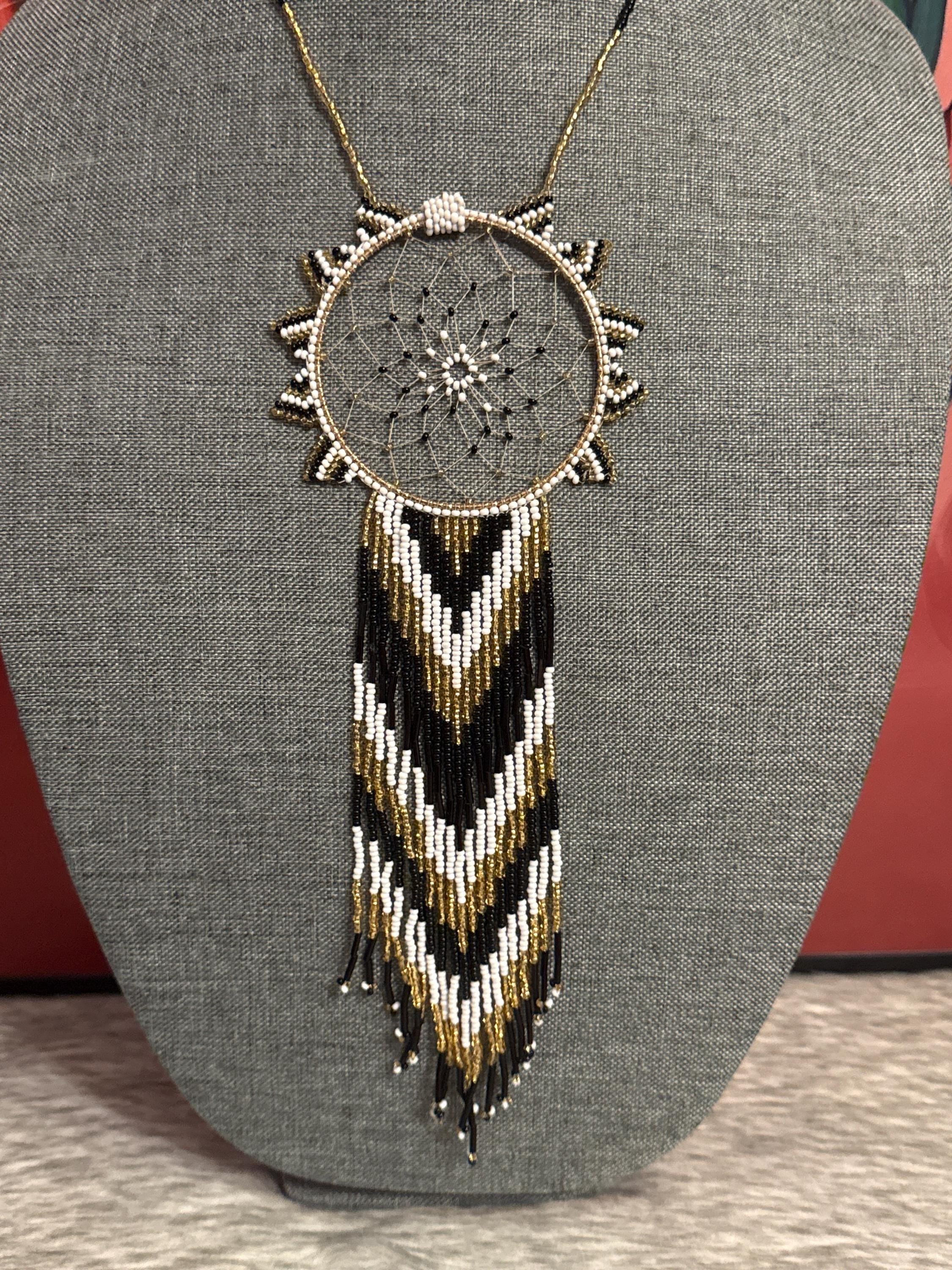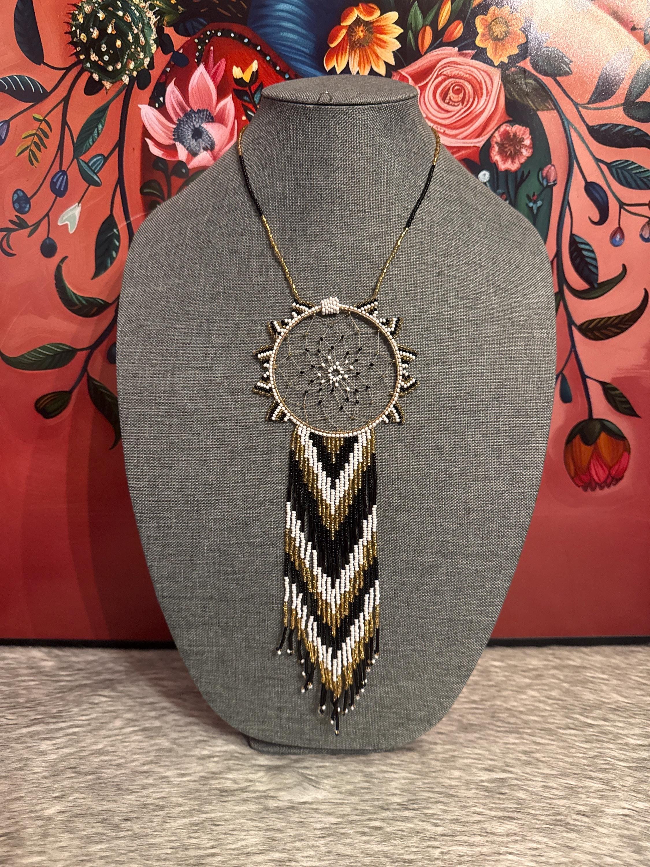 Beautiful dreamcatcher necklace, made with glass beads by Mexican artisans.
