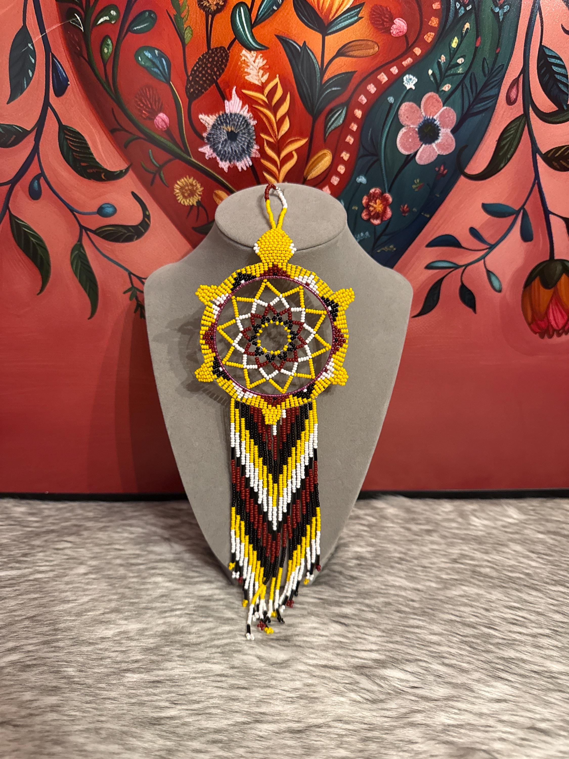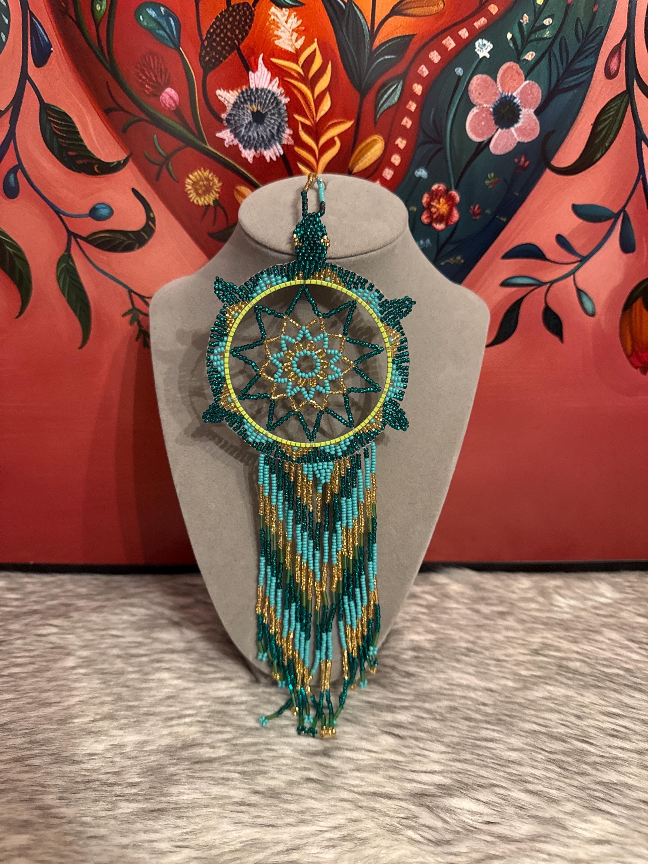 Beautiful dreamcatcher handmade by Mexican artisans. It can be hung in the car, on the door of the house or office, or wherever you like.