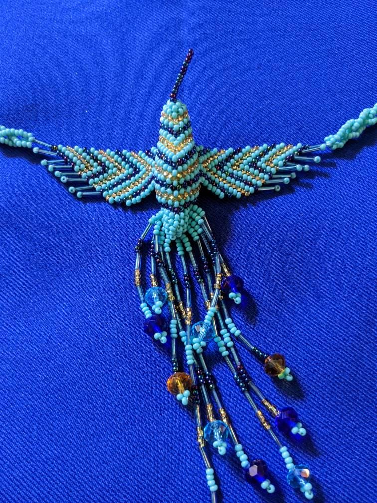 This necklace surpasses the photos, and is beautifully made . I purchased this for pow wow hummingbird dance and it is perfect for my regalia. Very impressed with workmanship and the extra goodies that came unexpectedly. Wouldn't hesitate to purchase from this seller.
