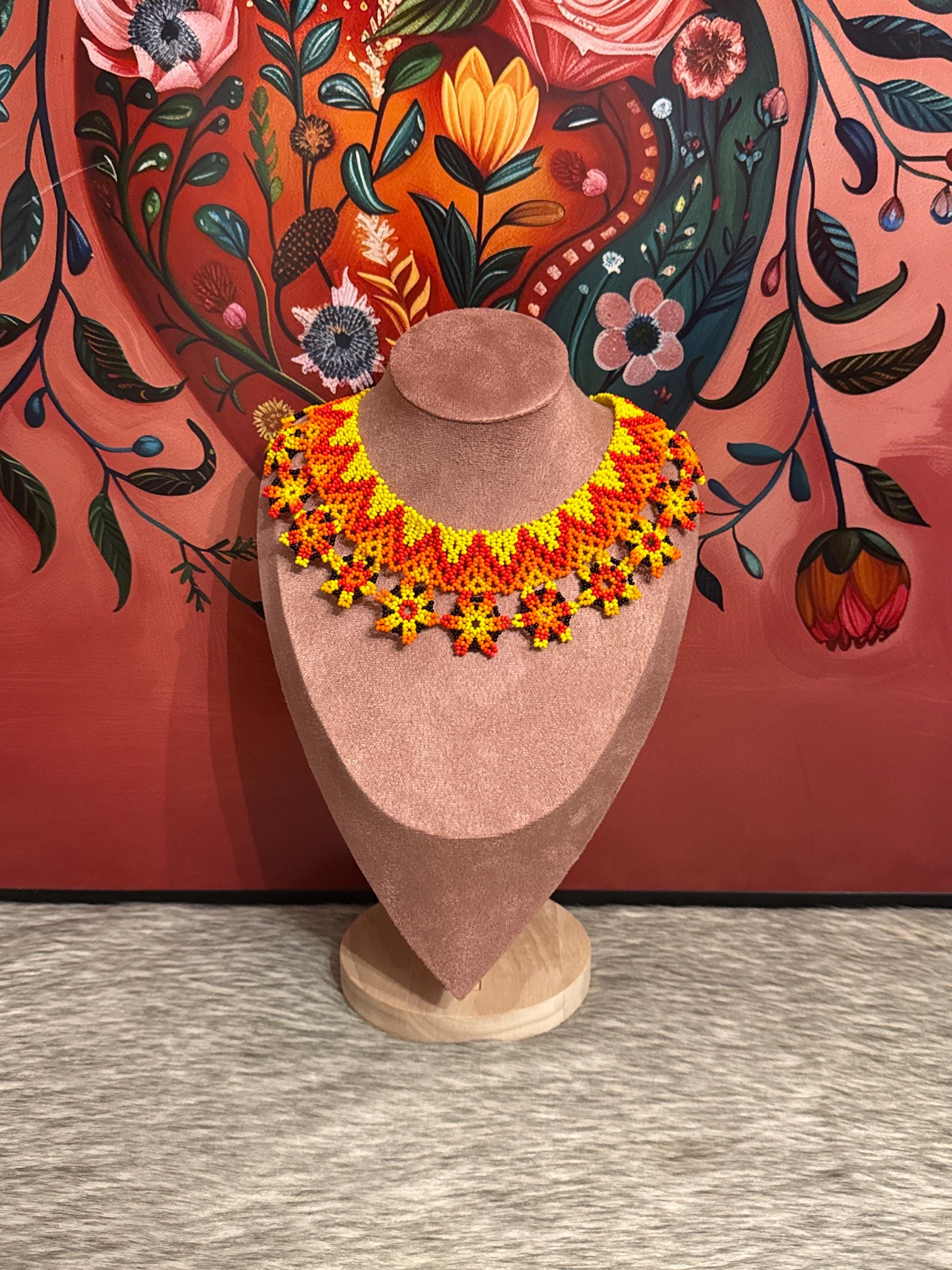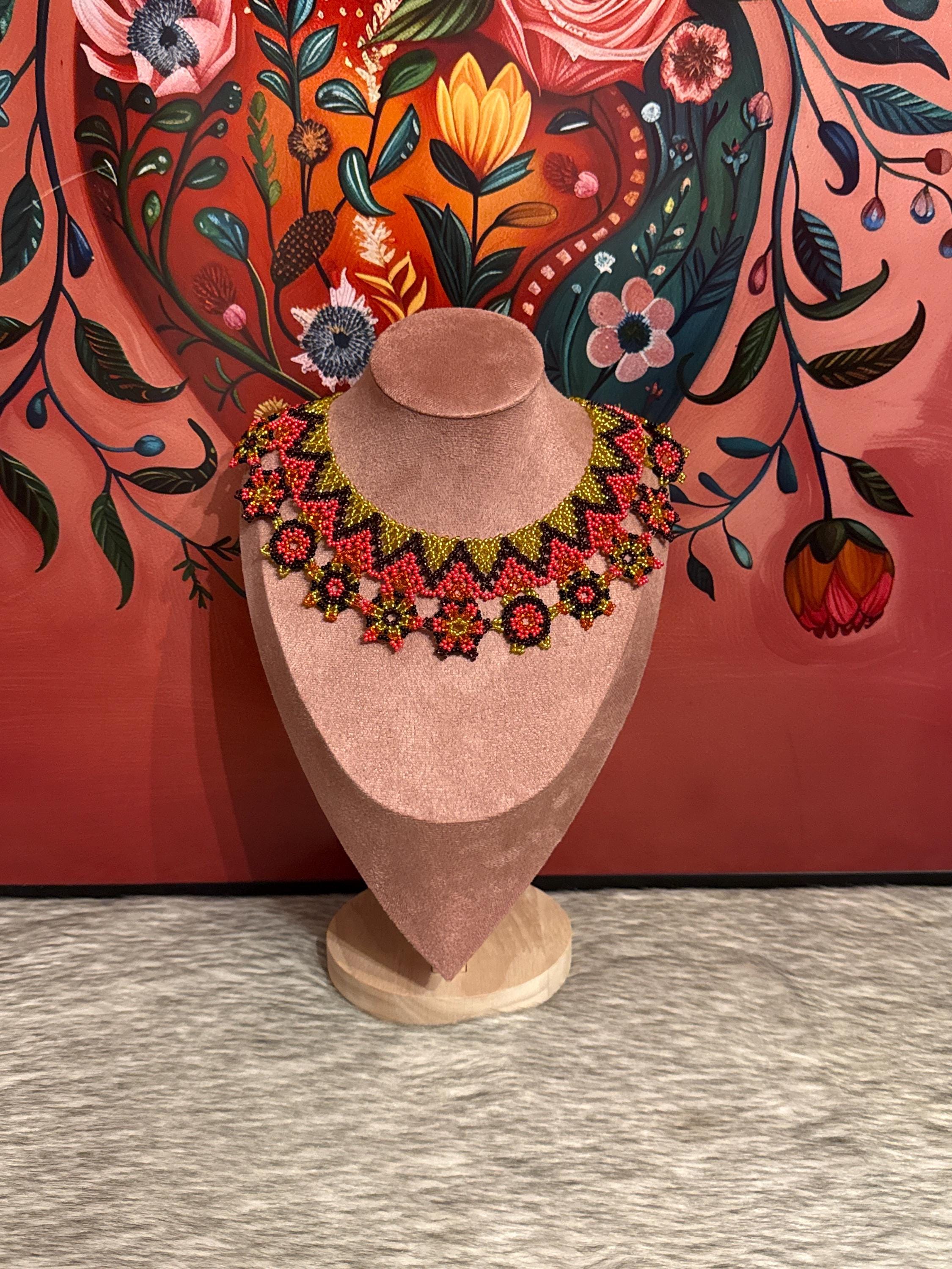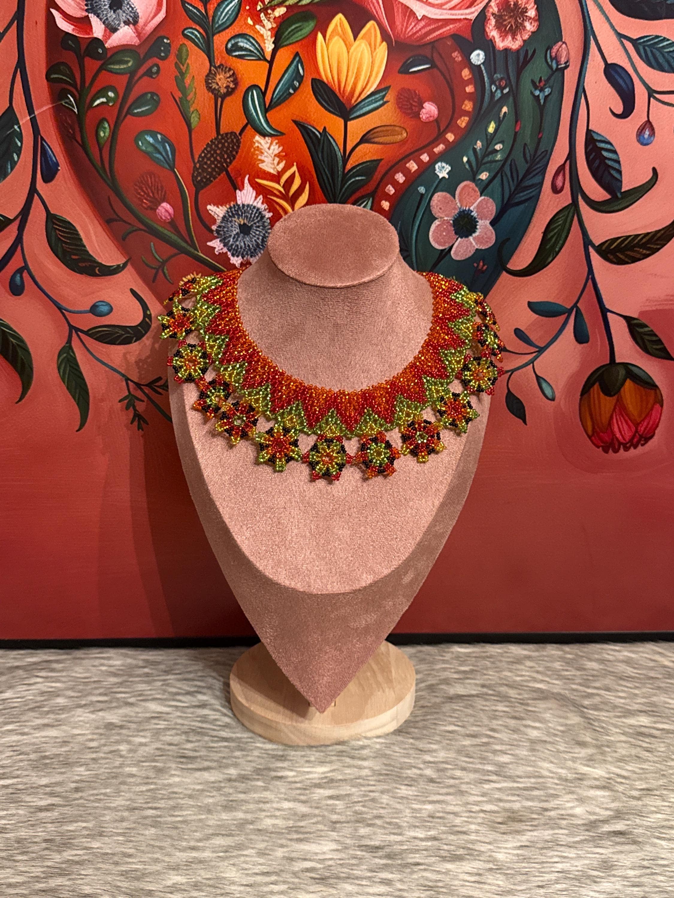 Beautiful bib-style necklace set with earrings and a bracelet, handmade by Mexican artisans.