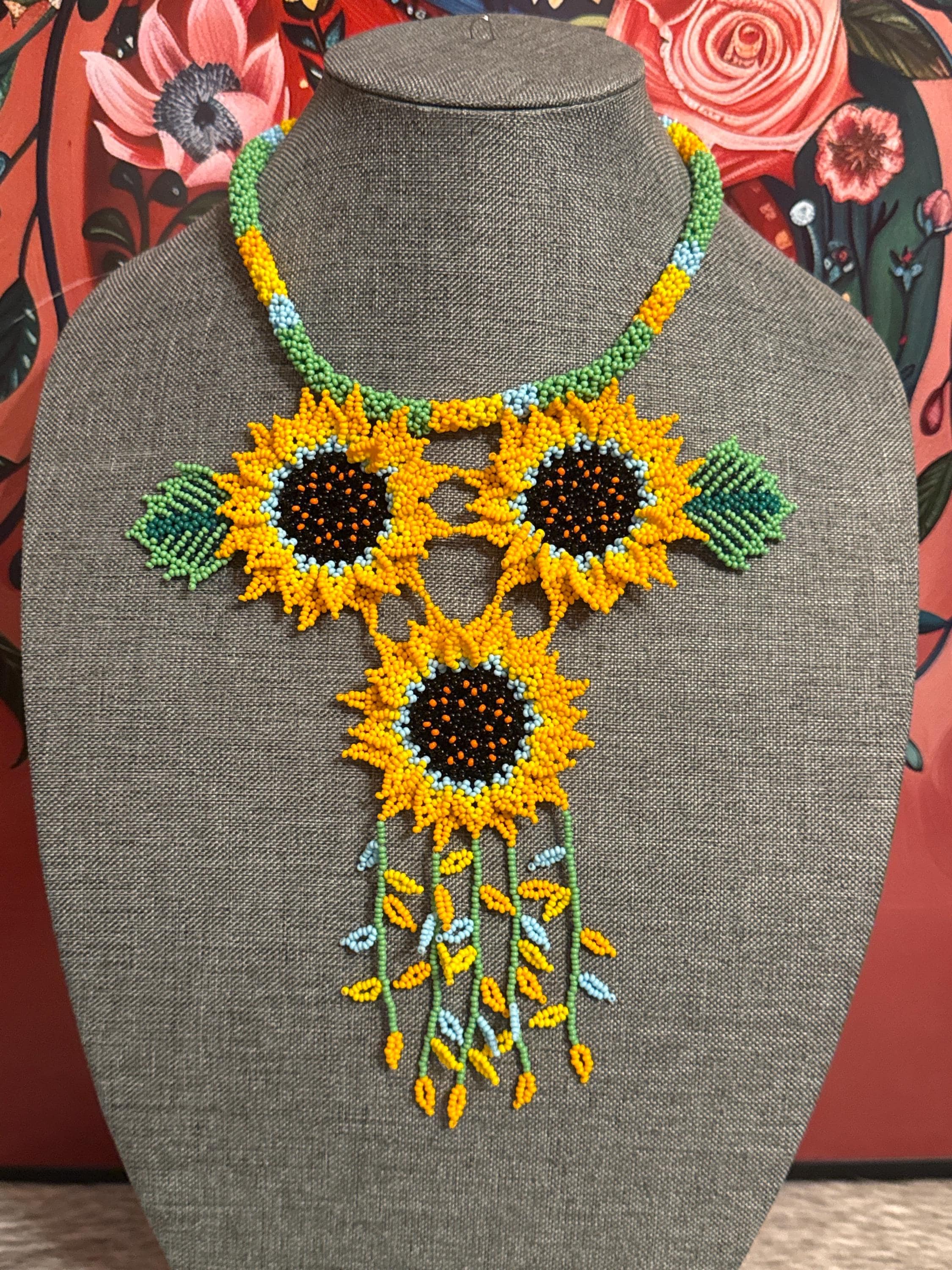 Beautiful set of 3 sunflower necklace with earrings and bracelet, handmade by Mexican artisans.