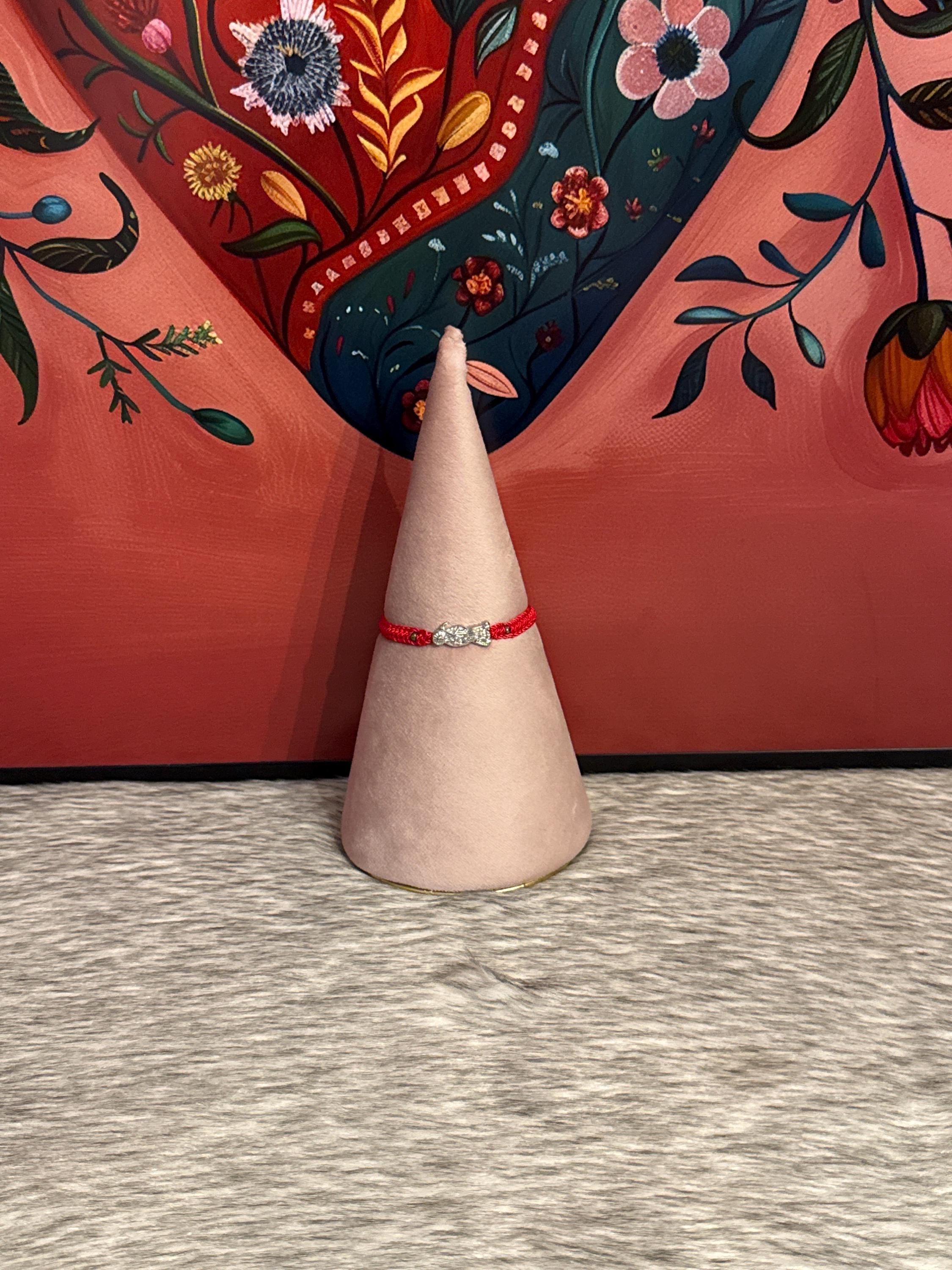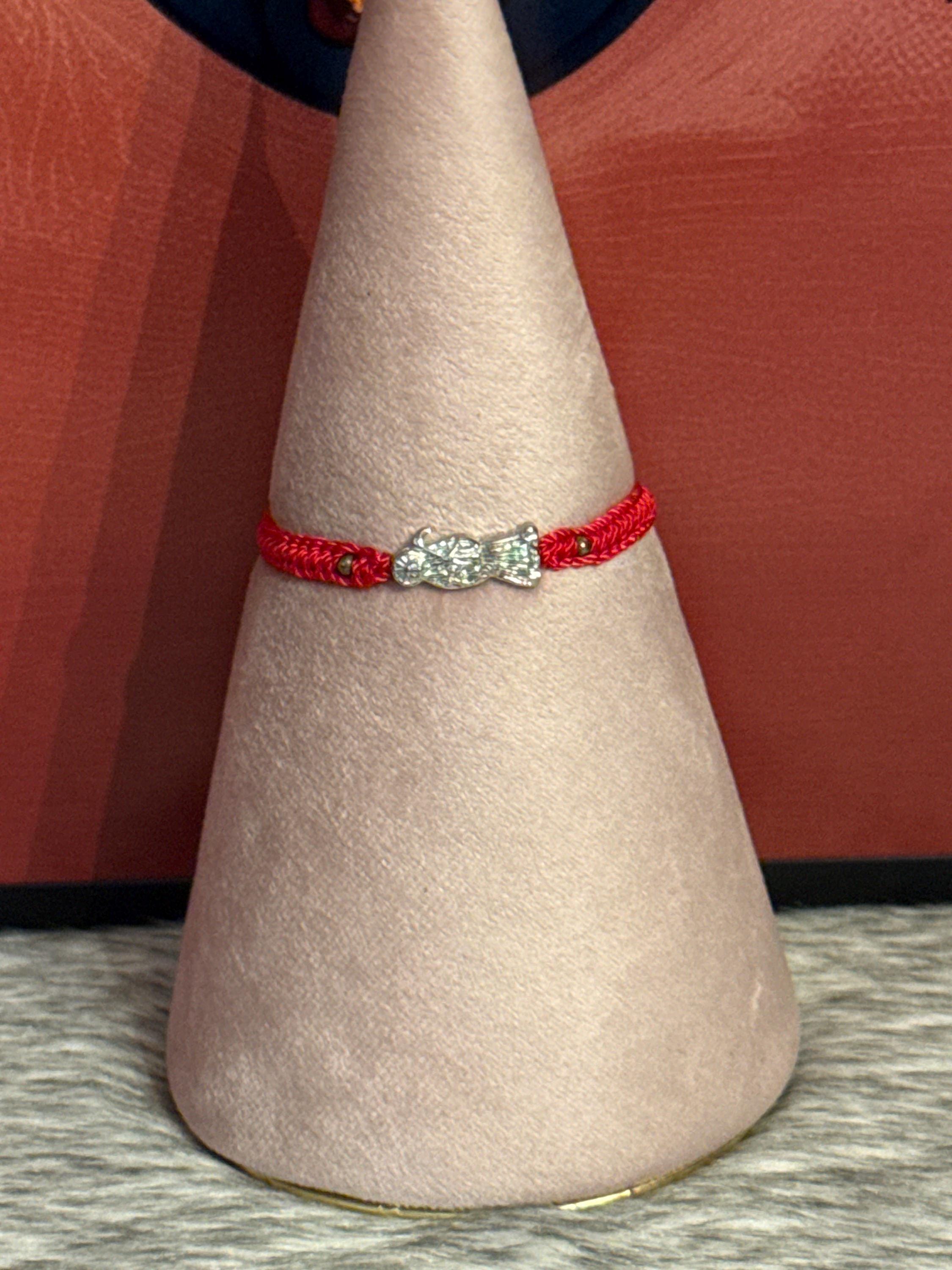 Santa Muerte bracelet in waxed red thread.