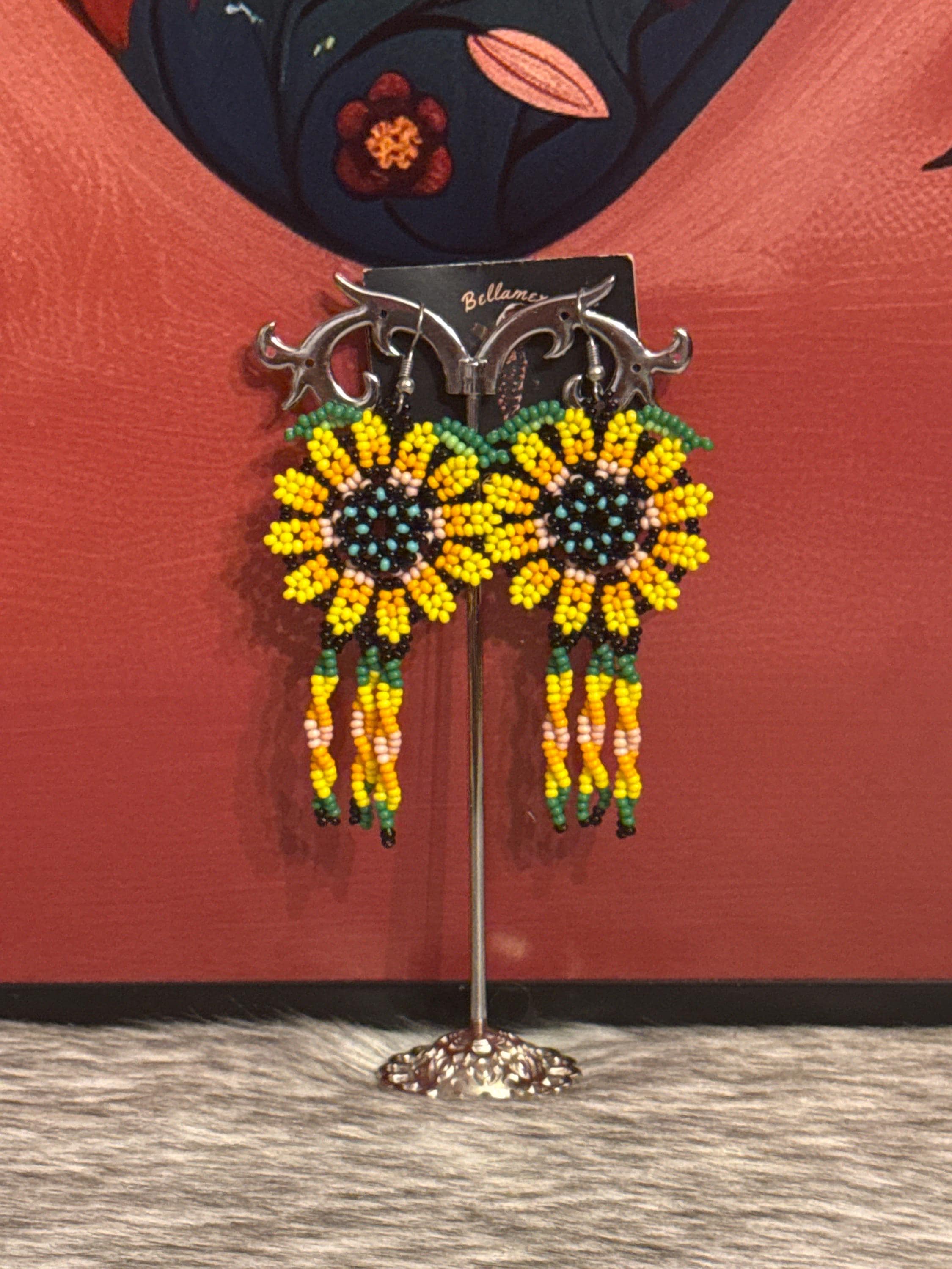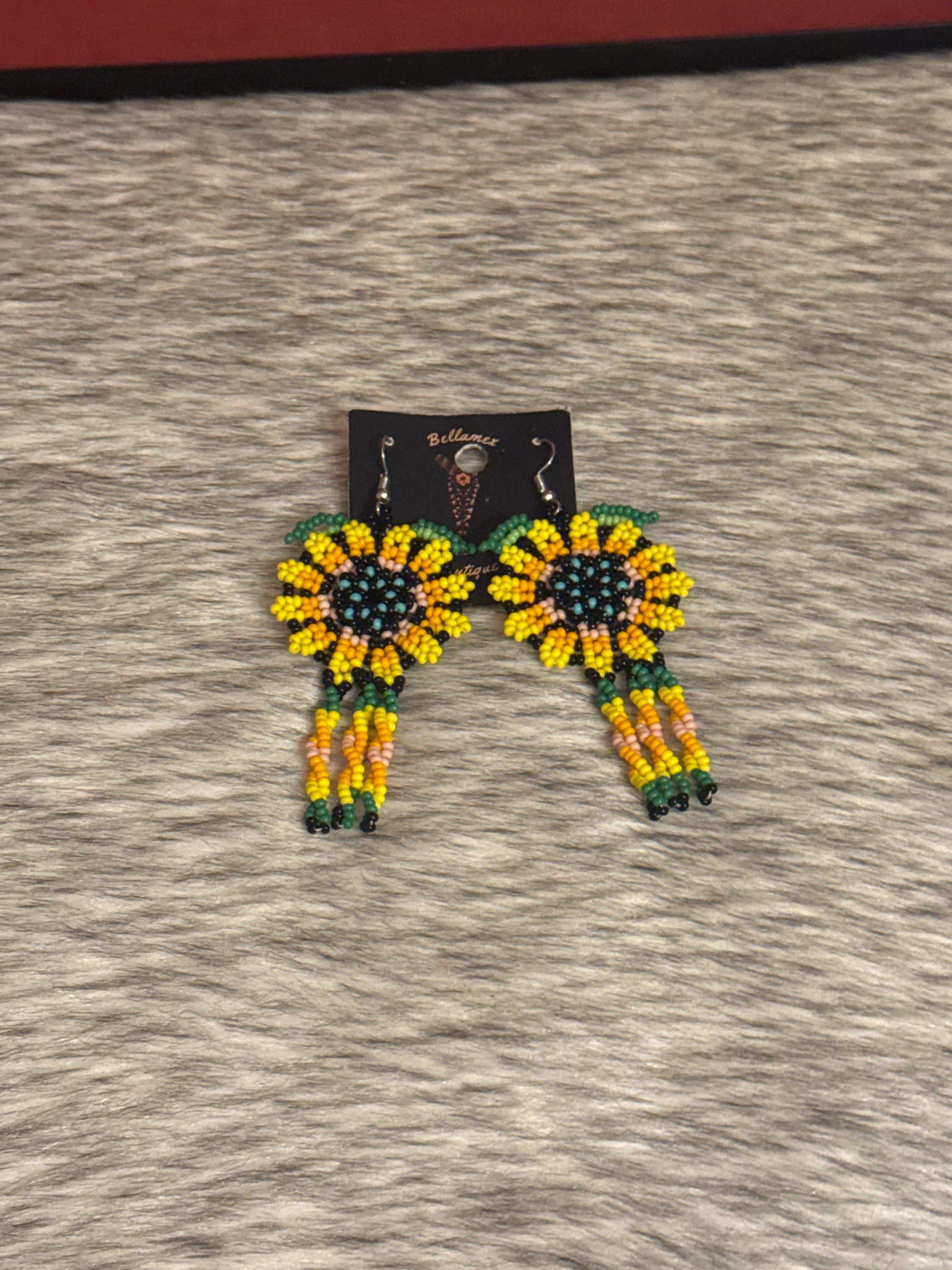 Handmade earrings crafted by Mexican artisans.