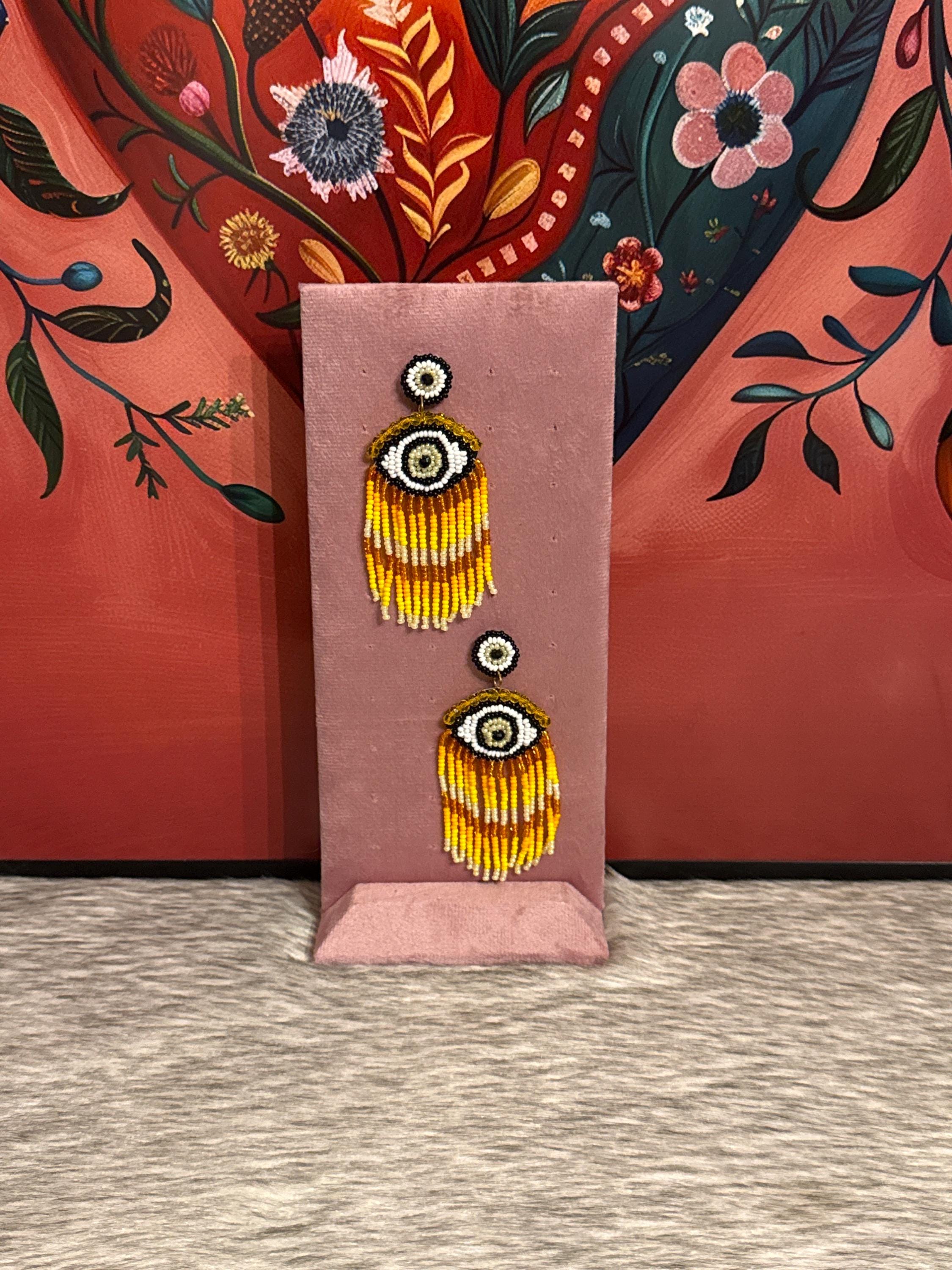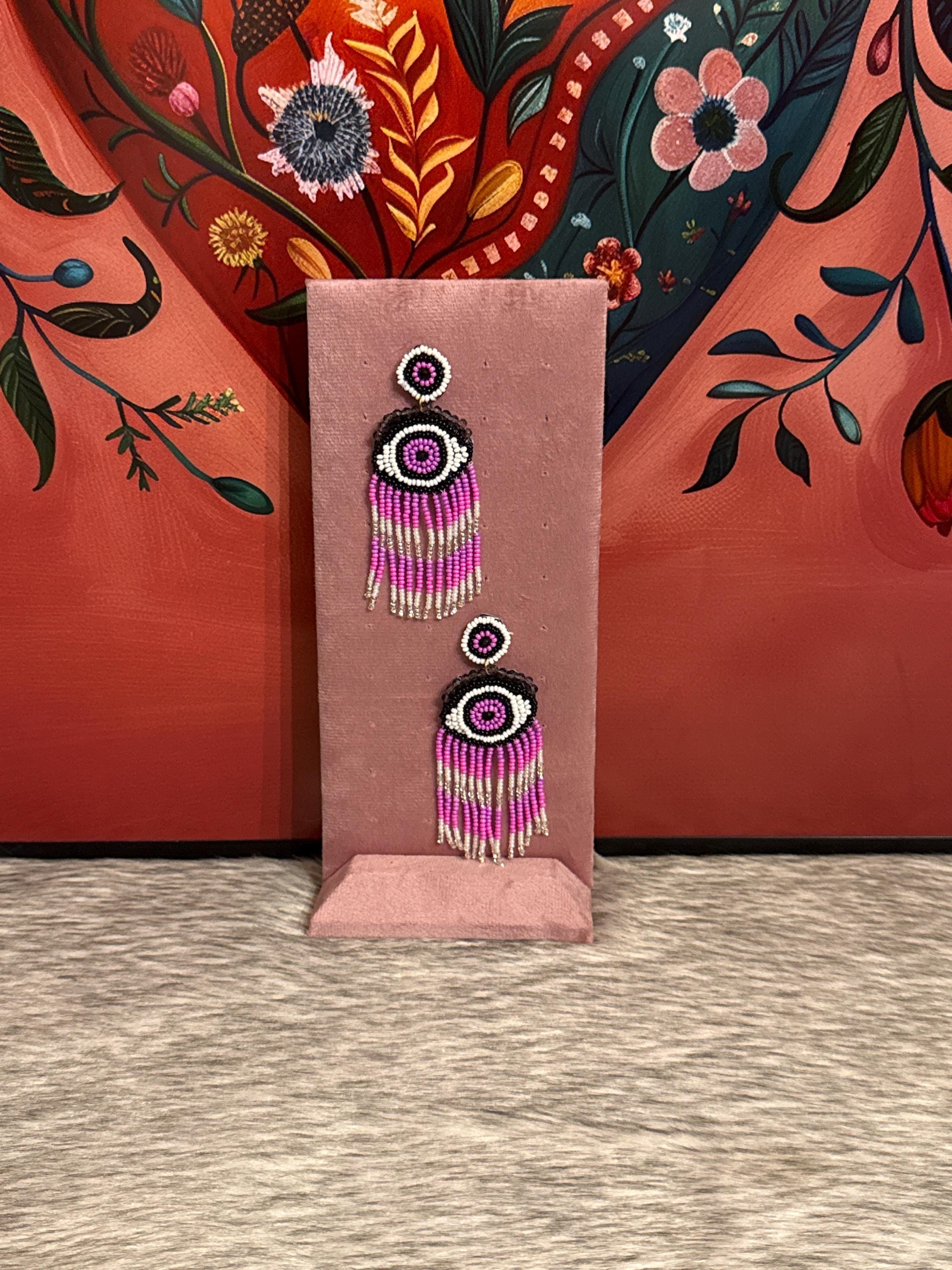Beautiful long protective eye earrings handmade by Mexican artisans.