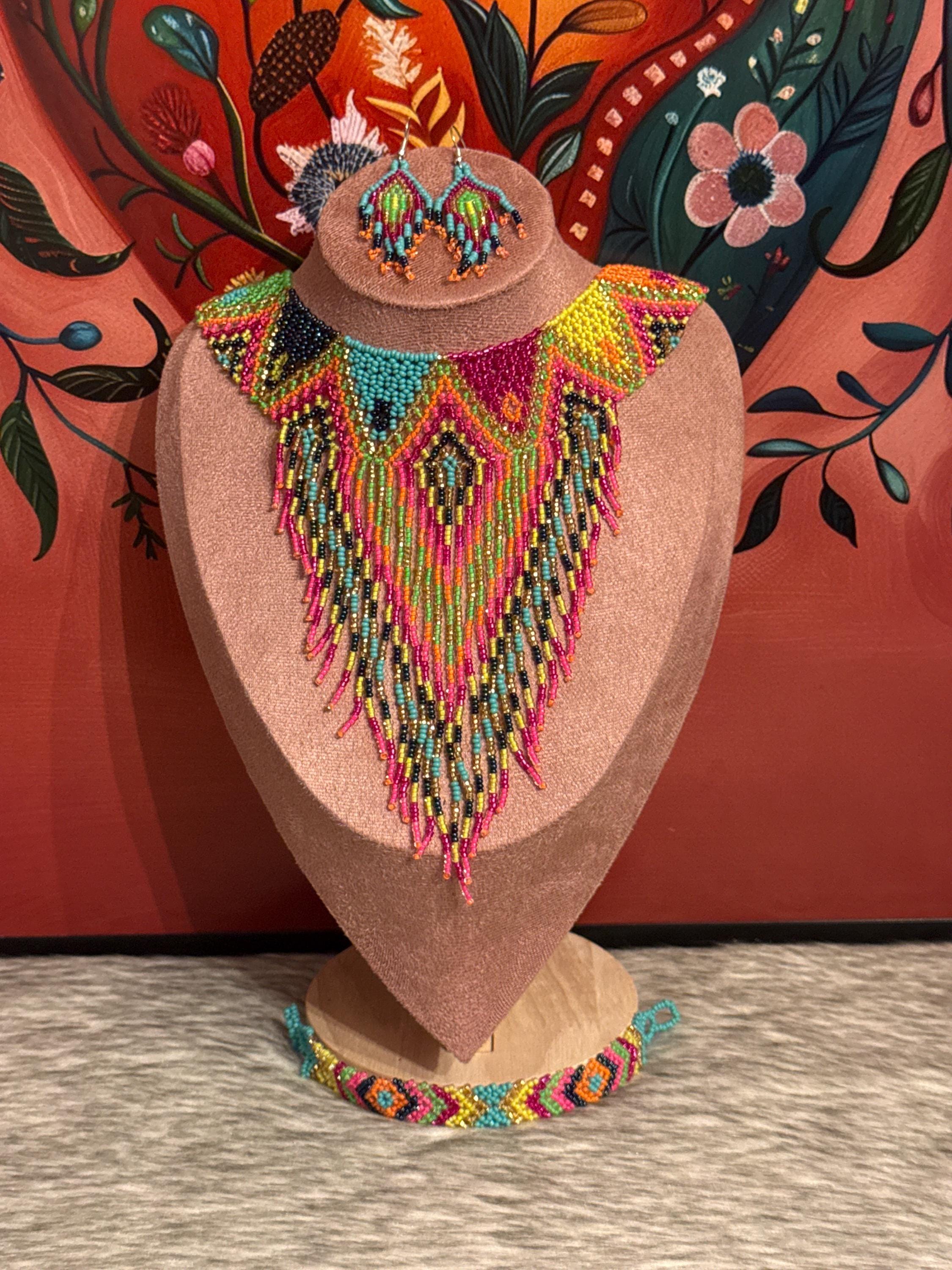 Beautiful Zapotec necklace, earrings and bracelet set, handmade by Mexican artisans.