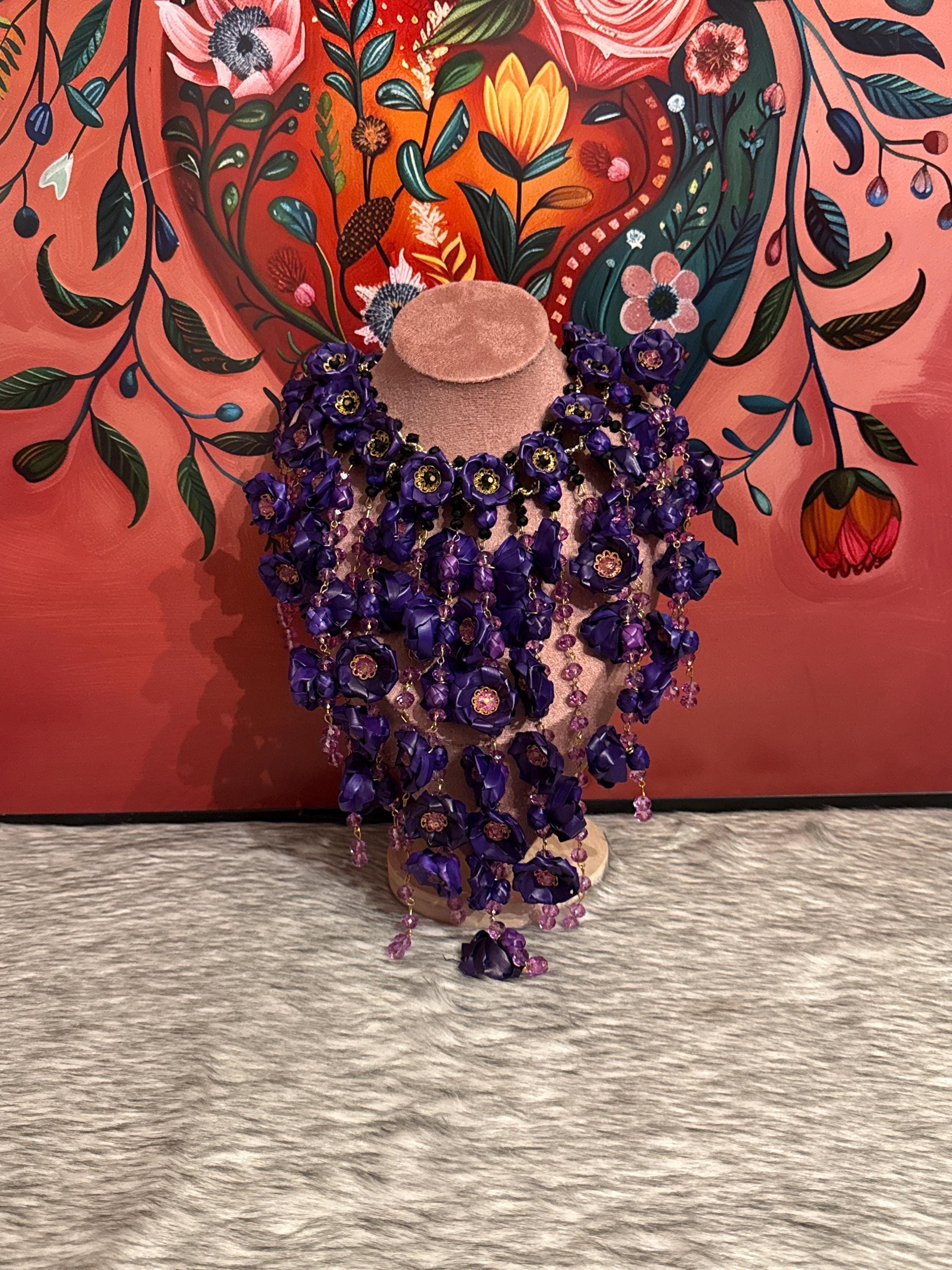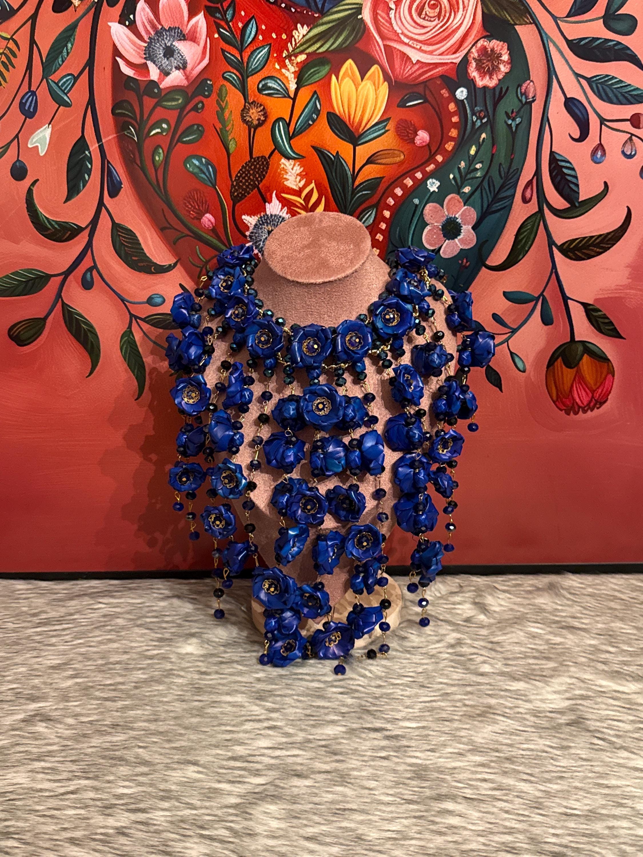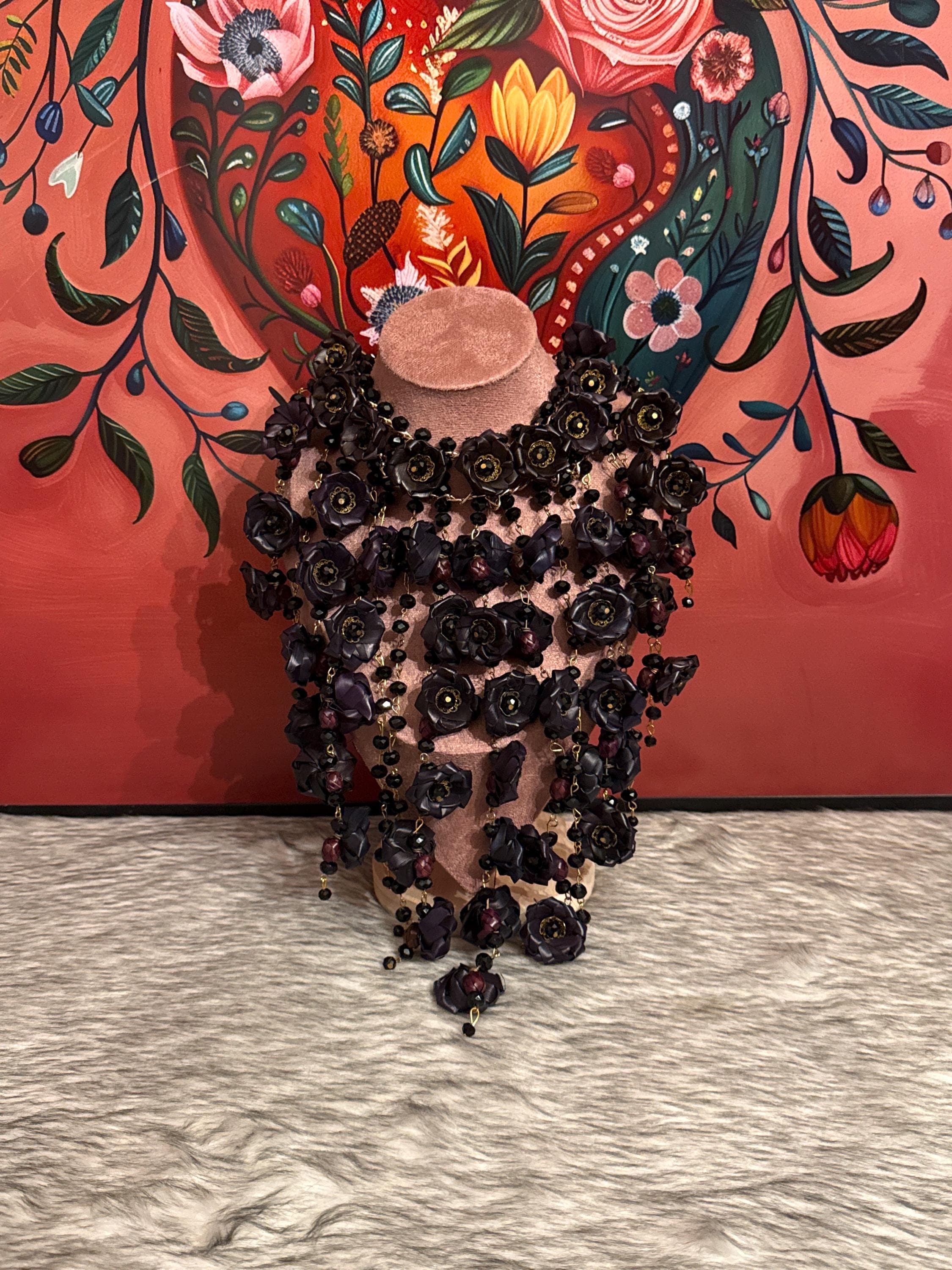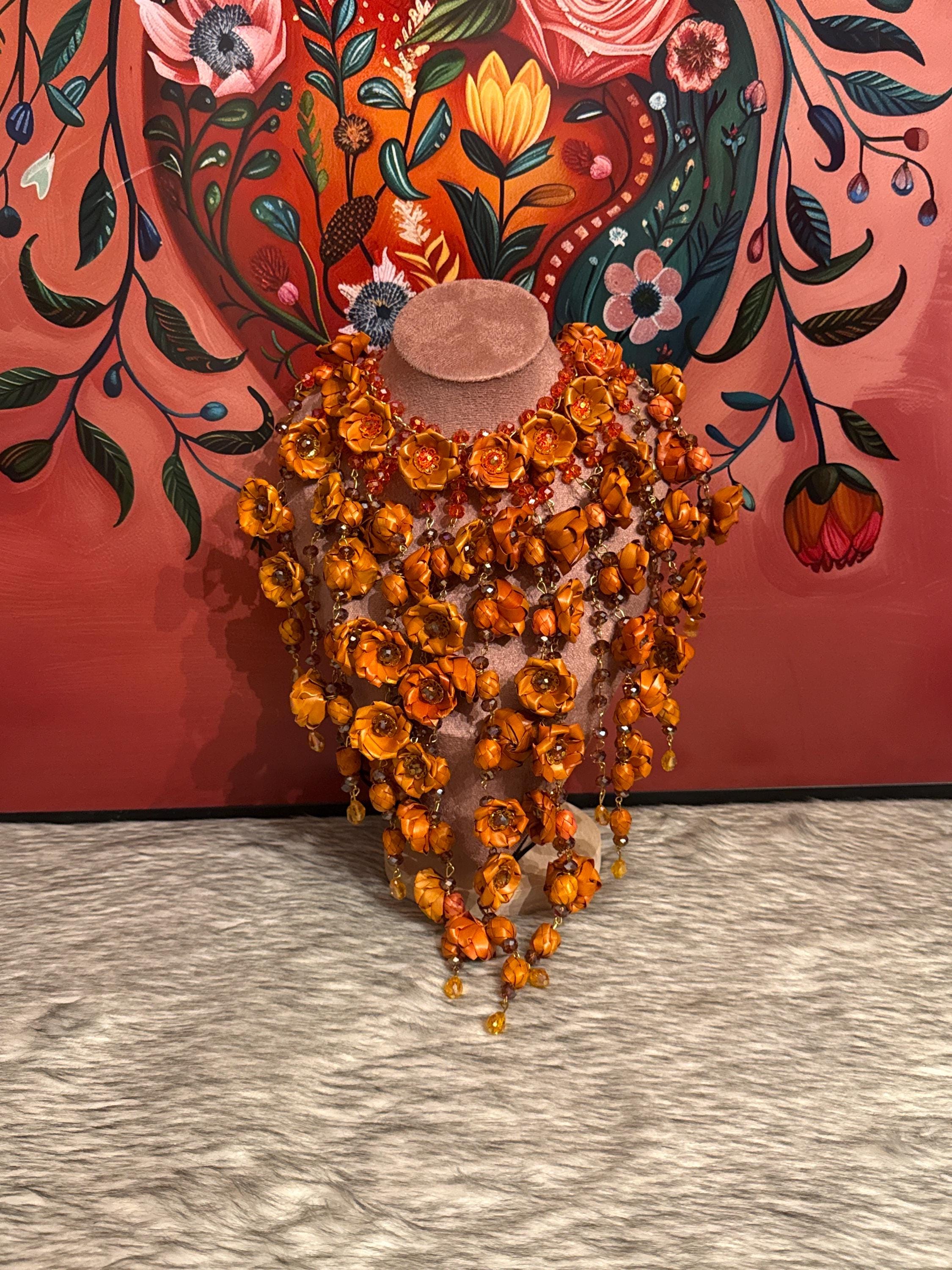 Beautiful set of necklace and earrings handmade with palm leaves and Czech crystals.