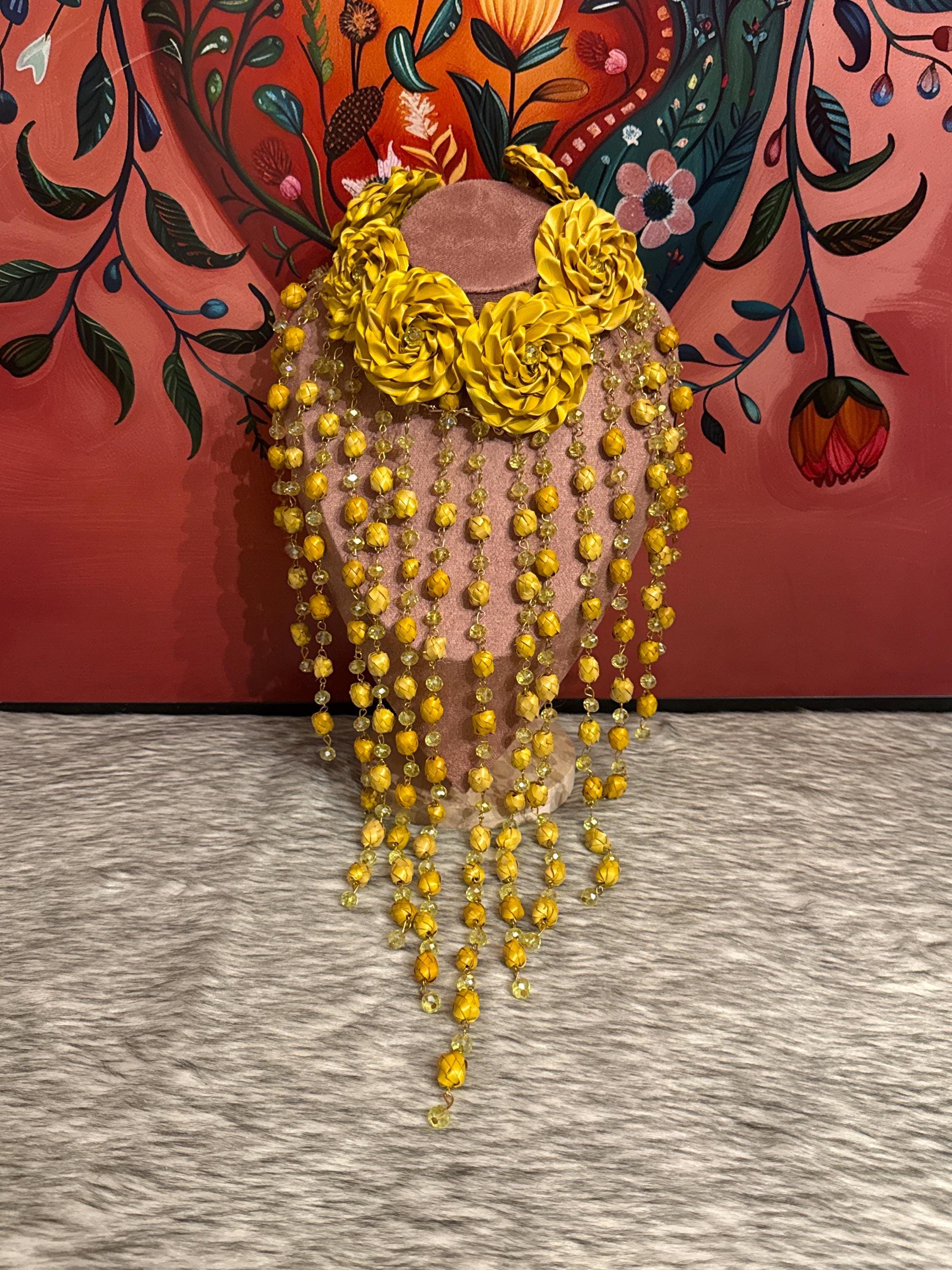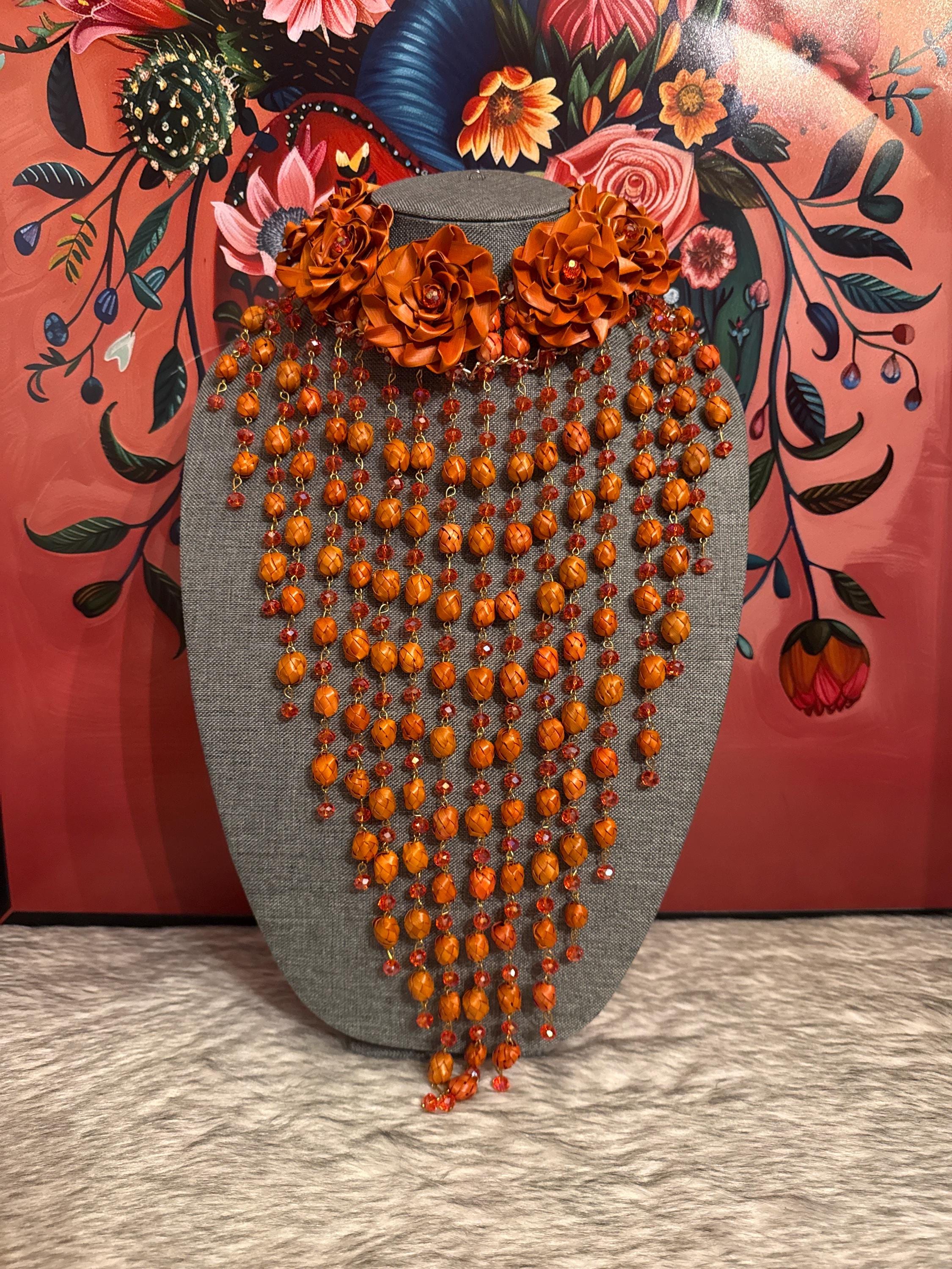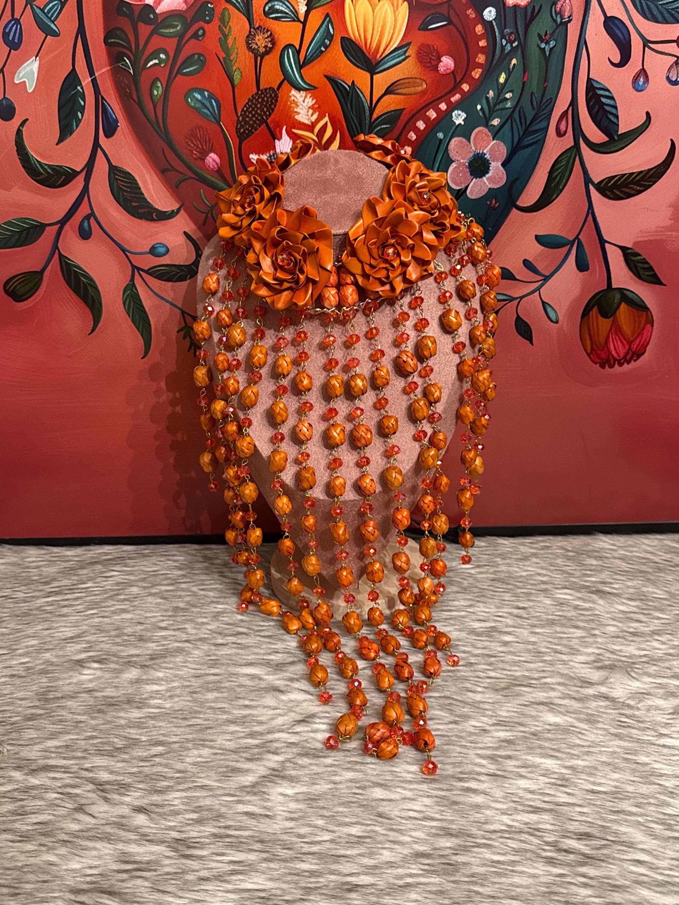 Beautiful set of necklace and earrings handmade with palm leaves and Czech crystals.