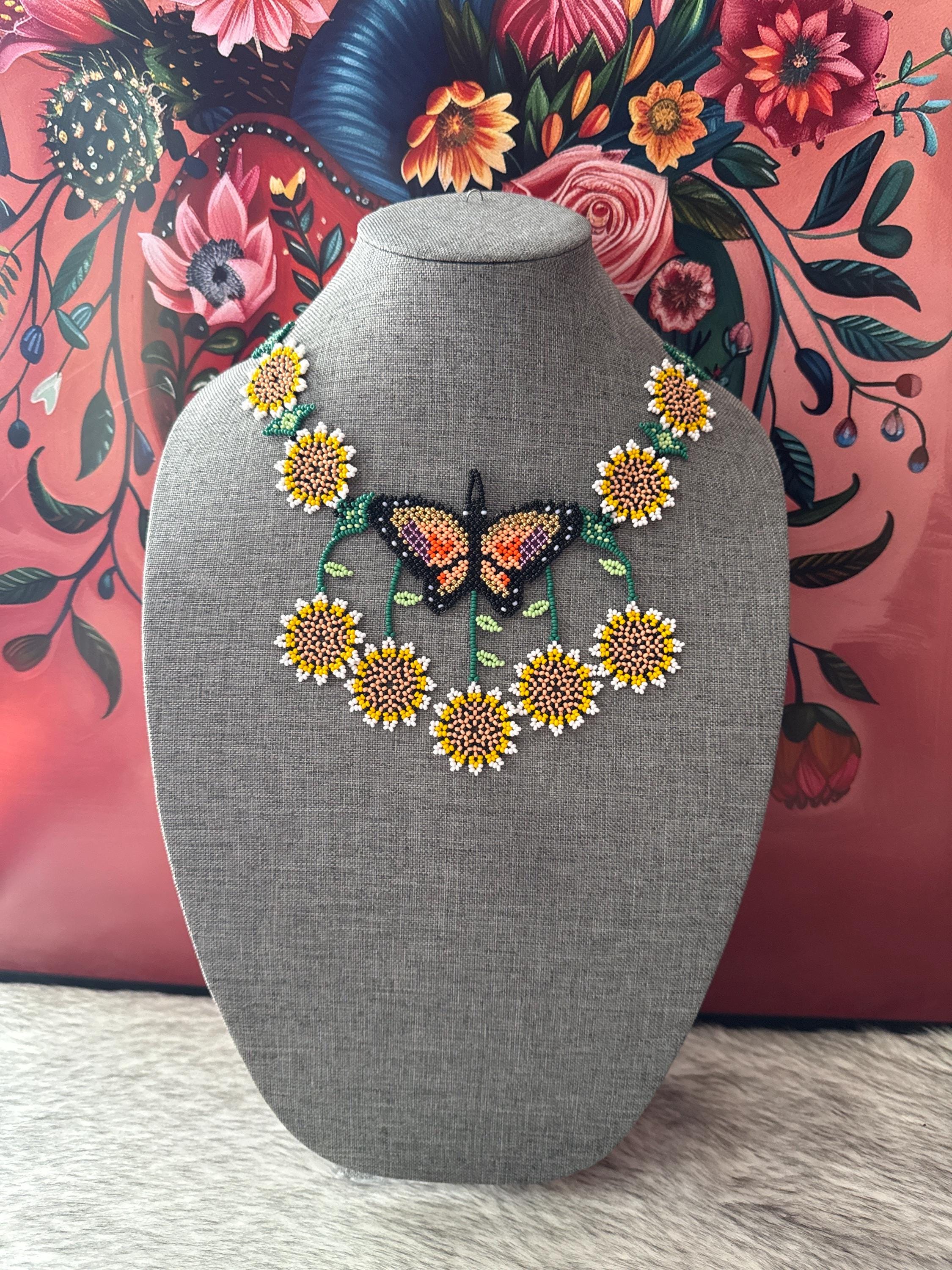 Beautiful handmade jewelry set with glass beads called chaquiras, handmade by Mexican artisans.