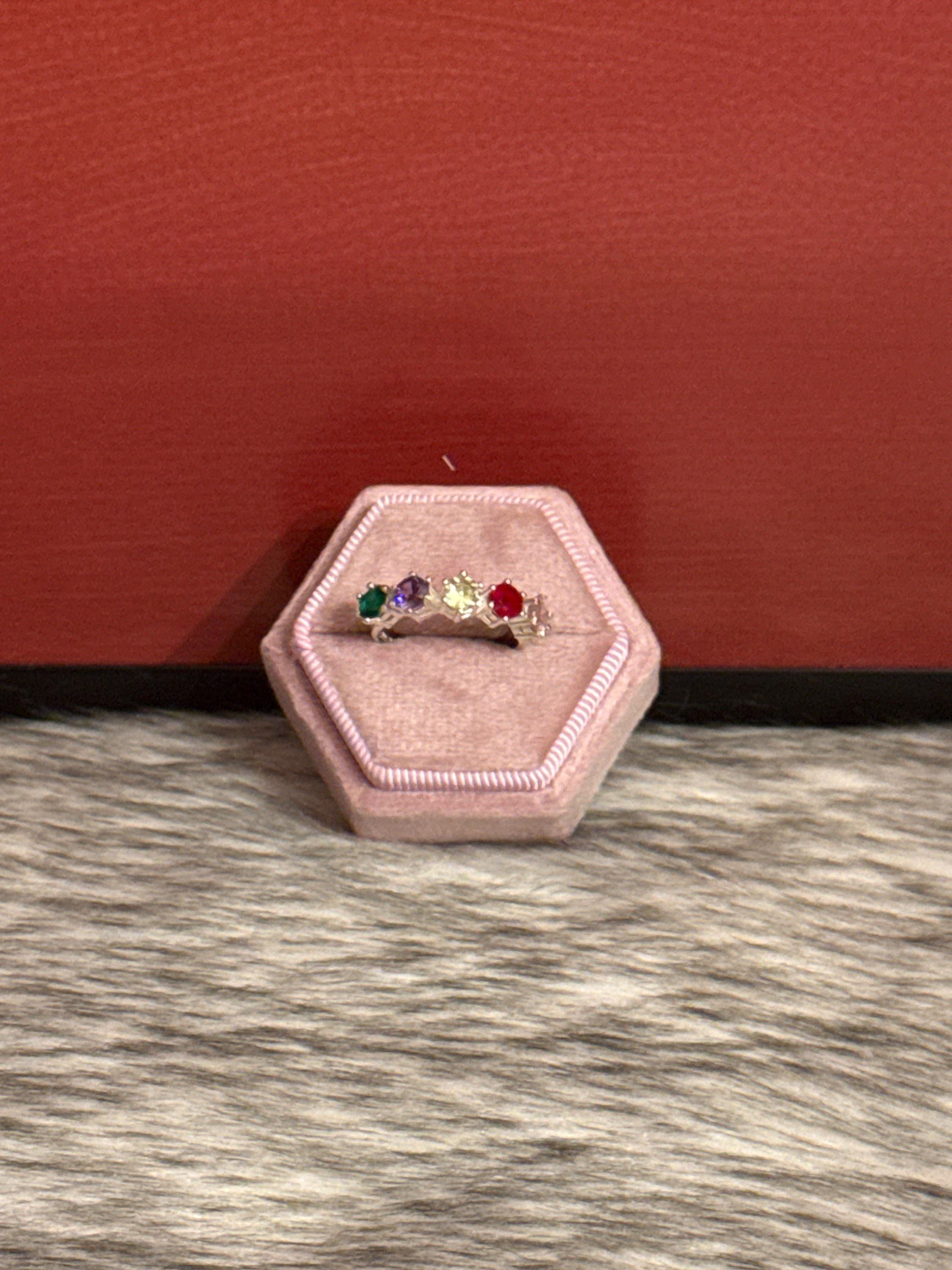 Beautiful silver ring with 5 multicolored cubic zirconia stones, the ring is made of 925 sterling silver and is size 7.