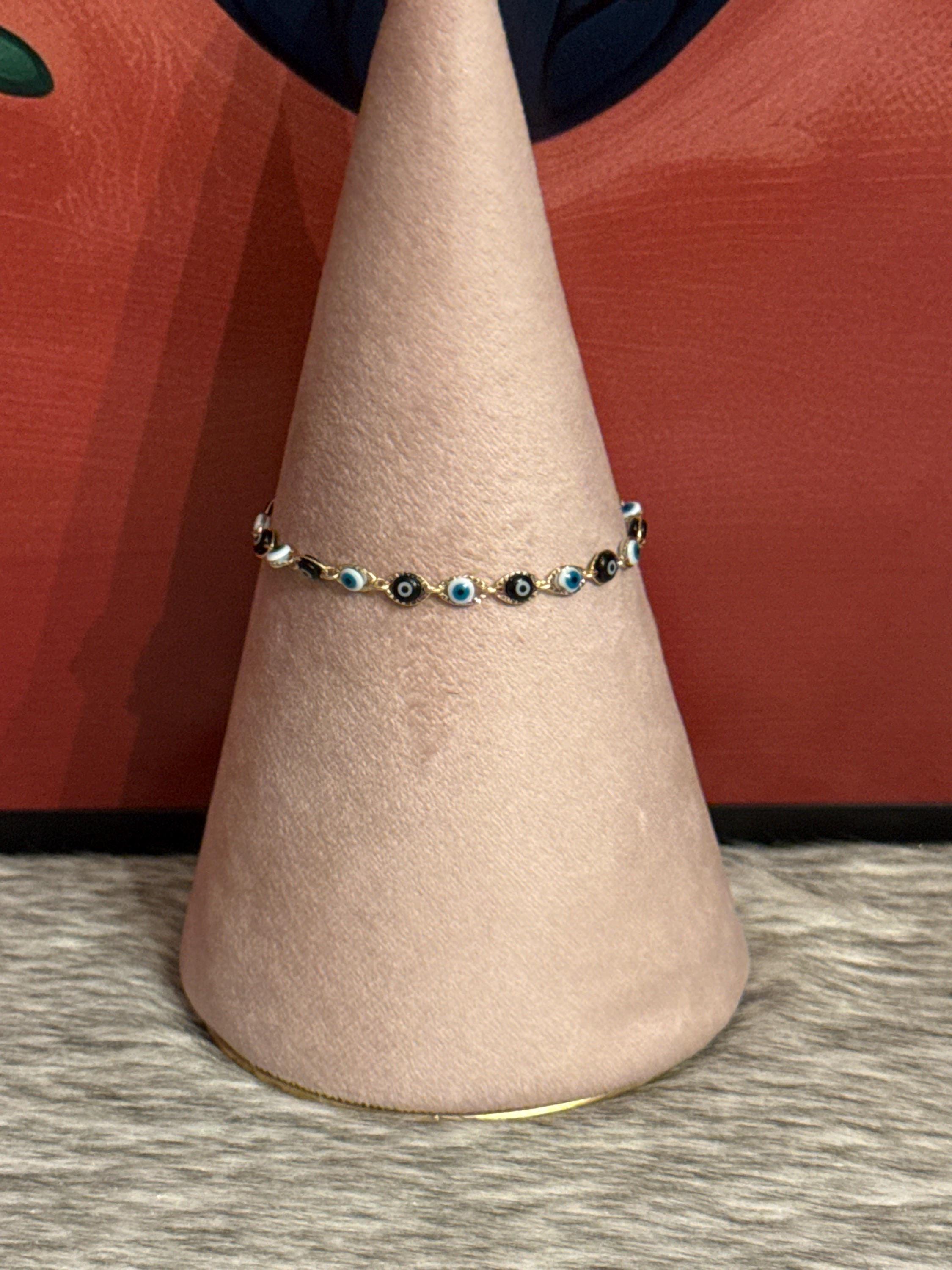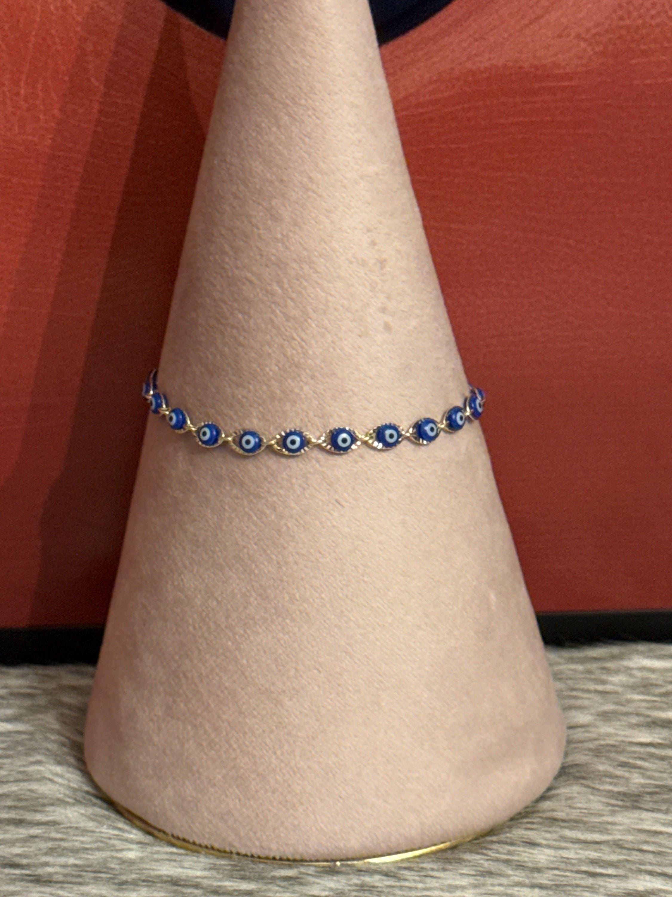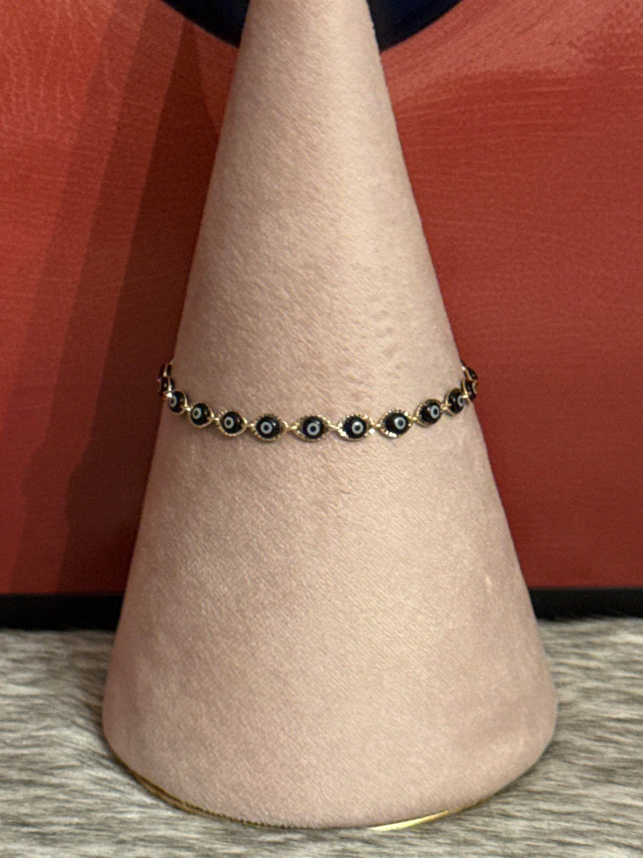 Beautiful eye bracelets made of high-quality 18k gold plated metal. The bracelets are 8 inches long and adjustable.