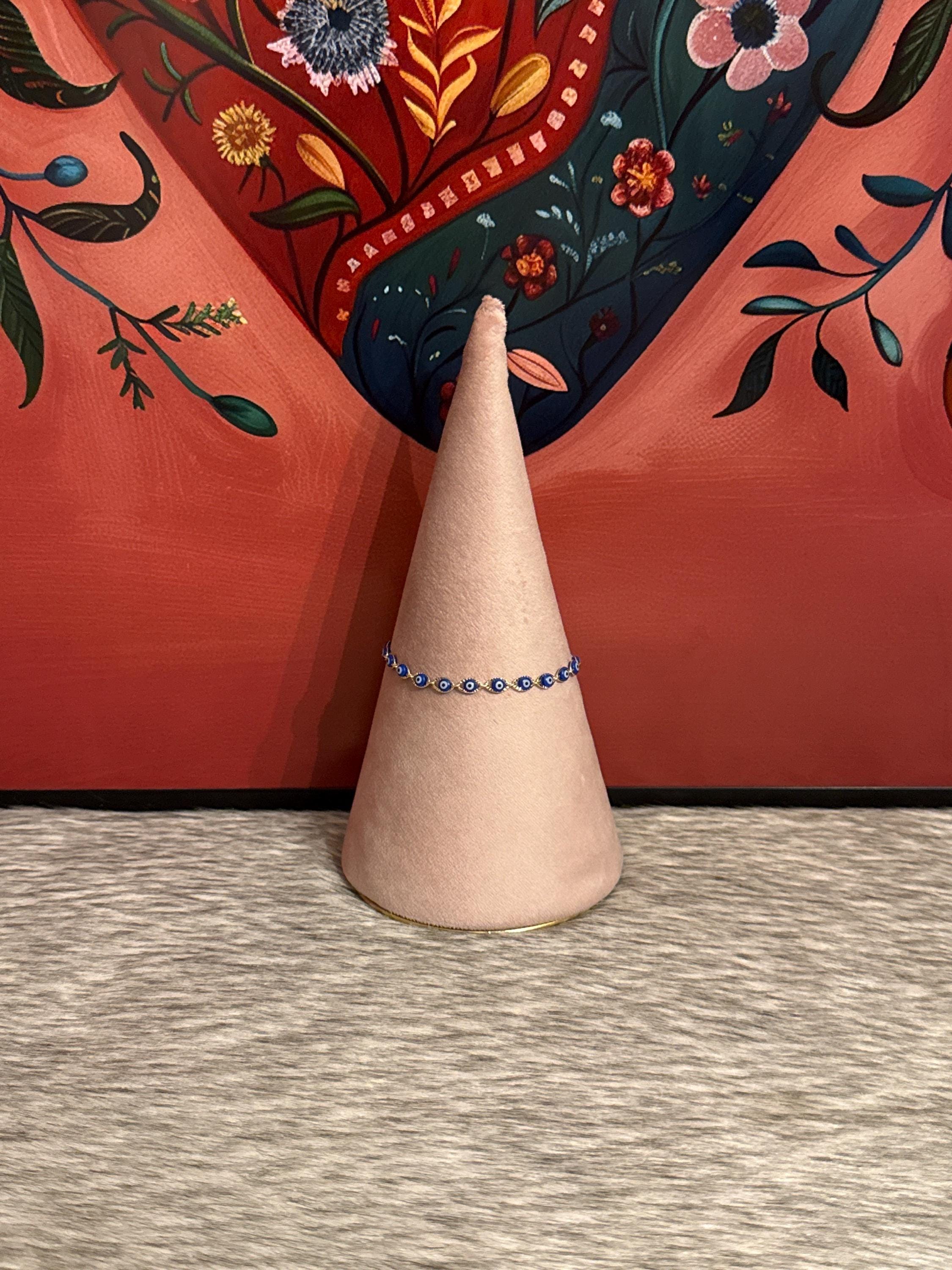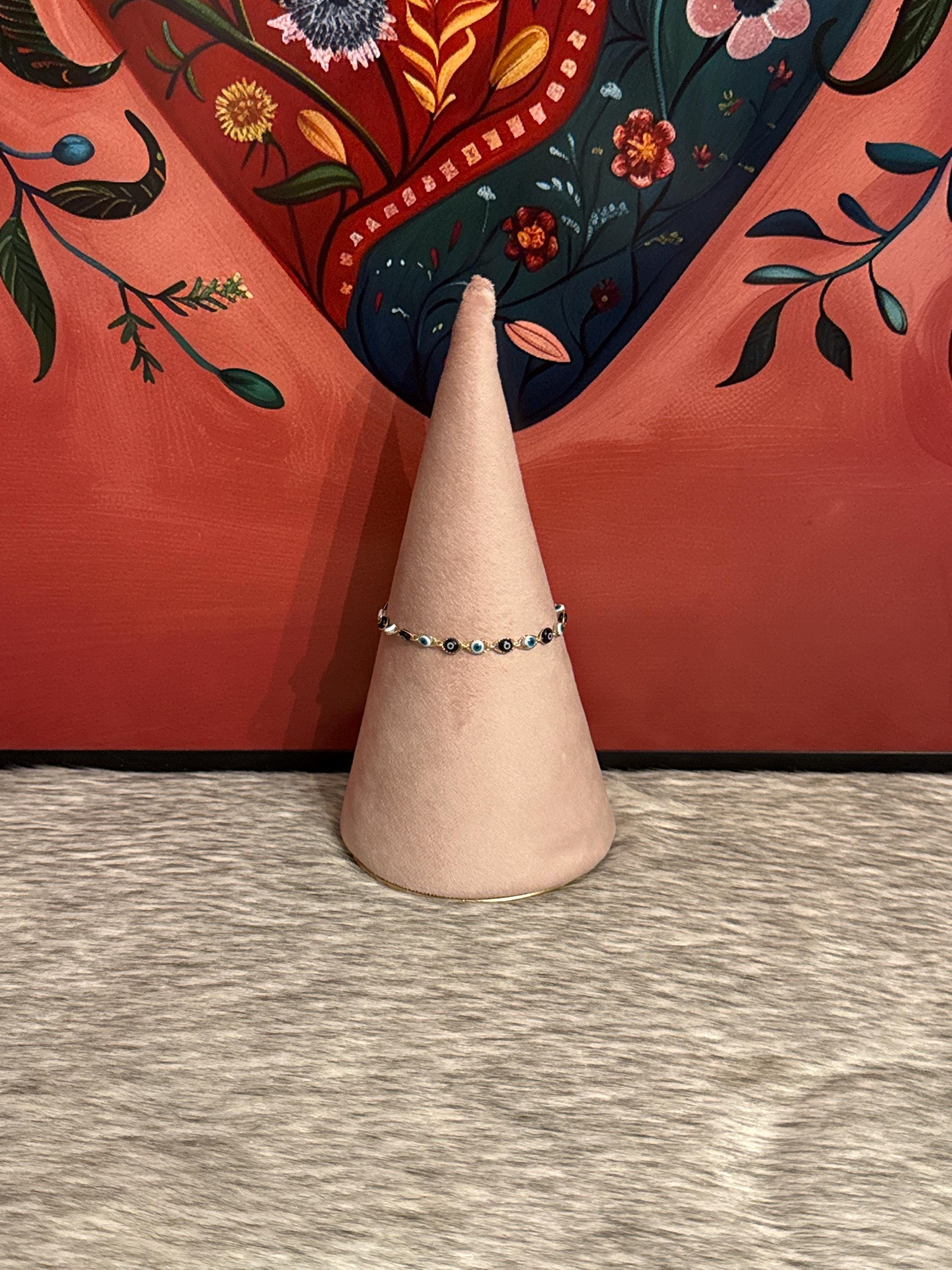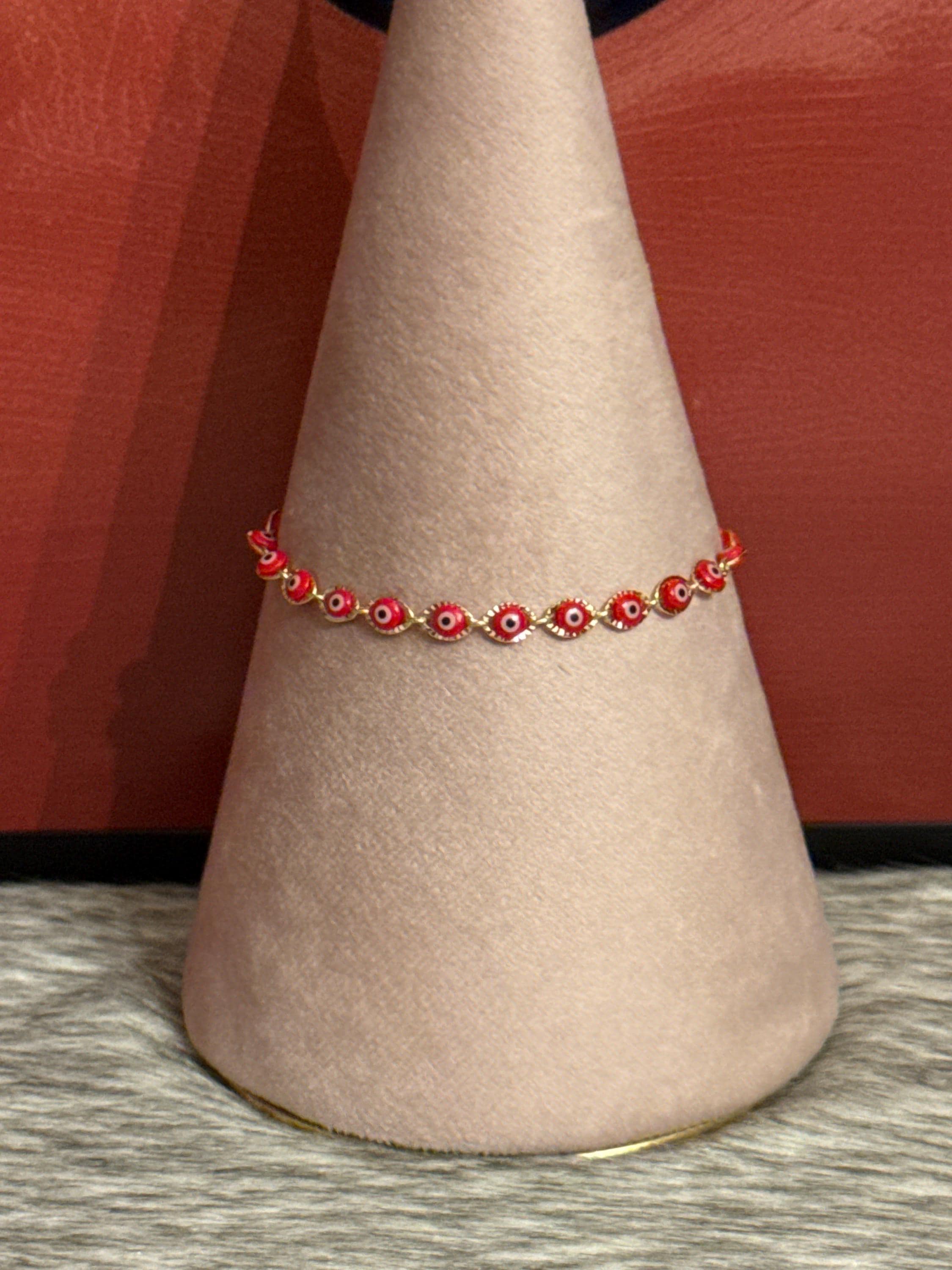 Beautiful eye bracelets made of high-quality 18k gold plated metal. The bracelets are 8 inches long and adjustable.