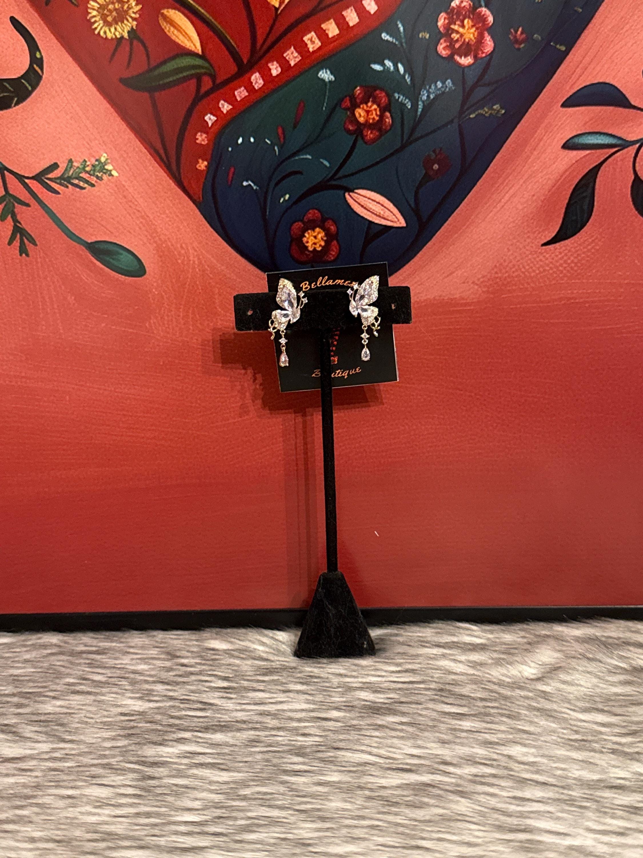 Beautiful crystal butterfly earrings made of high-quality gold-plated steel with cubic zirconia inlays. Made of high-quality 18k gold-plated steel.