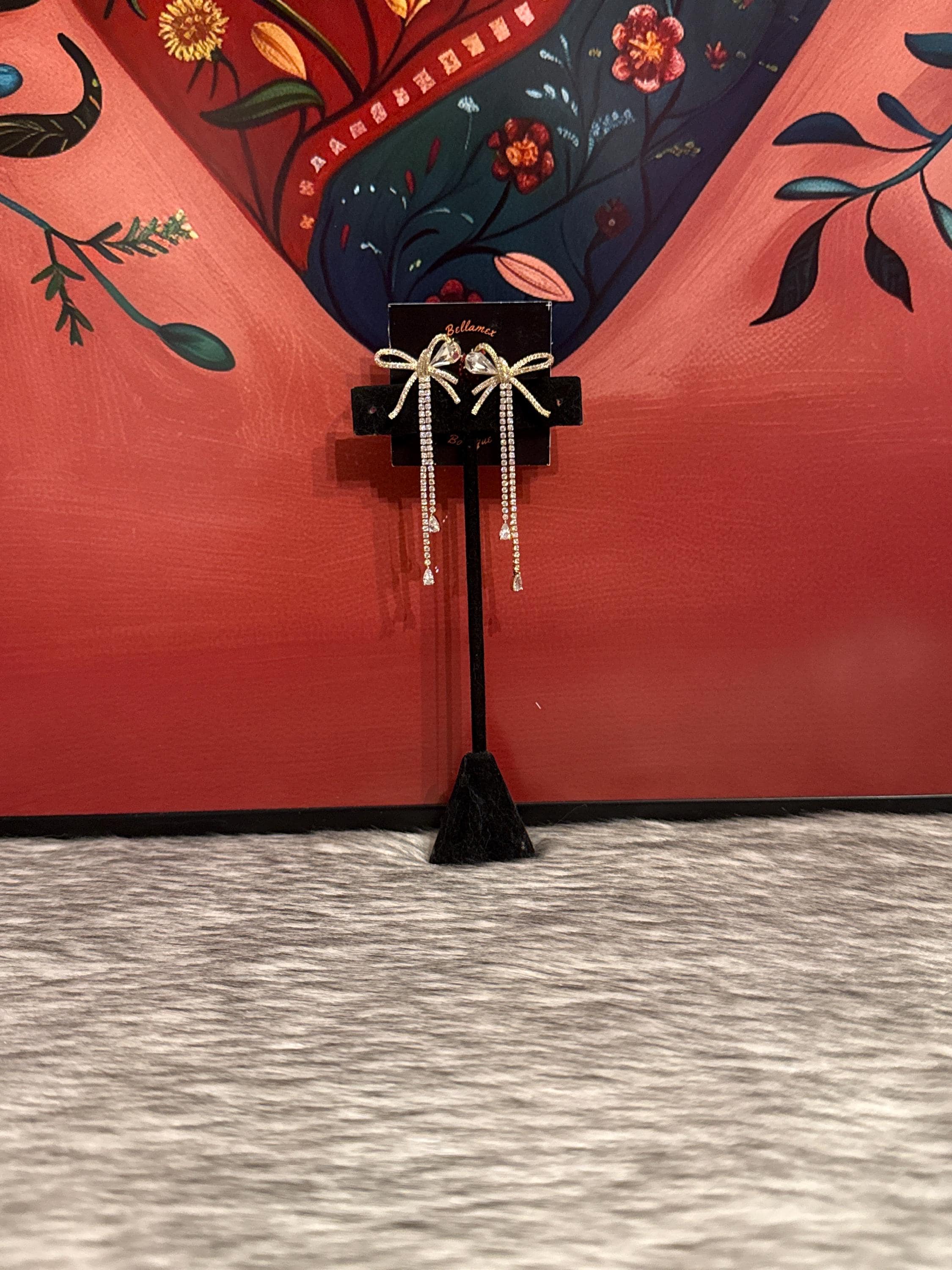 Beautiful crystal bow earrings made of high-quality gold-plated steel with cubic zirconia inlays. Made of high-quality 18k gold-plated steel.