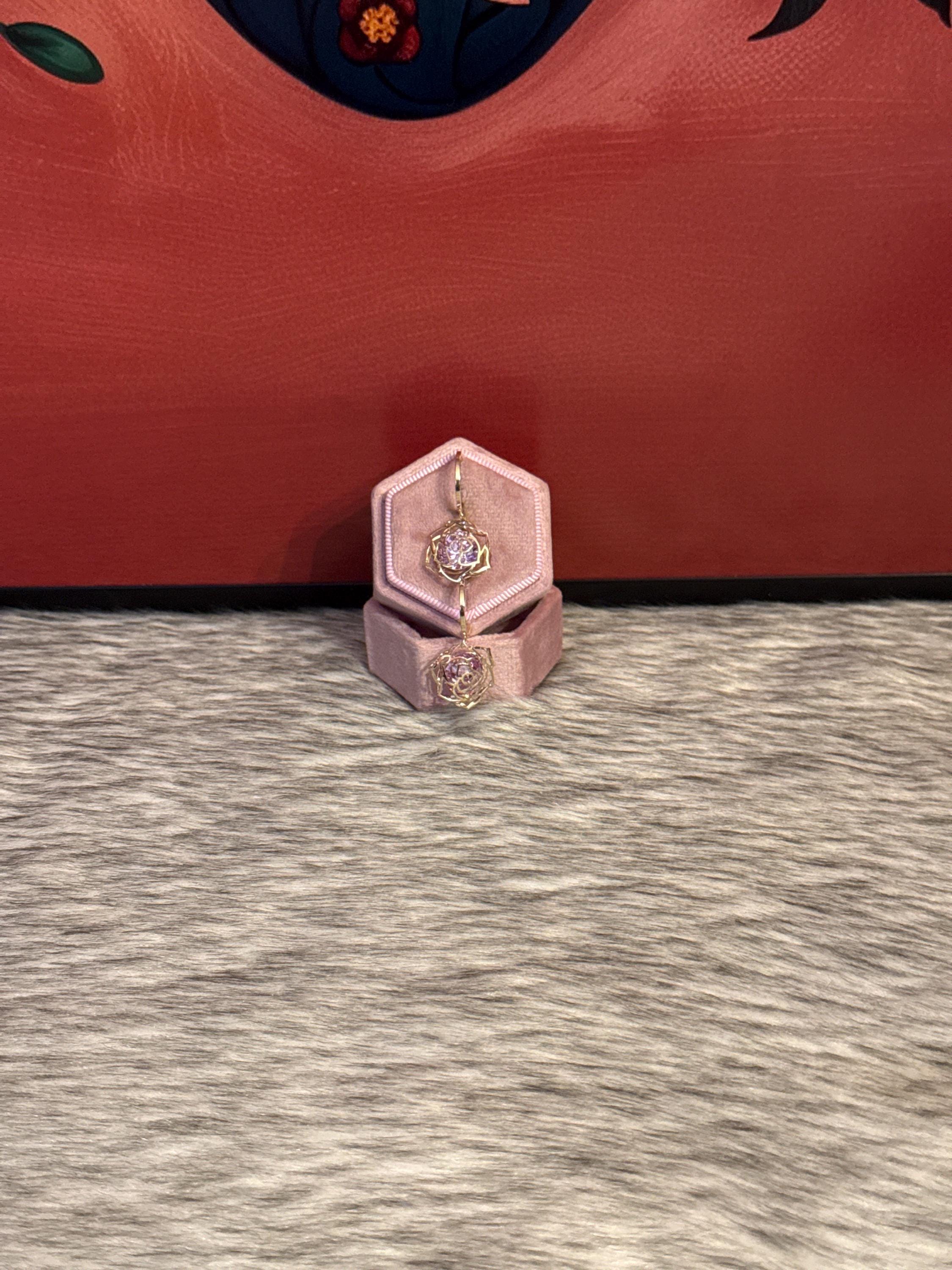 Beautiful flower earrings with zirconia, made in high quality 18k gold plated.