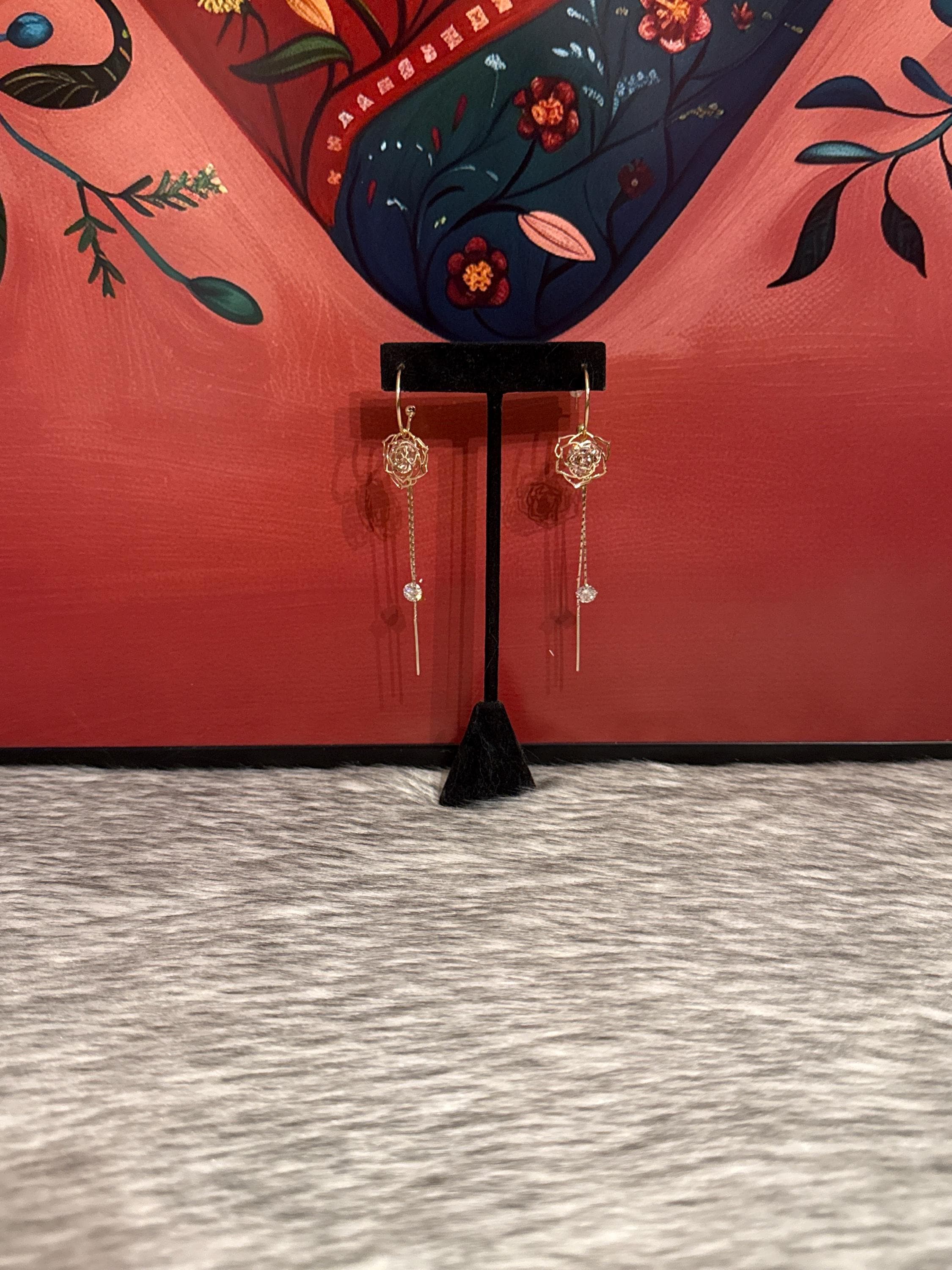 Beautiful long flower earrings with zirconia, made in high quality 18k gold plated.