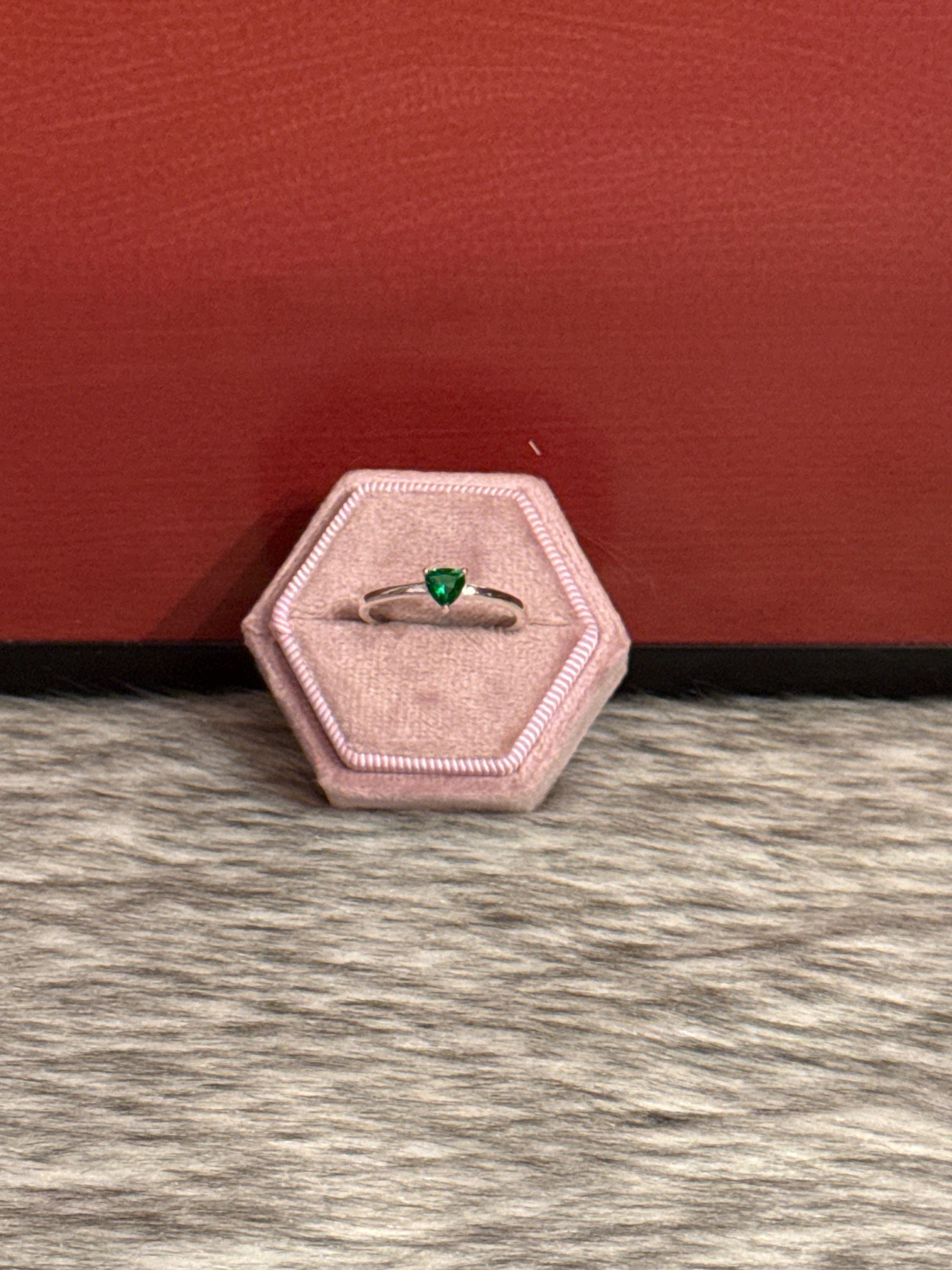 Beautiful solitaire ring made of 925 sterling silver and emerald green zirconia stone.