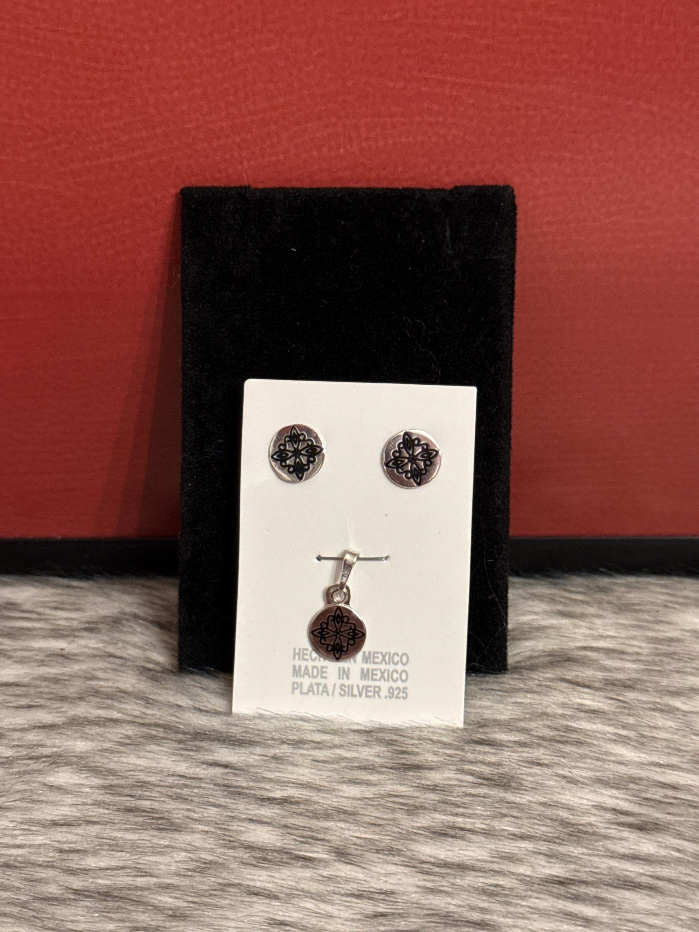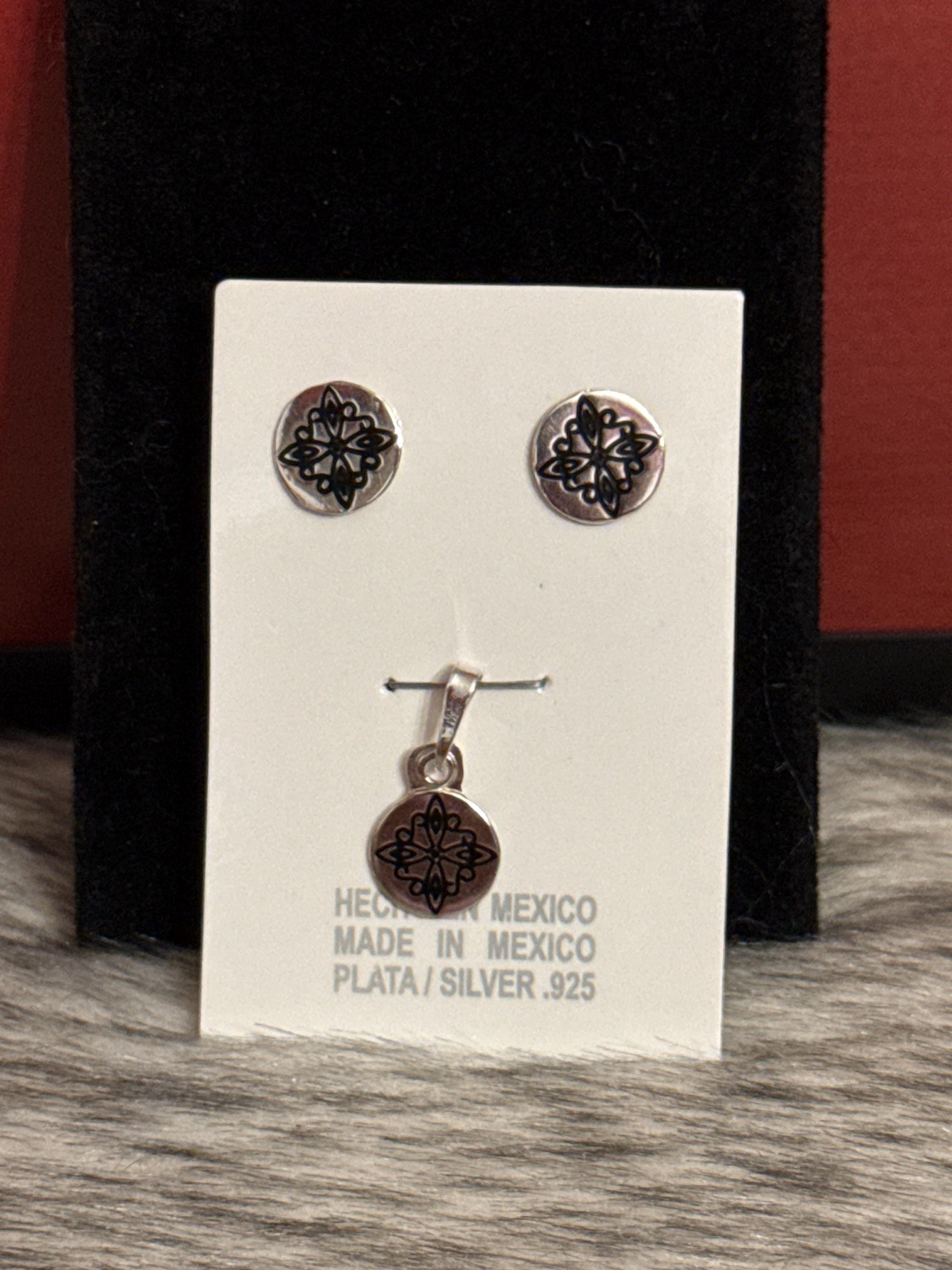 Beautiful set of earrings and pendant Witch's Knot made of 925 sterling silver, made in Mexico, the earrings have butterfly clasps.