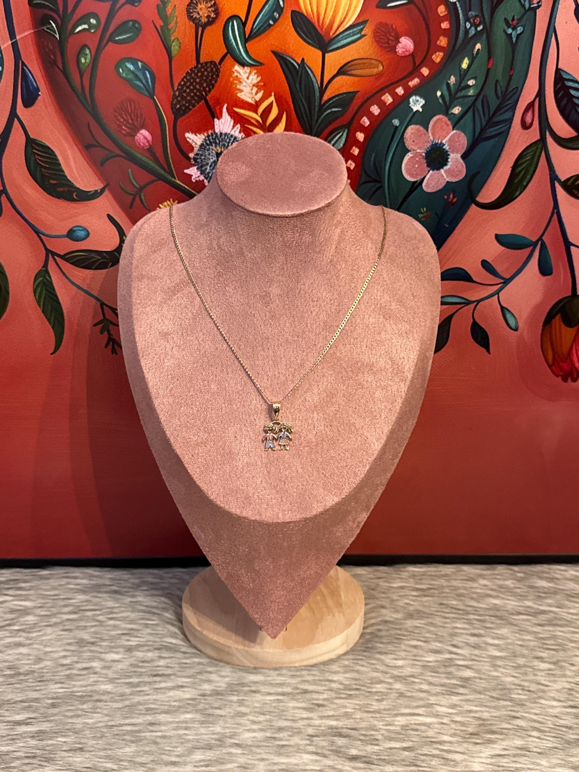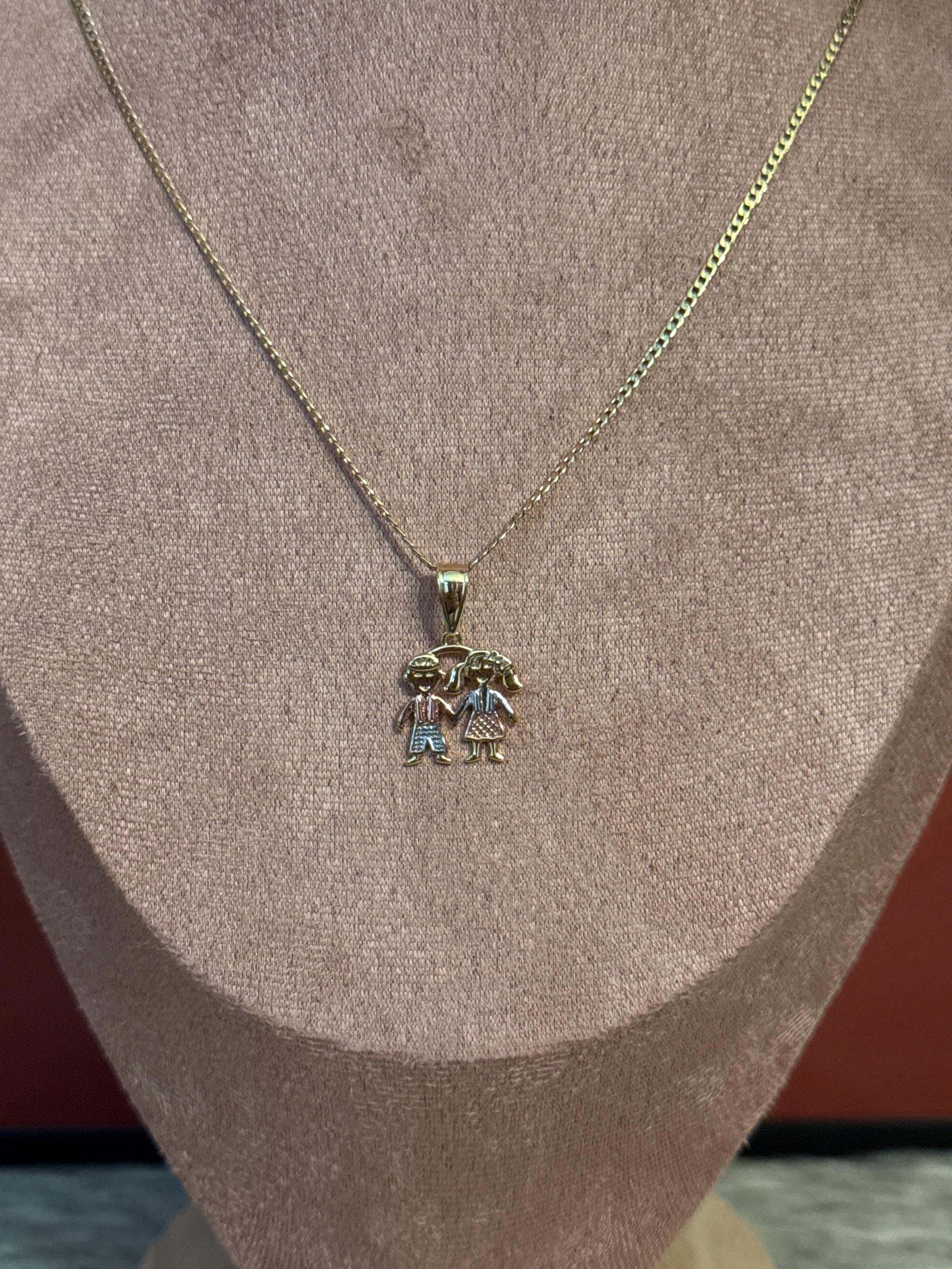Beautiful necklace with a girl and boy pendant in 18k gold plated, the chain measures approximately 16 inches long