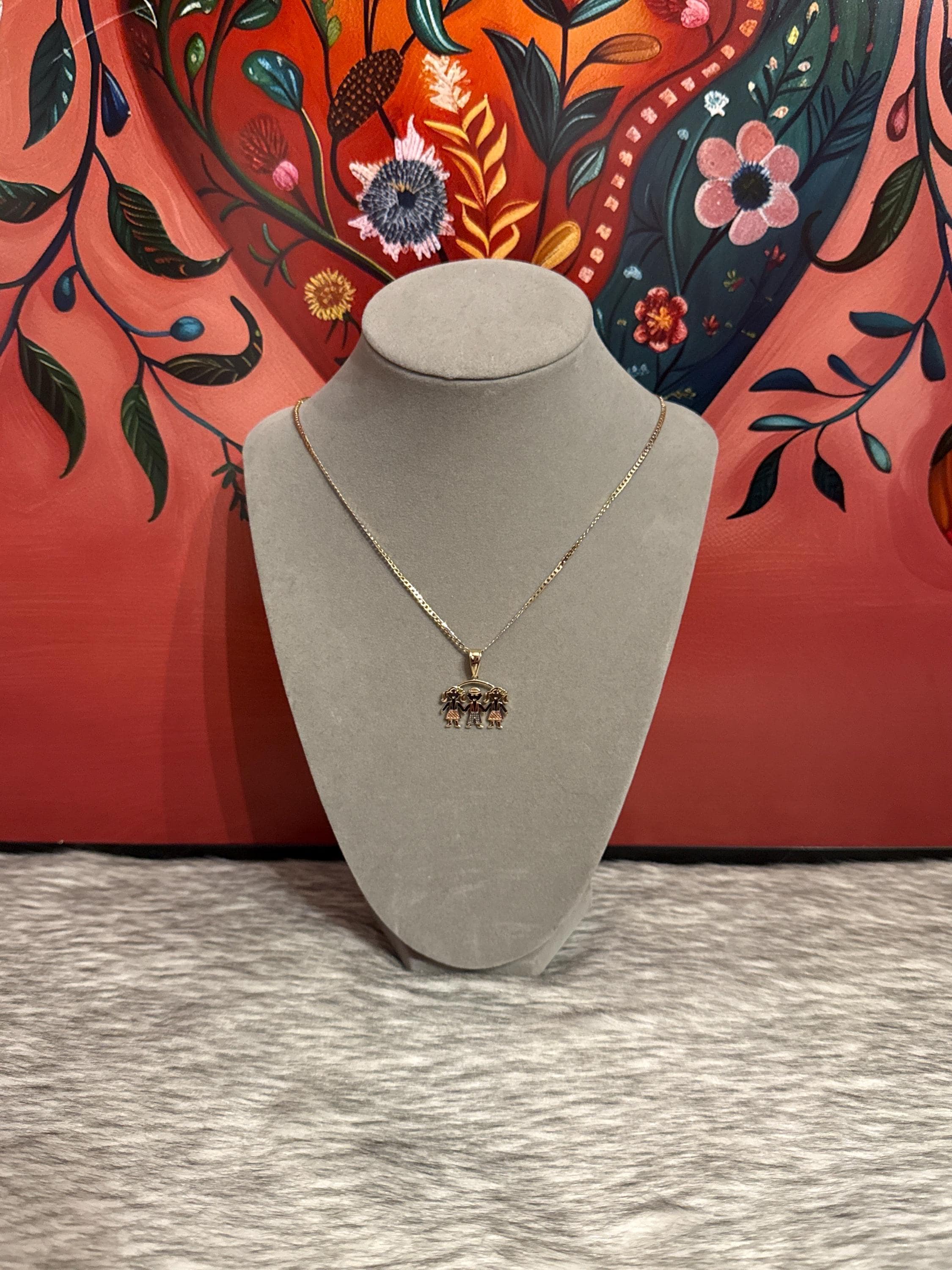 Beautiful necklace with a pendant of 2 girls and 1 boy made of 18k gold plated, the chain measures approximately 16 inches long