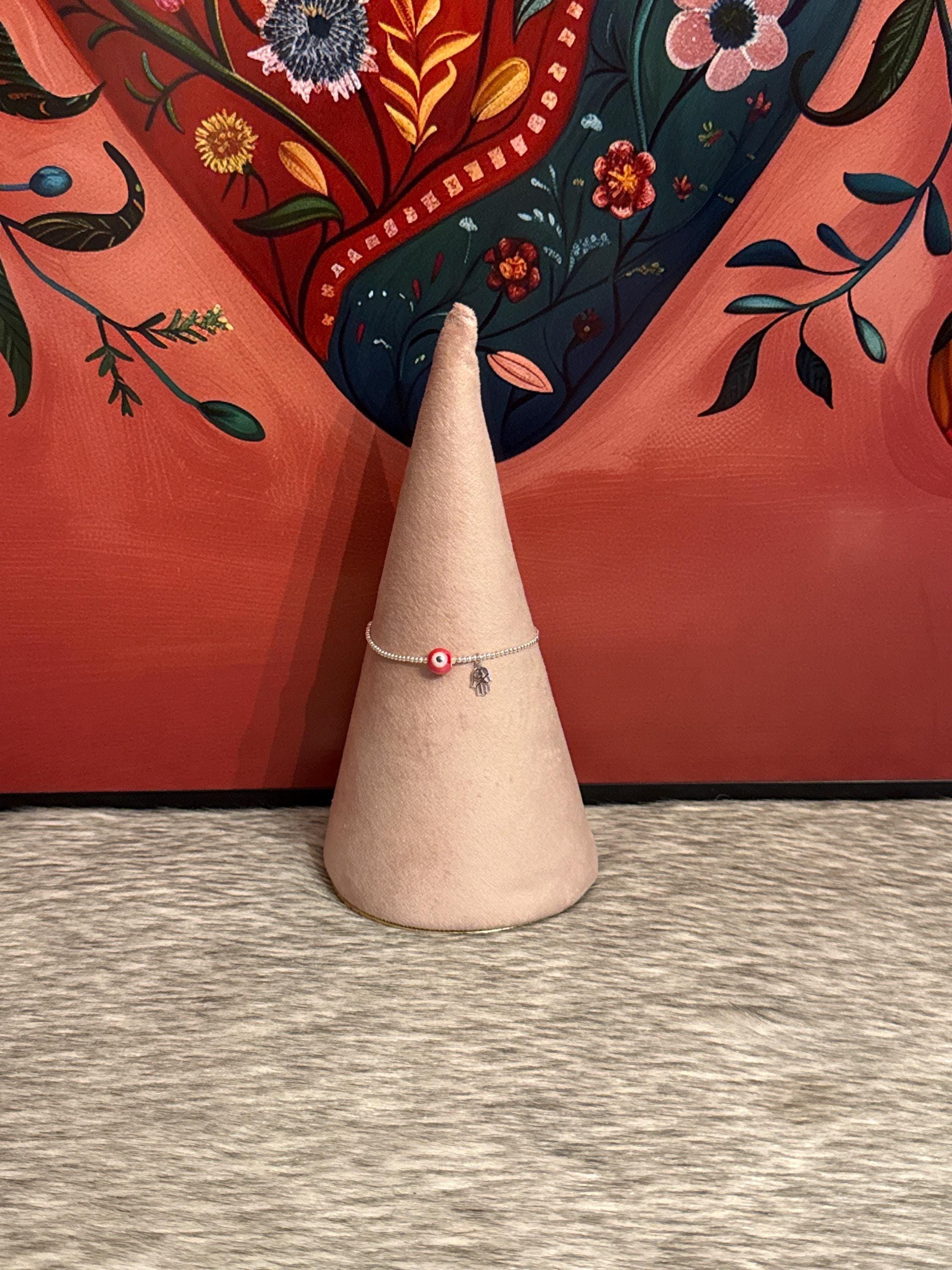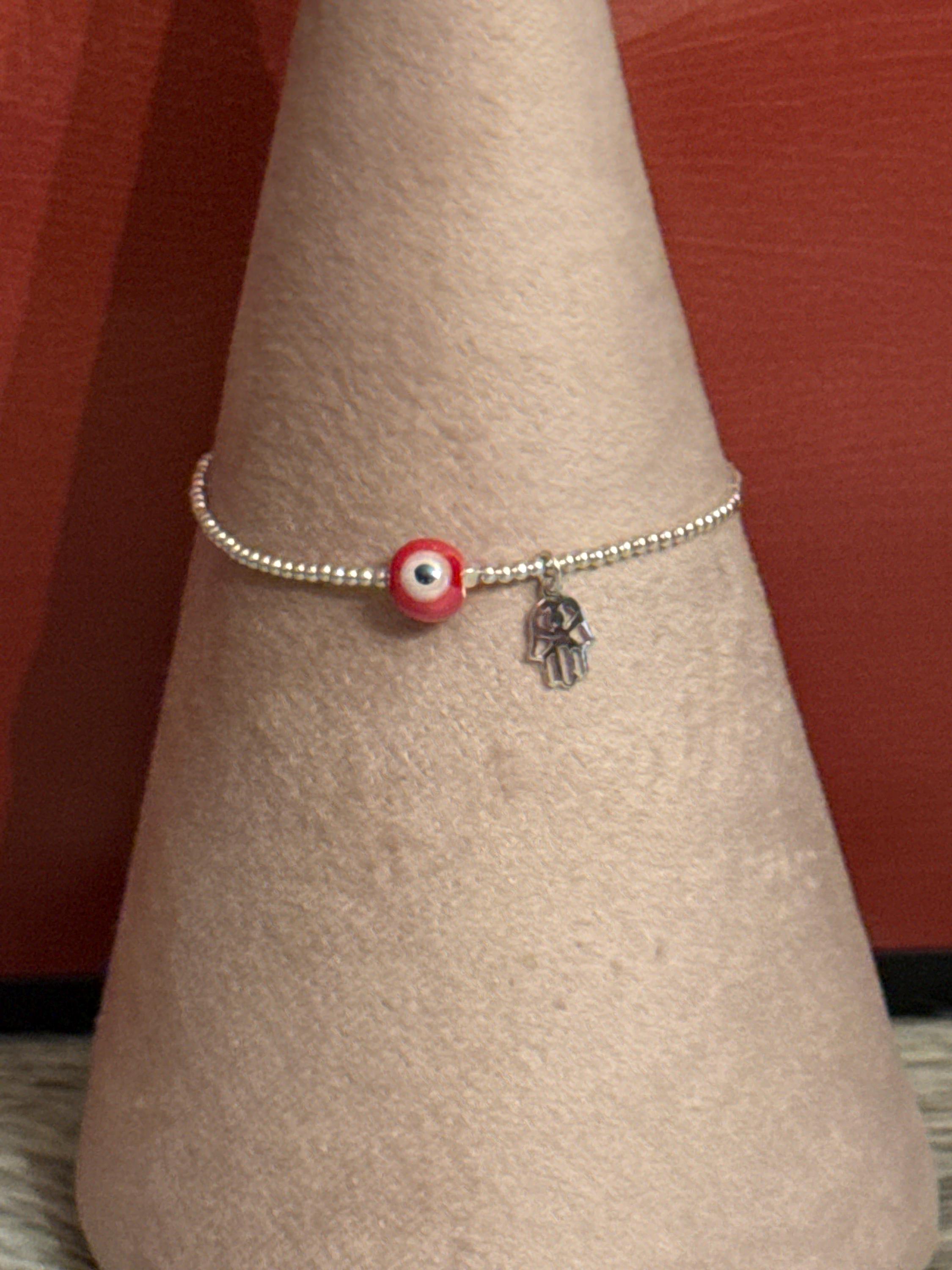 Beautiful lucky and protective bracelet with the eye and hand of Fatima, made in Mexico with 925 sterling silver.