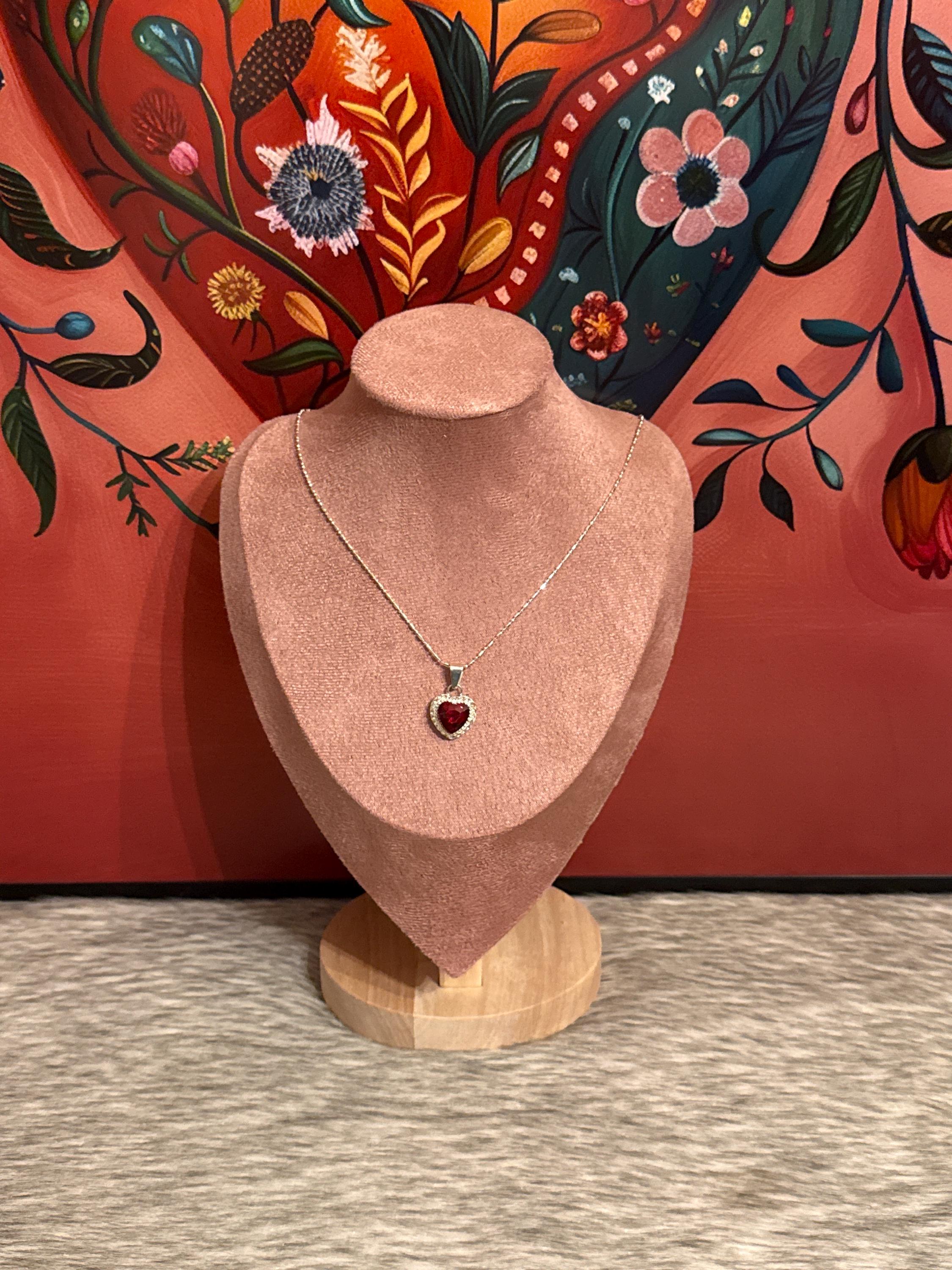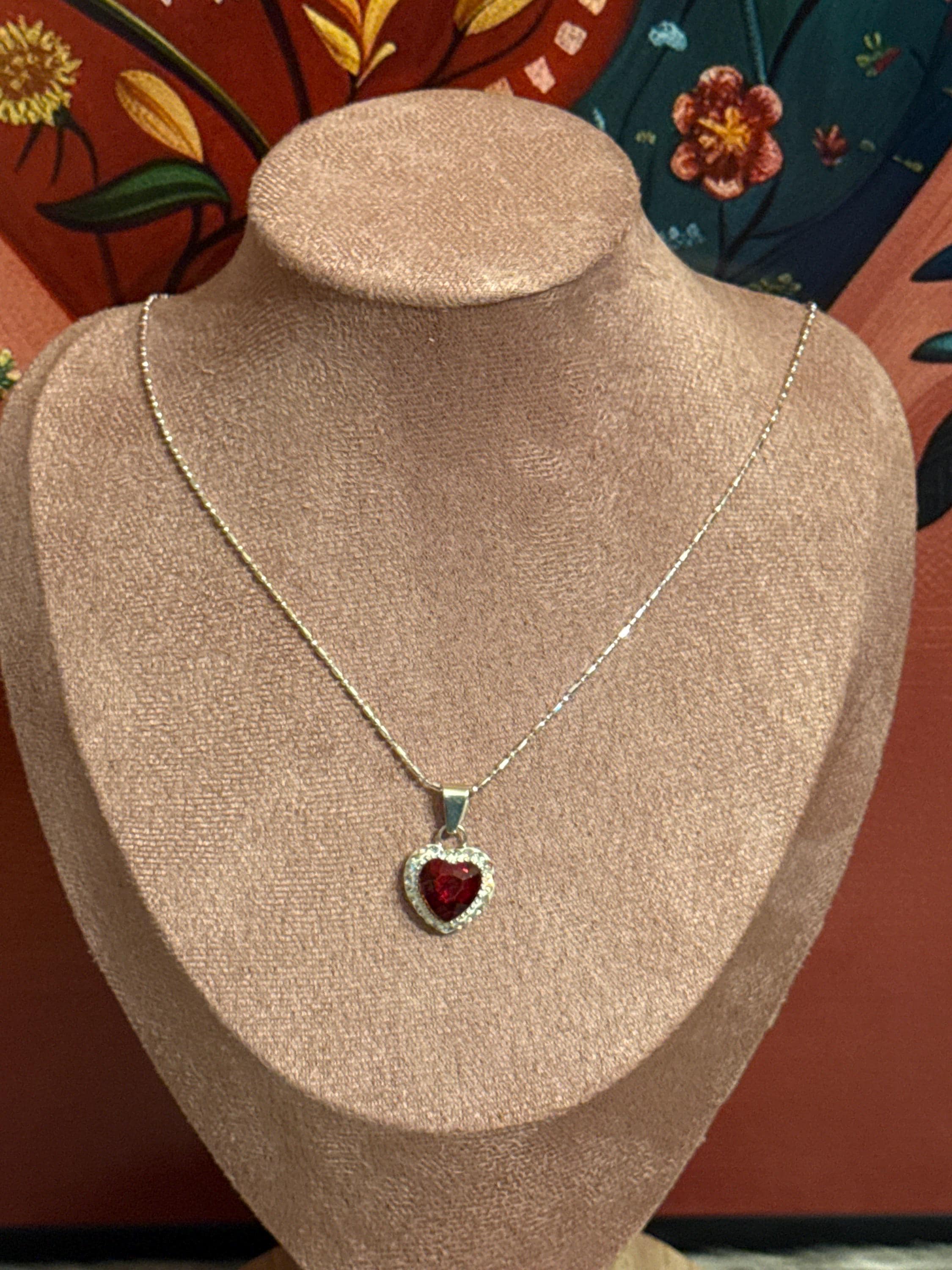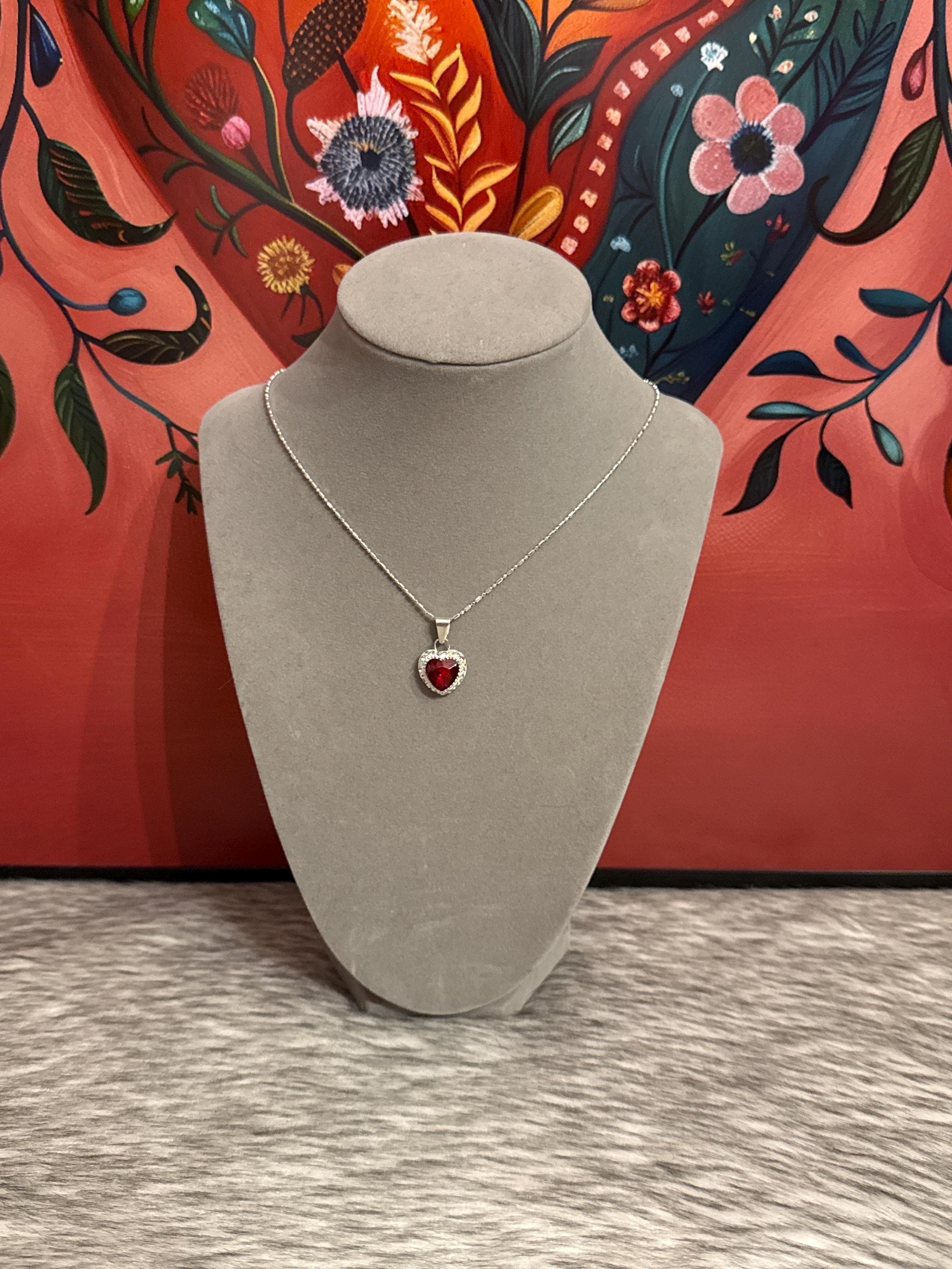 Beautiful, fine, and delicate chain with a fire heart pendant, made in Mexico with 925 sterling silver and cubic zirconia stones. The chain measures approximately 16 inches long.
