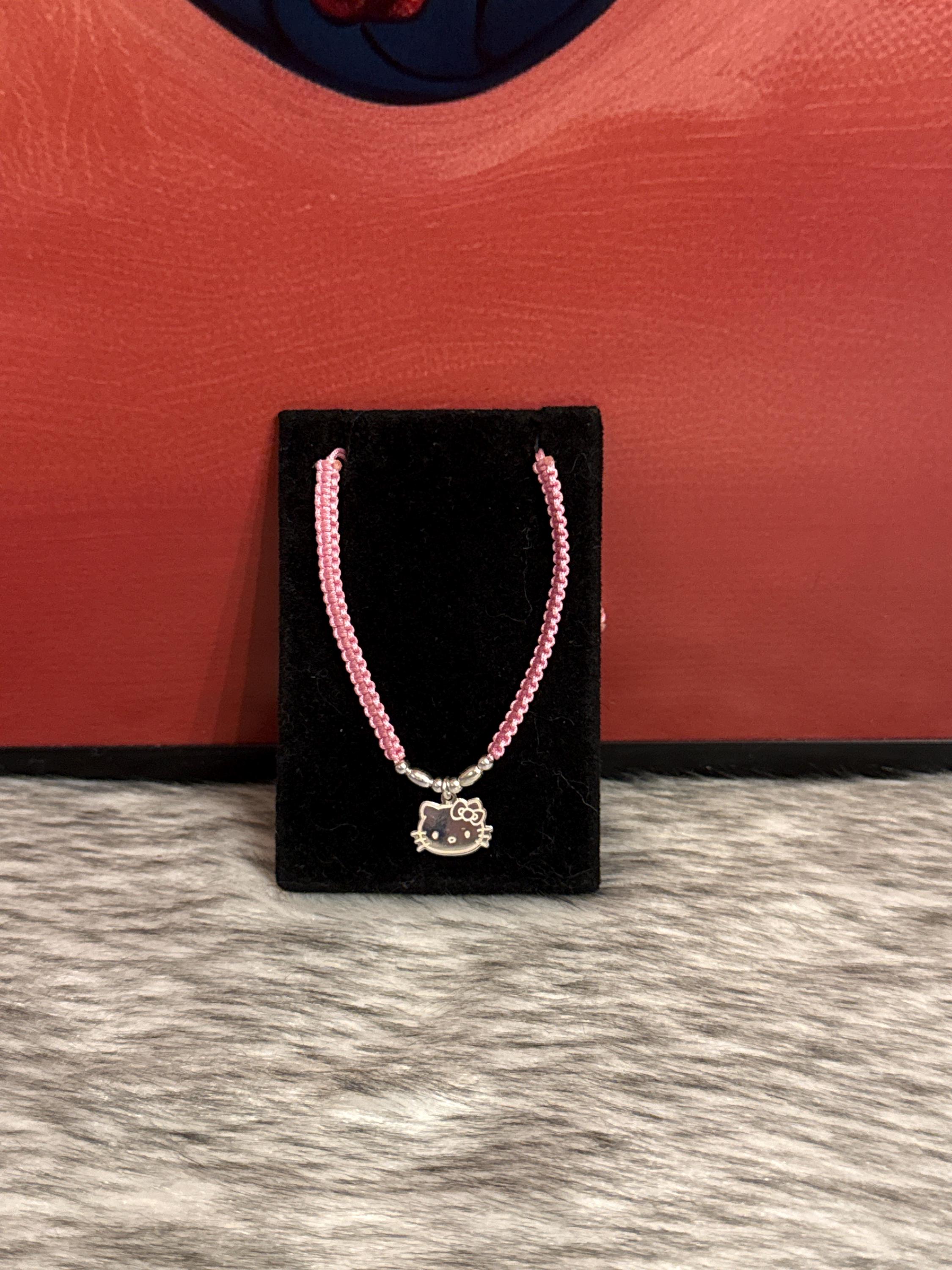 Beautiful pink thread bracelet with a hello kitty pendant and 925 sterling silver spacers, made in Mexico.