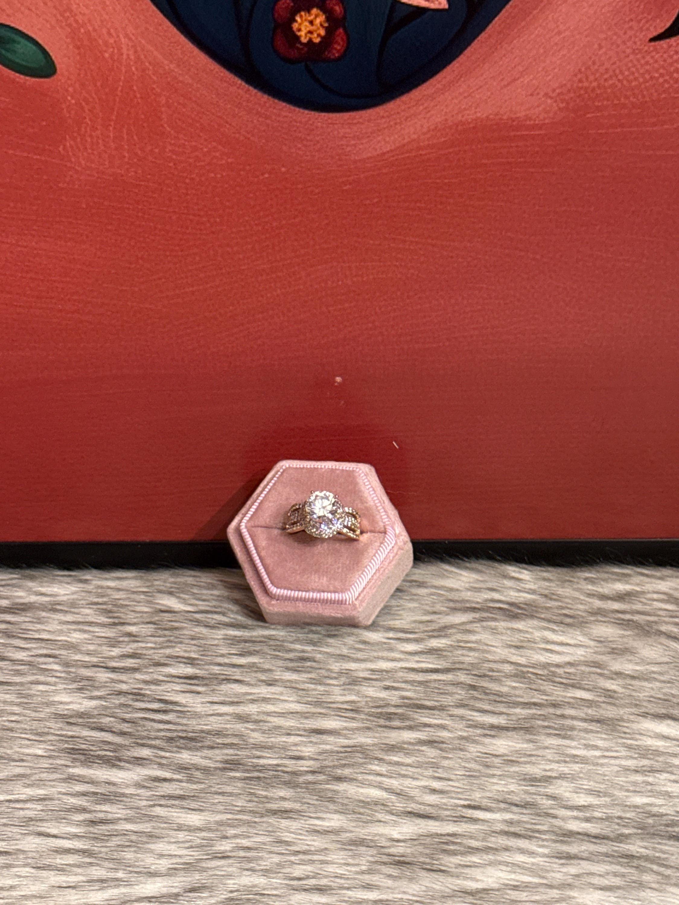 Beautiful promise or engagement ring, made in 14k gold plated with cubic zirconia, available in size 6.